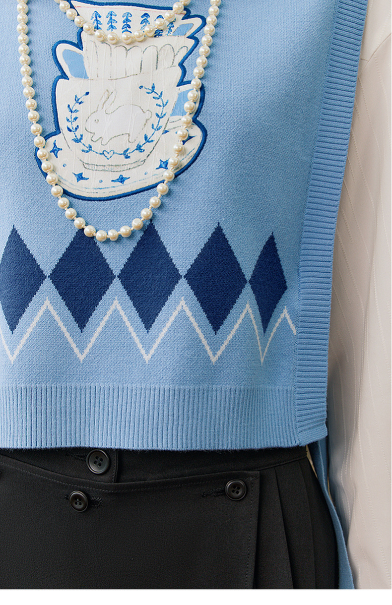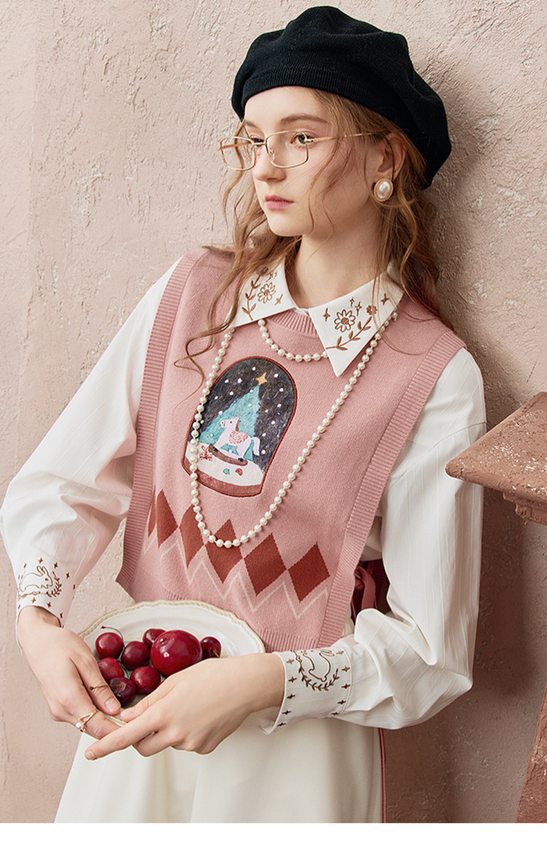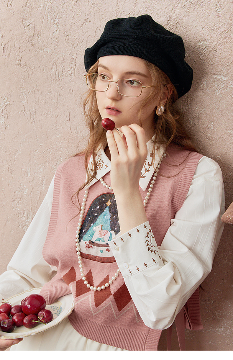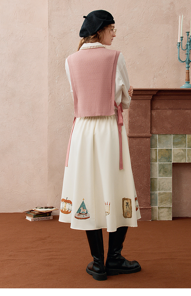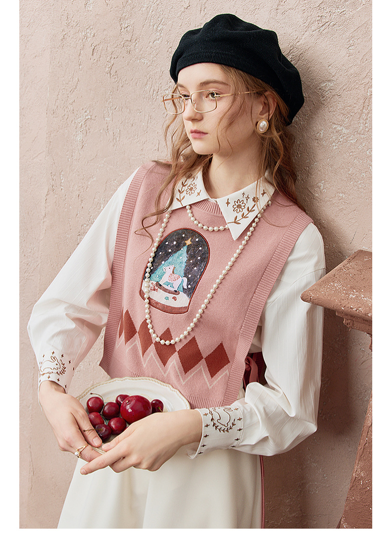 两三事 摇梦糖霜 2025秋季新款复古贴布绣绑带短款无袖针织衫女