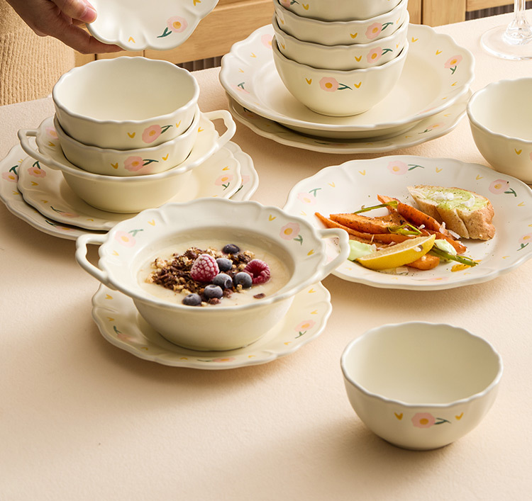 【景德镇精选陶瓷餐具】芍药花边陶瓷餐具套装碗盘家用2025新款厨房碗碟盘子吃饭碗高颜值