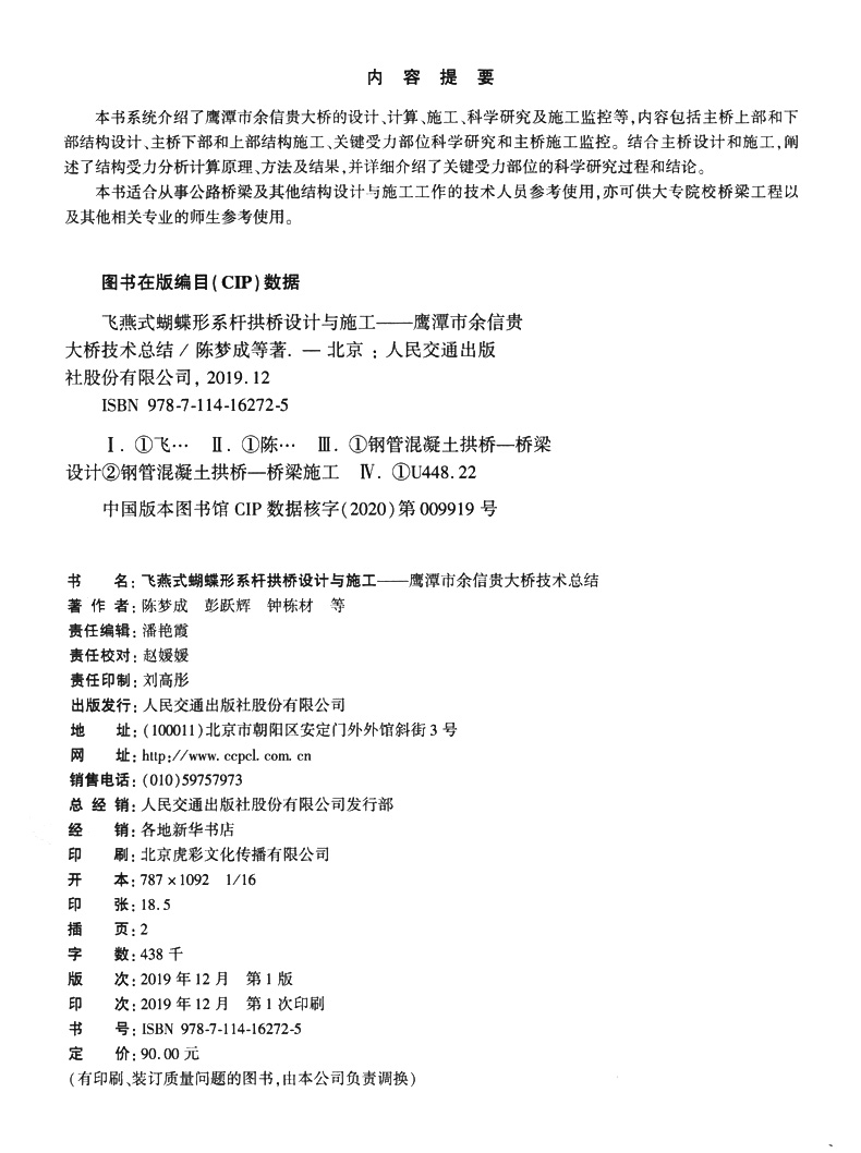 书名:飞燕式蝴蝶形系杆拱桥设计与施工——鹰潭市余信贵大桥技术总结