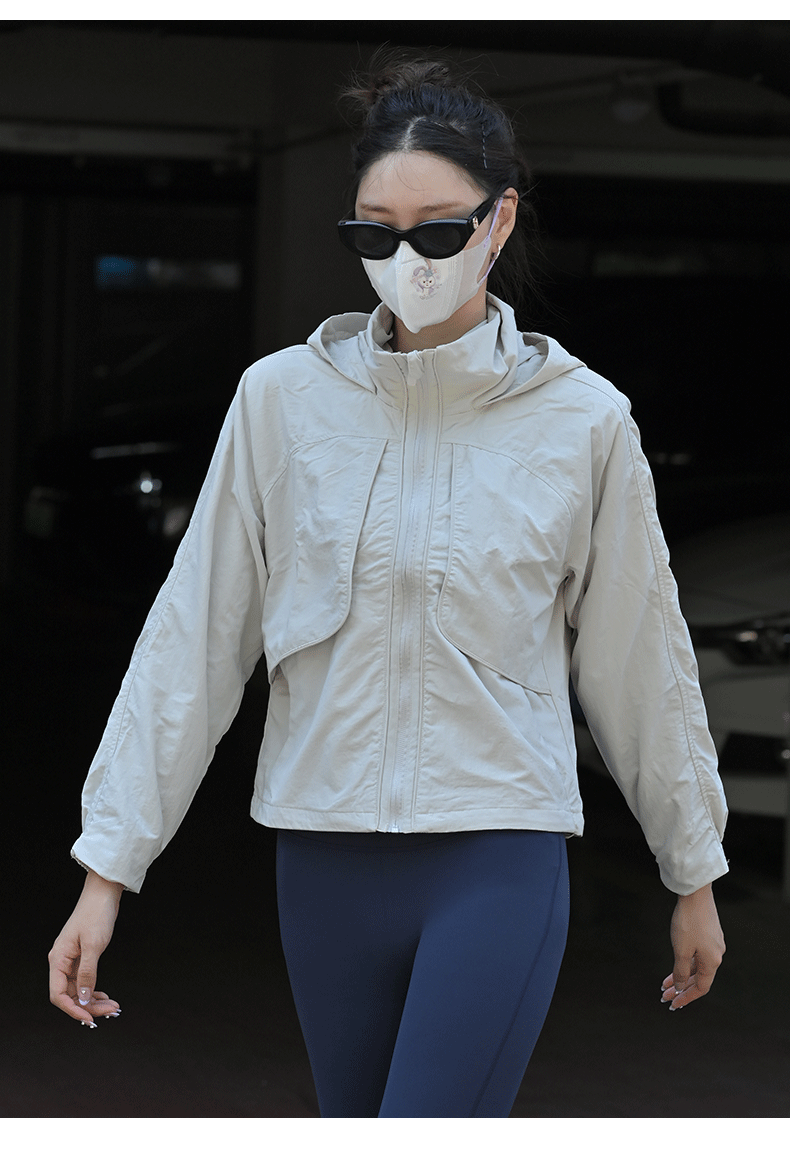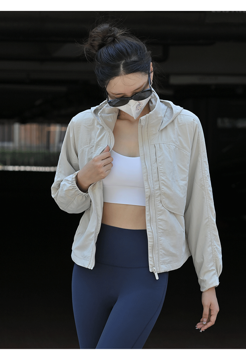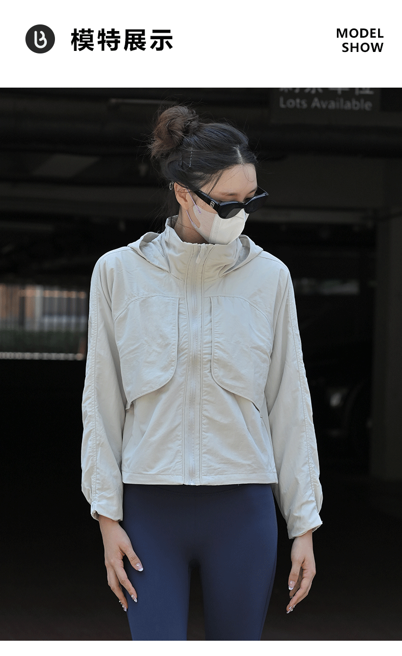 Beemen防泼溅运动外套女连帽健身防风秋季瑜伽服上衣