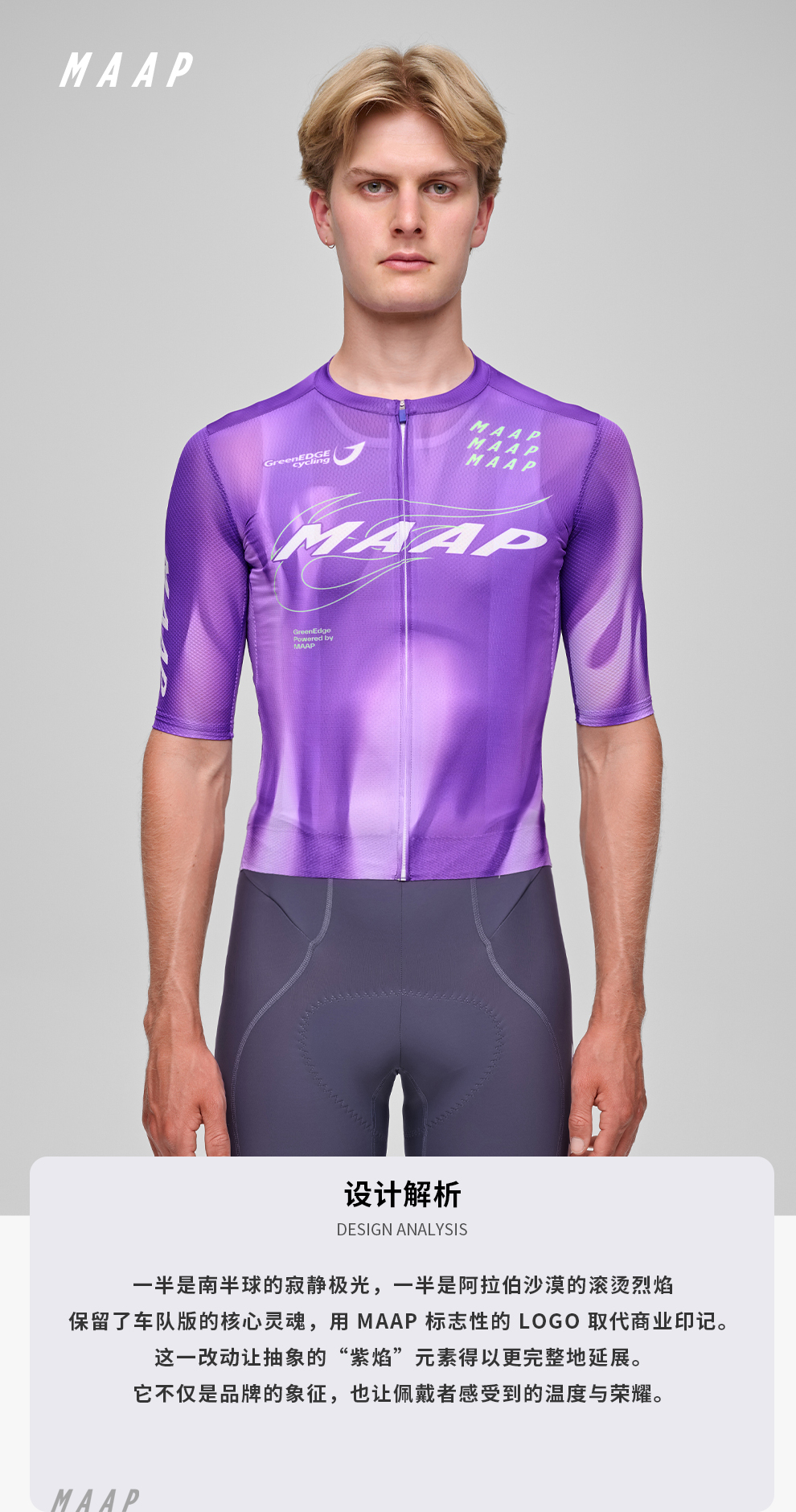 - MAAP作为澳洲功能性骑行服,其出色的时尚设计元素为骑行生活增添色彩。MAAP在为专业车手提升性能表现方面也毫不妥协。
