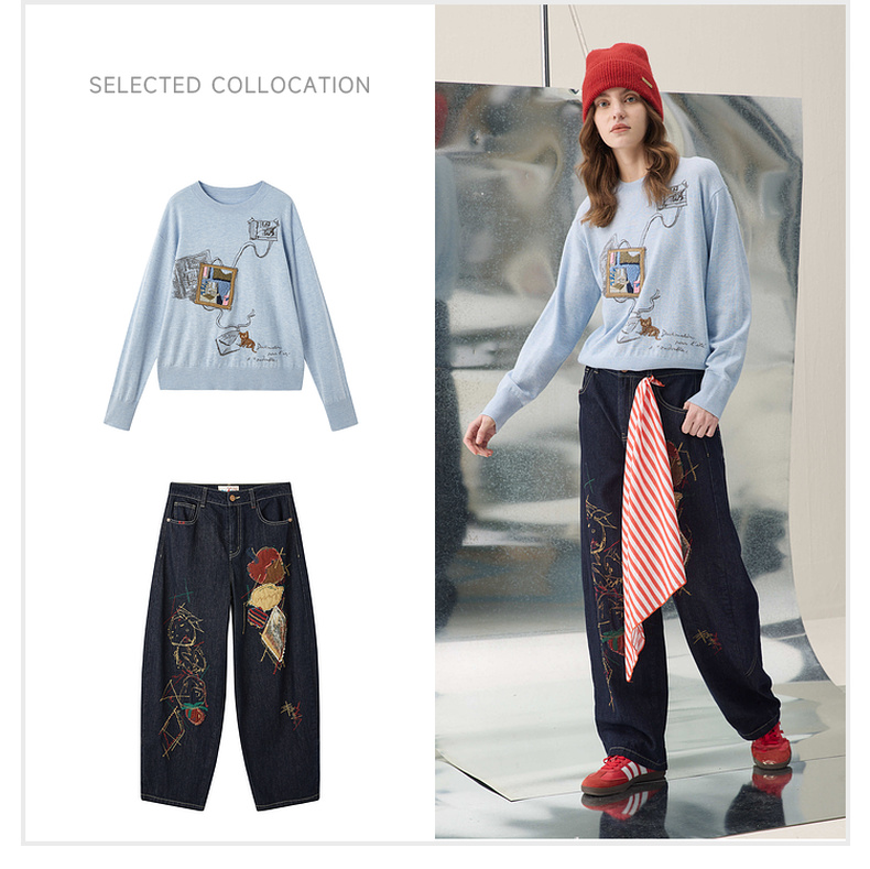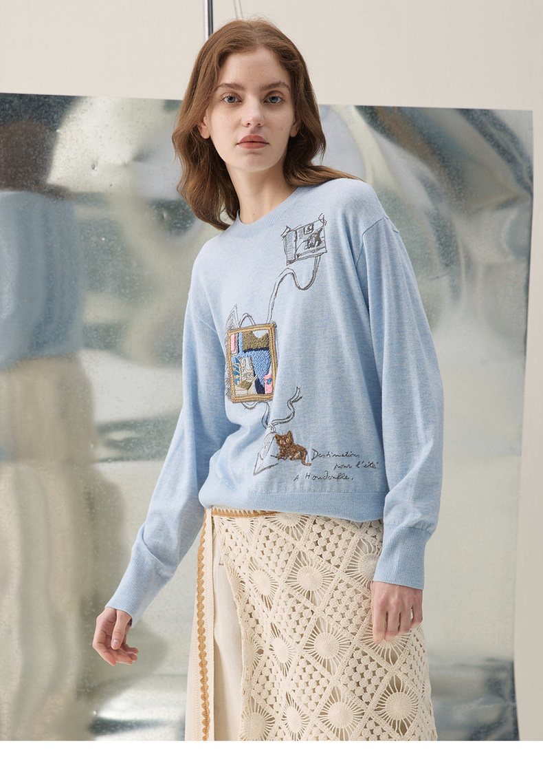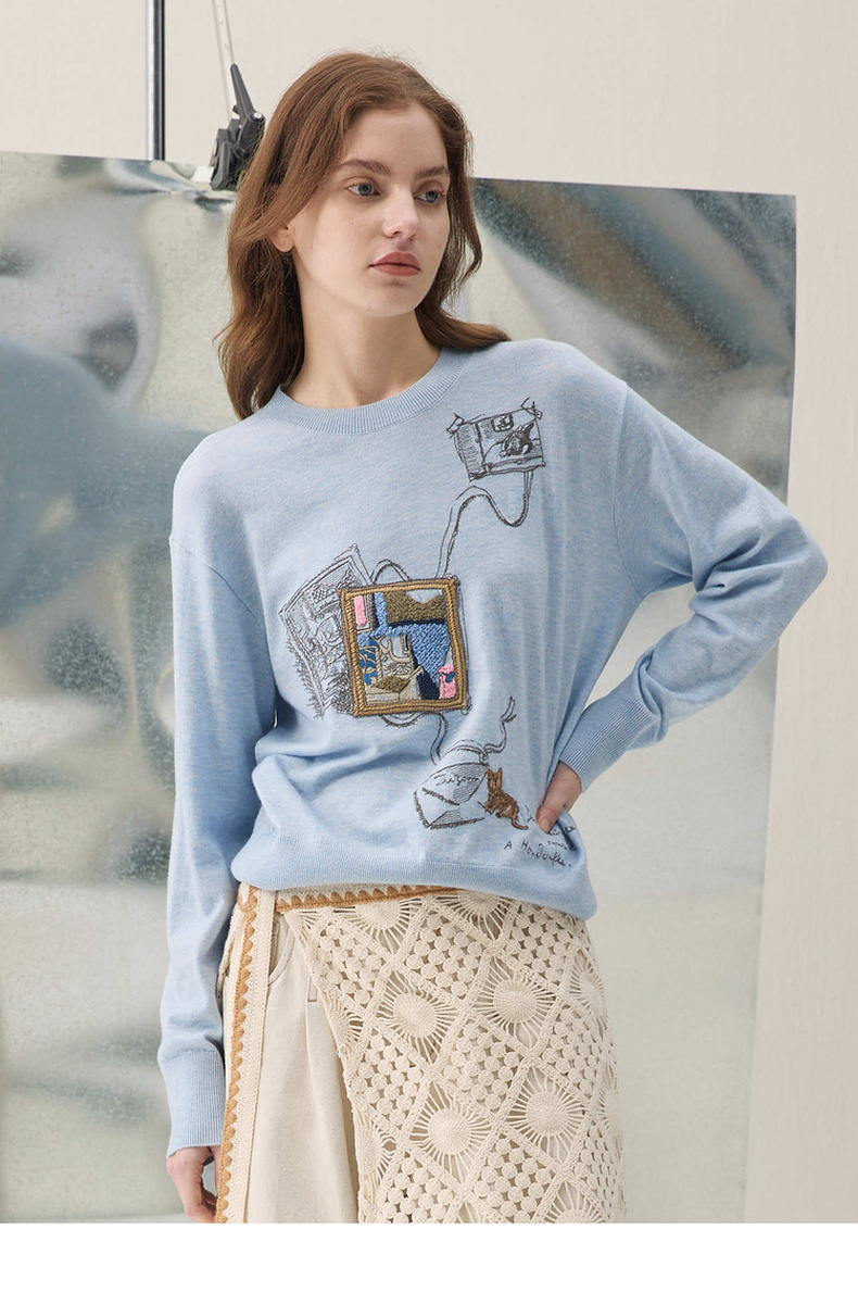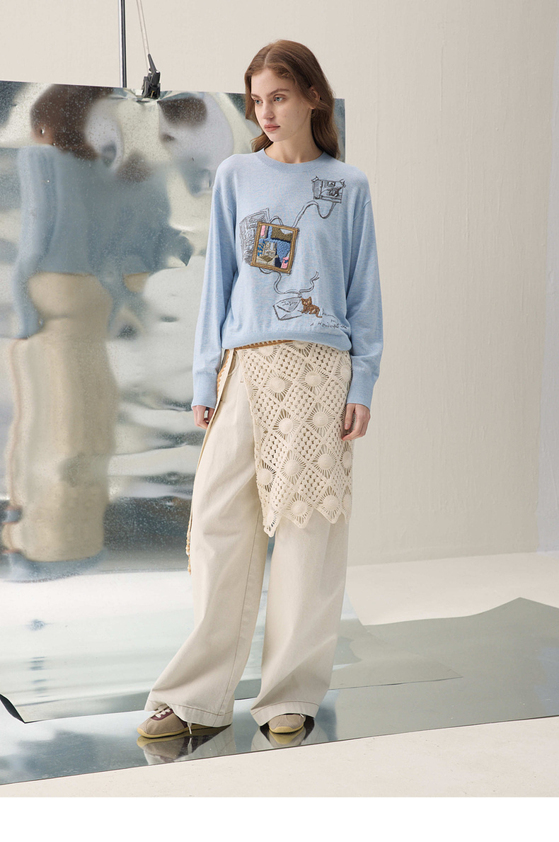 谜底套头针织衫长袖2026年春季新品羊毛轻盈保暖毛衣女261MZ0301