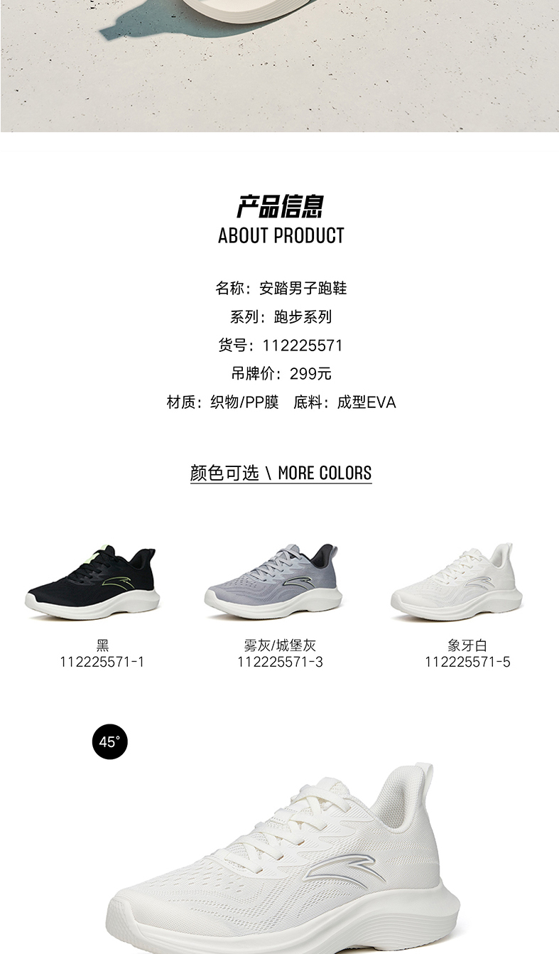 安踏跑步鞋男鞋2022夏季新款网面透气运动鞋缓震跑鞋 112225571-1/5