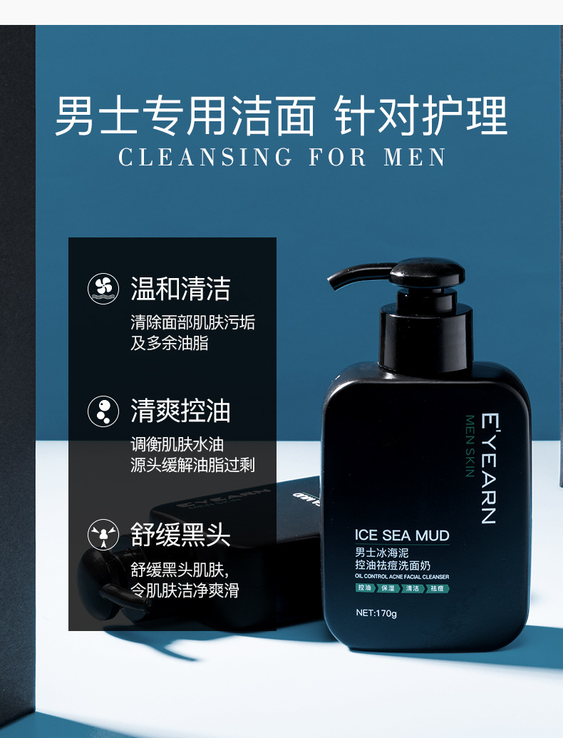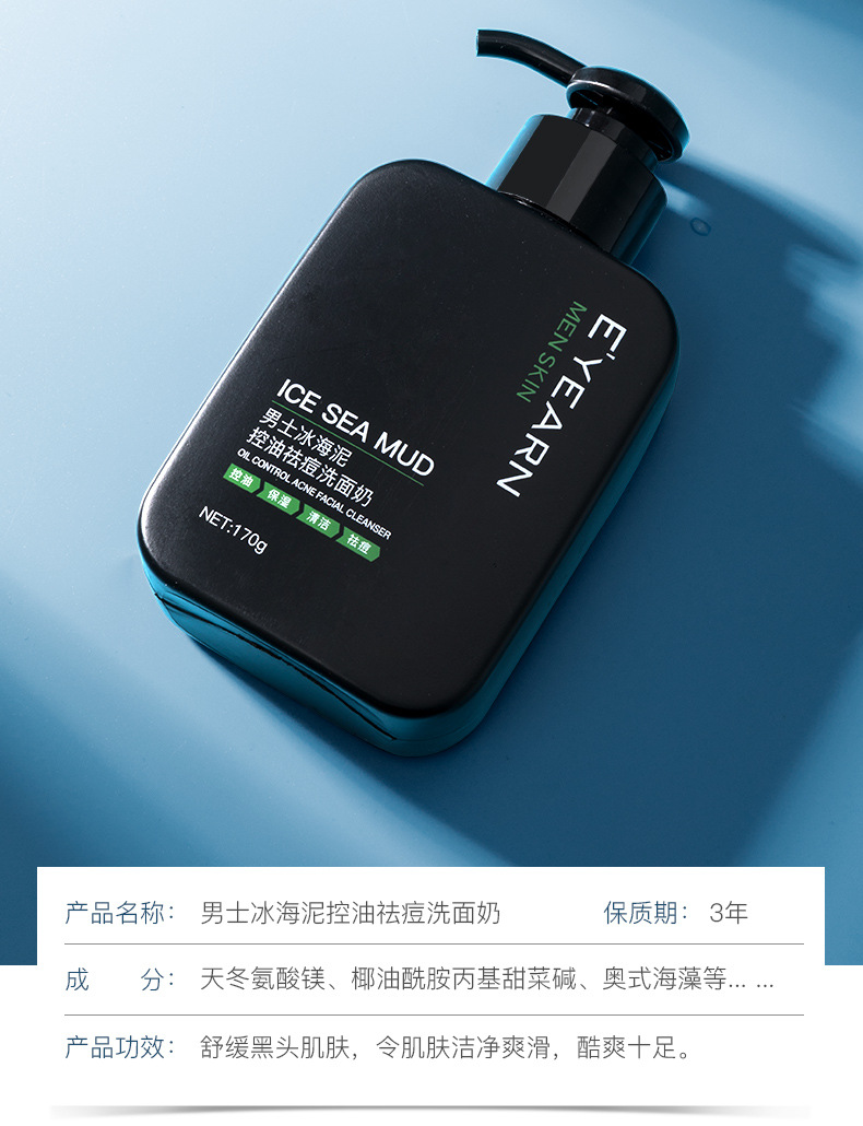 依漾冰海泥男士洗面奶 深层清洁收缩毛孔控油祛痘除螨洁面乳
