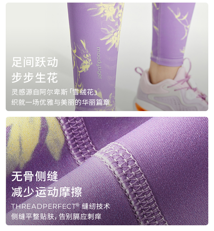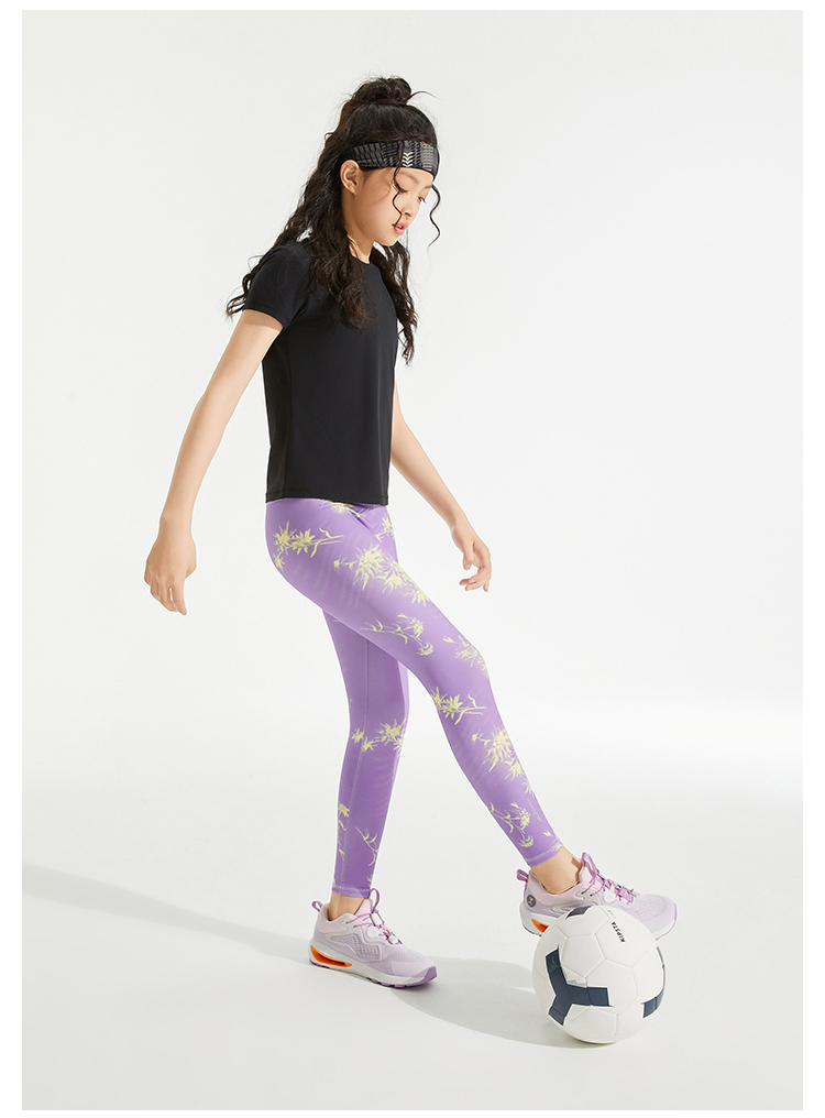 【24年秋新】moodytiger24秋新女童瑜伽跑步运动速干印花外穿紧身裤43211414