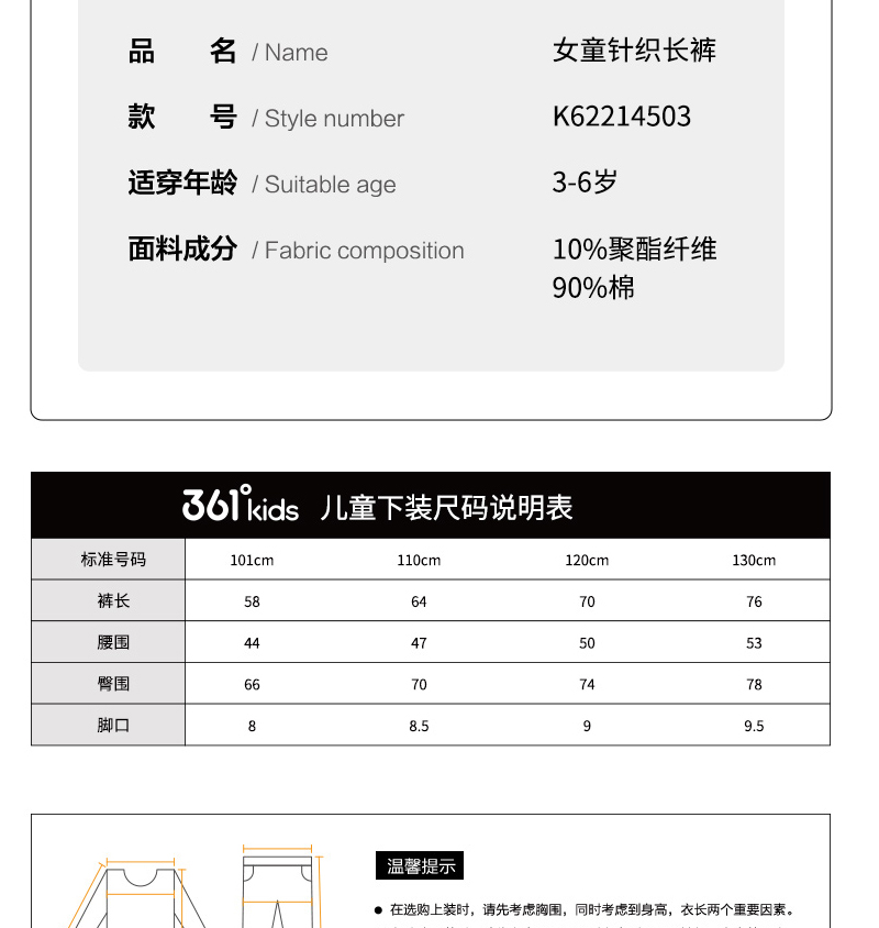 小361女童针织长裤儿童纯棉运动裤幼儿园2022春季新款K62214503