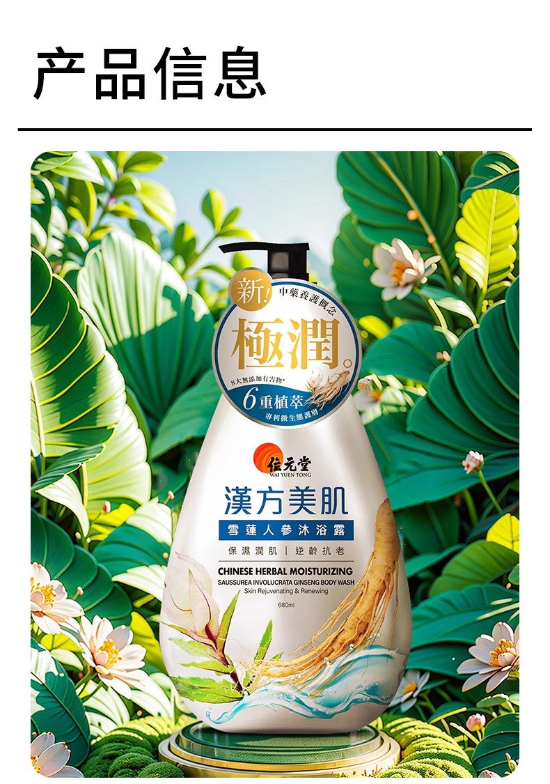 位元堂Wai Yuen Tong 汉方美肌雪莲人参沐浴露680ml