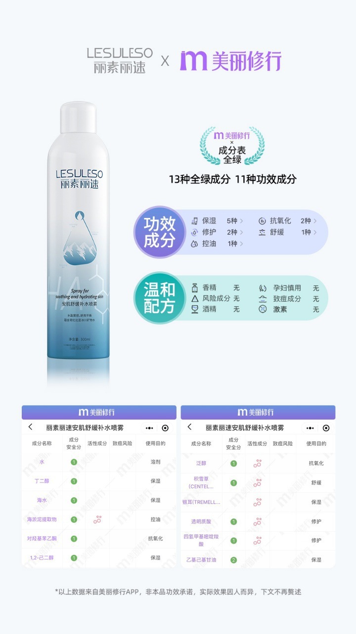 丽素丽速安肌舒缓补水喷雾300ml+100ml