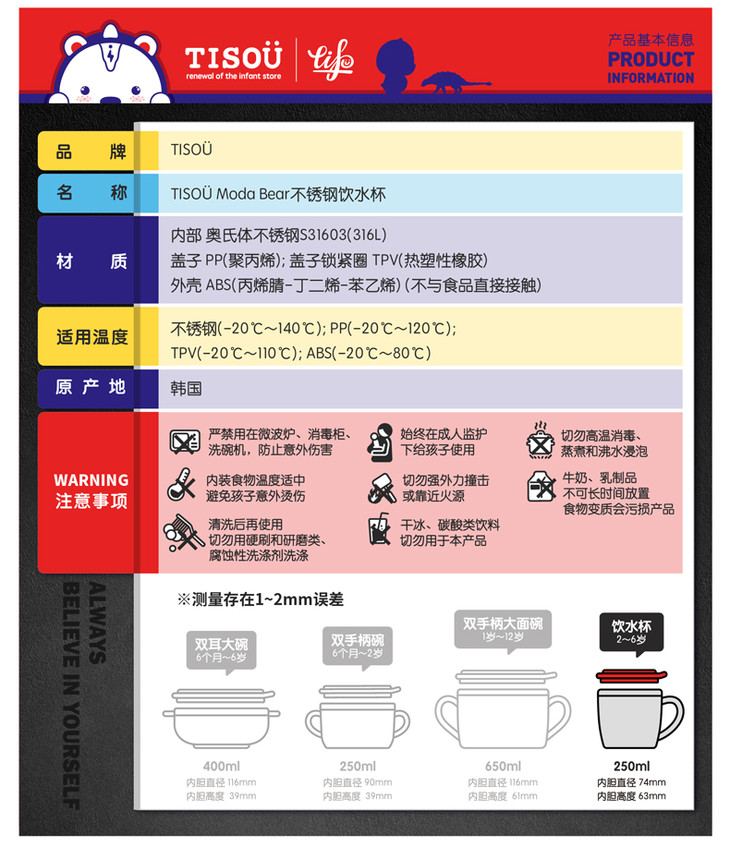 韩国 爱婴小铺 儿童不锈钢水杯 250ml