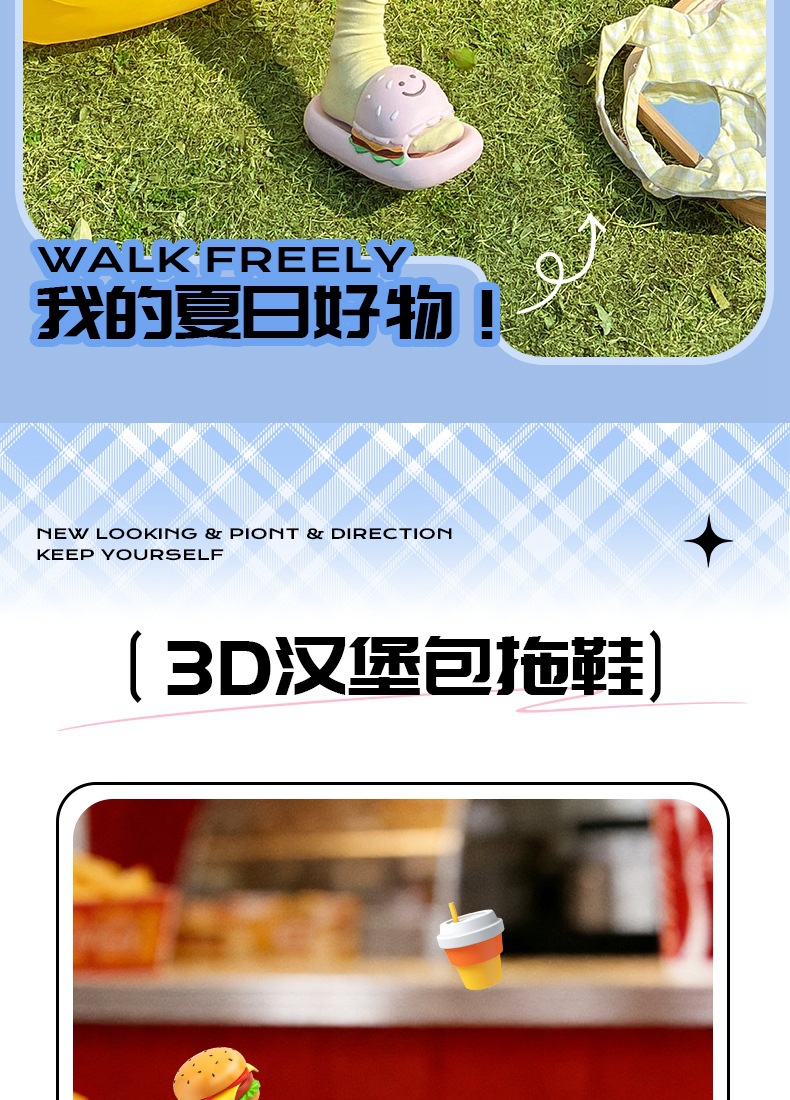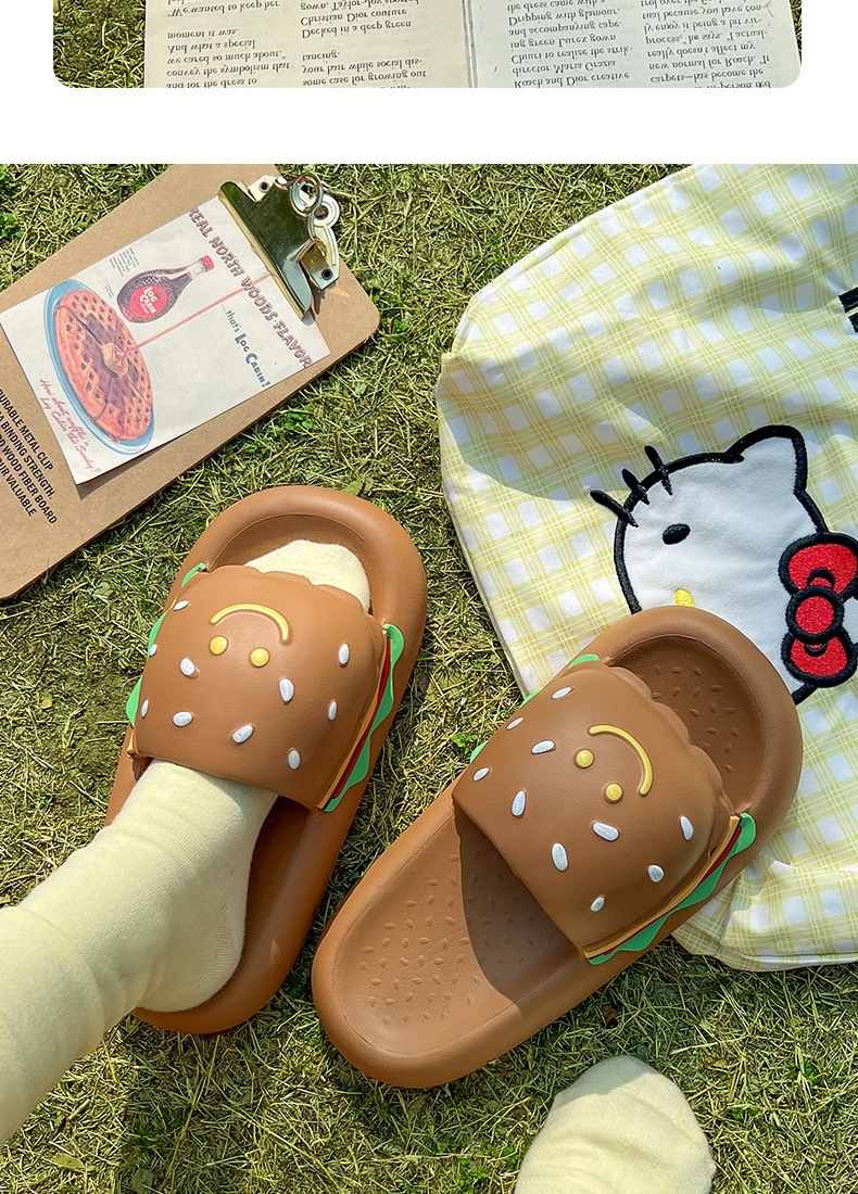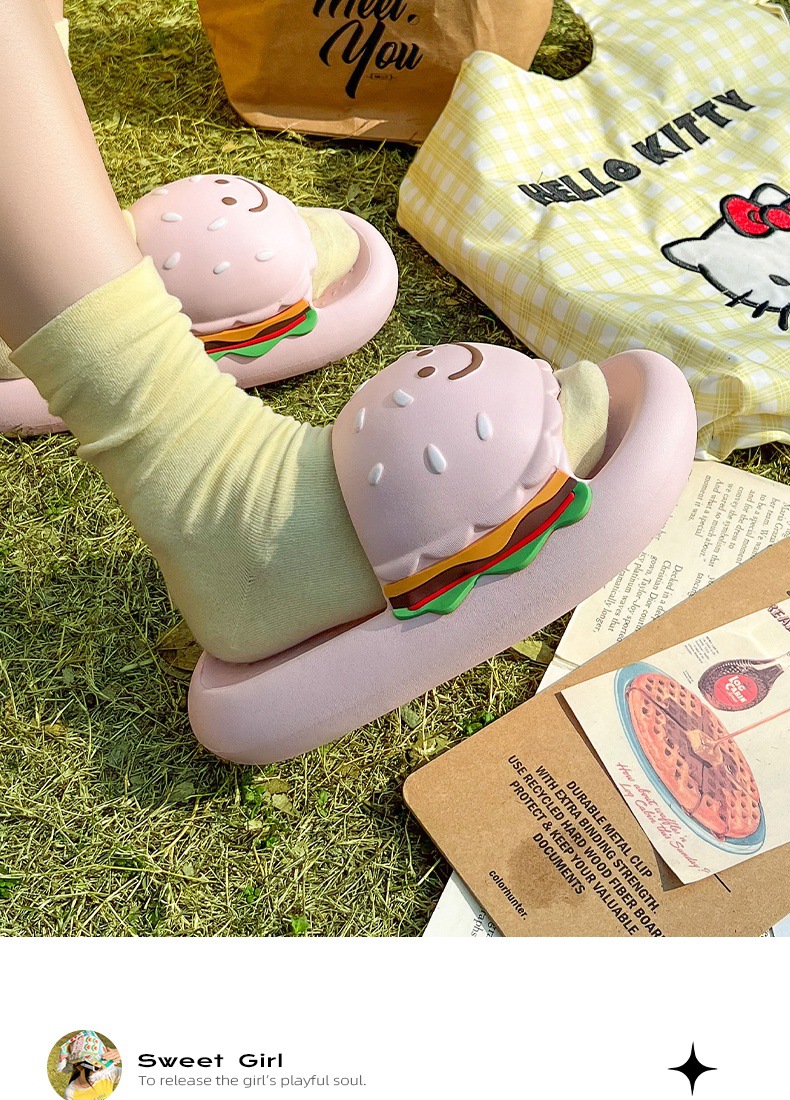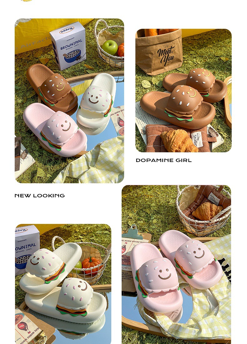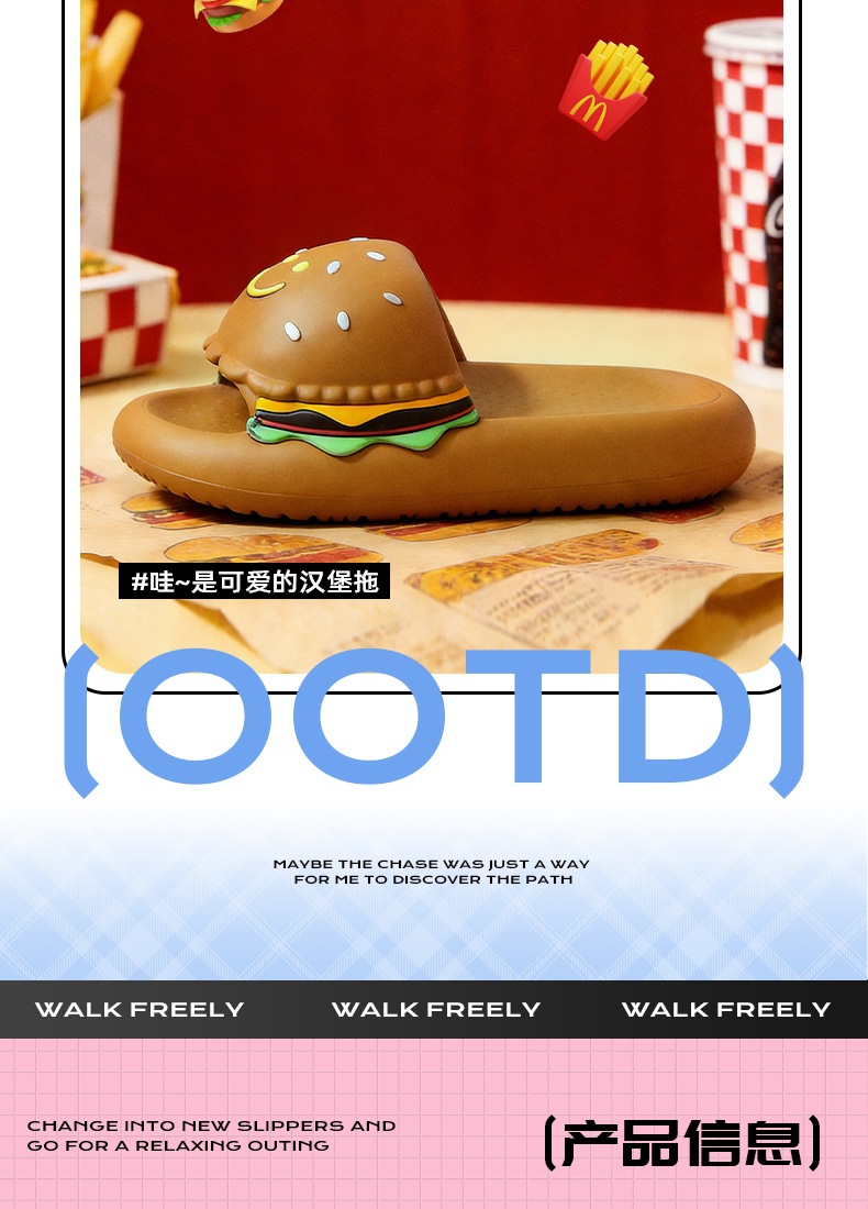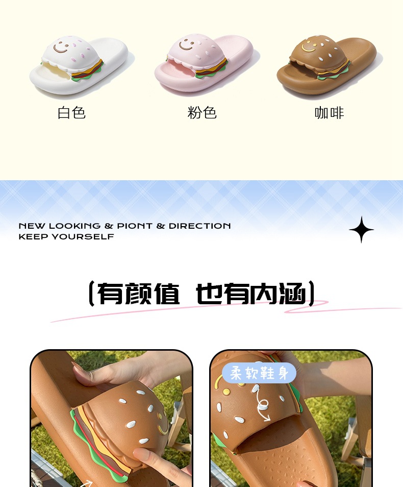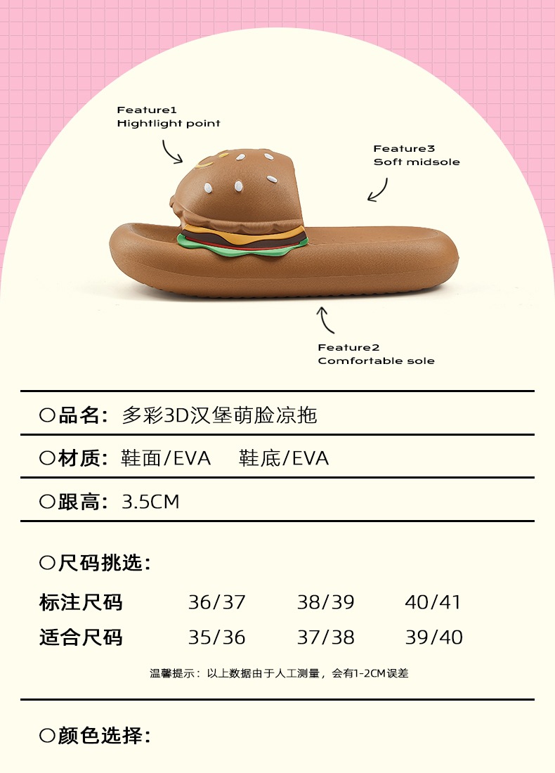 春夏新款卡通多彩3D汉堡可爱EVA萌脸居家外穿女士凉拖【WG26205】