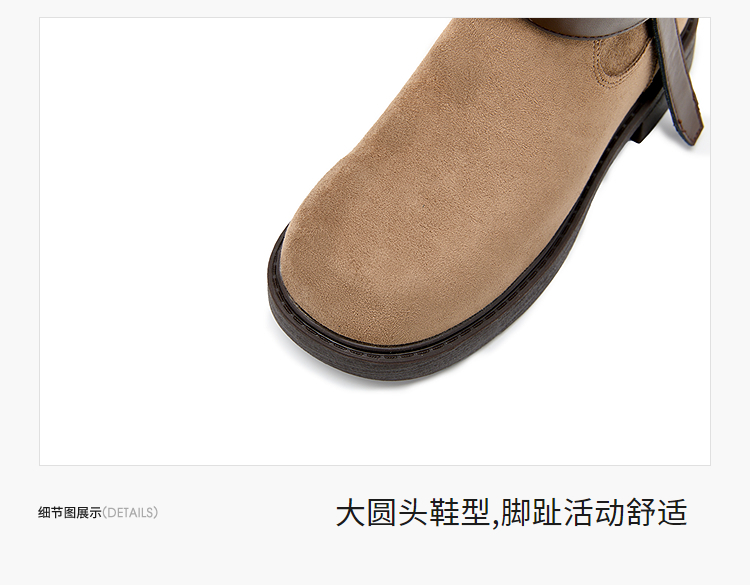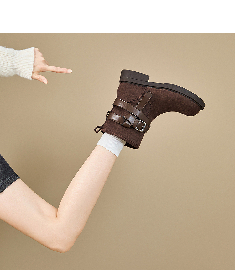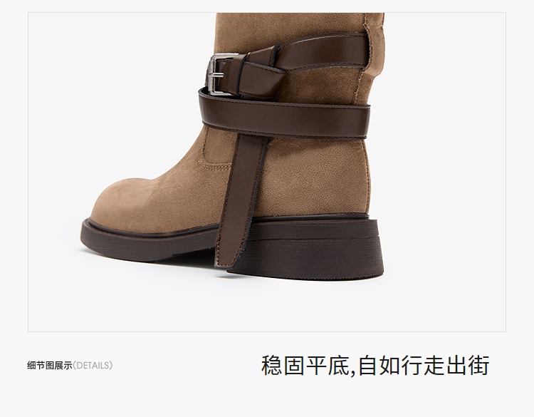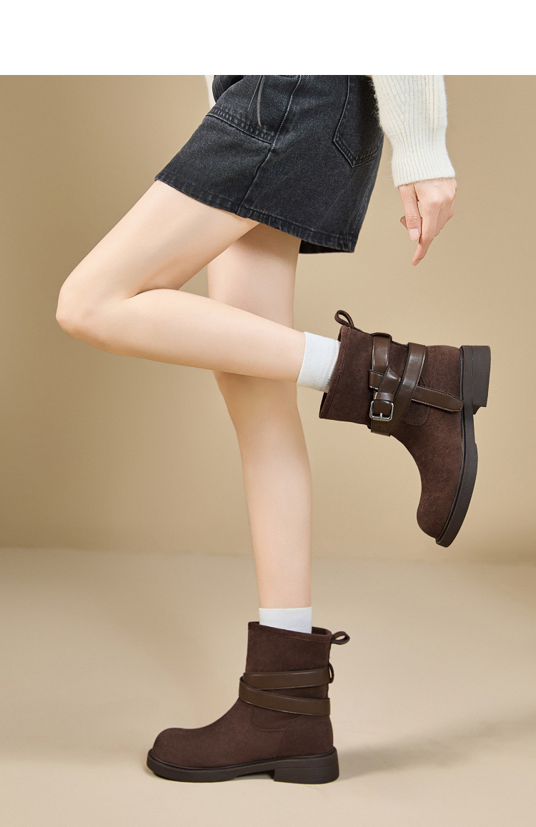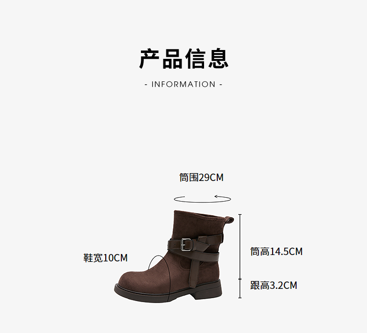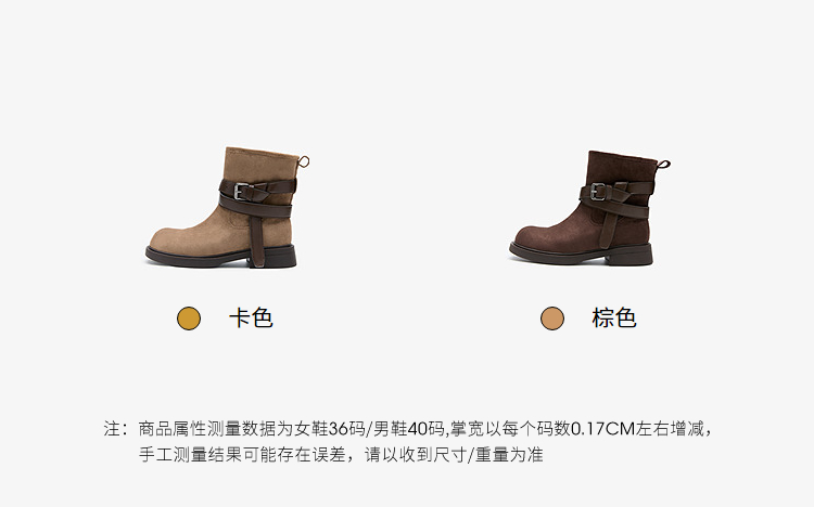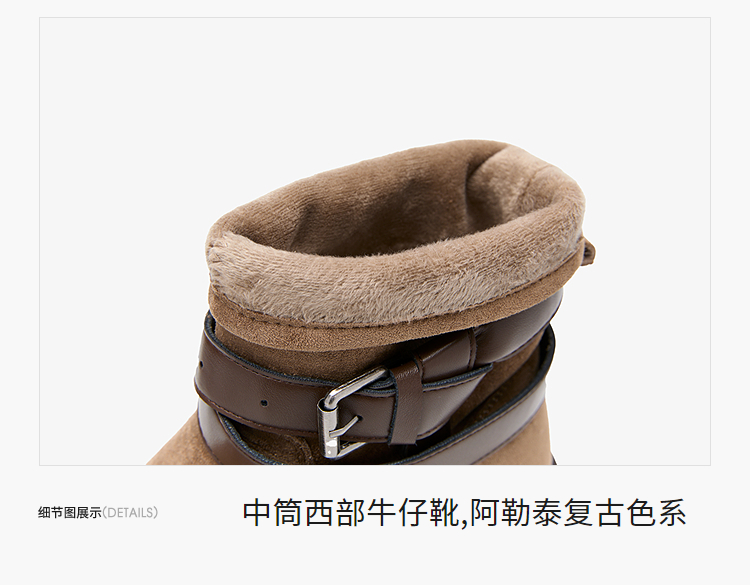 西遇美拉德短靴女秋冬复古棕色西部牛仔靴圆头厚底英伦马丁靴V2257284