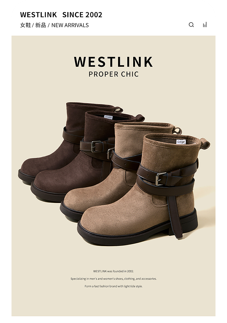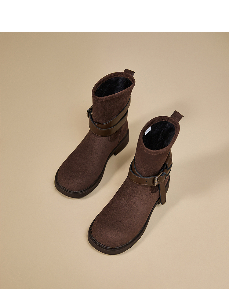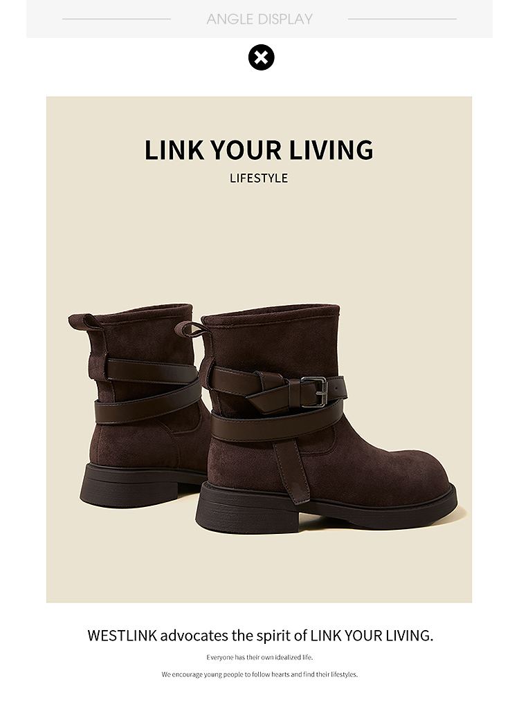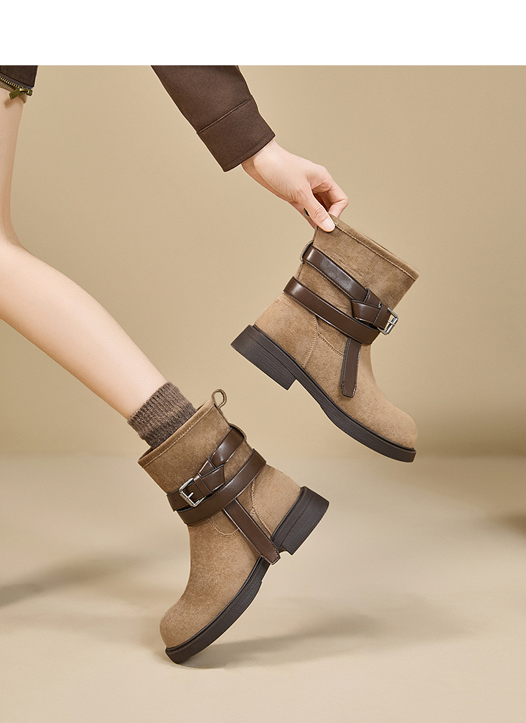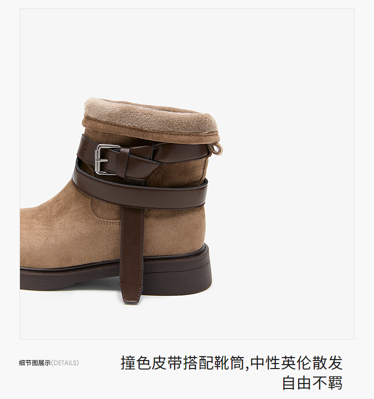 西遇美拉德短靴女秋冬复古棕色西部牛仔靴圆头厚底英伦马丁靴V2257284
