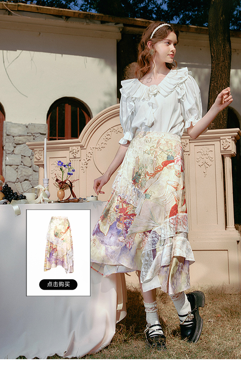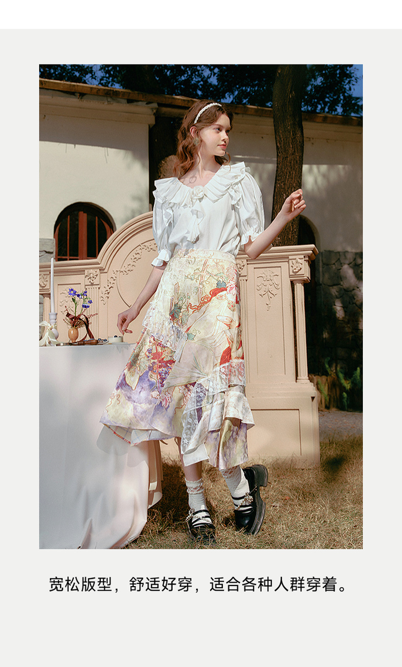 两三事 蜜夏神谕 2025春季新款文艺风蝴蝶结大翻领印花衬衫女宽松