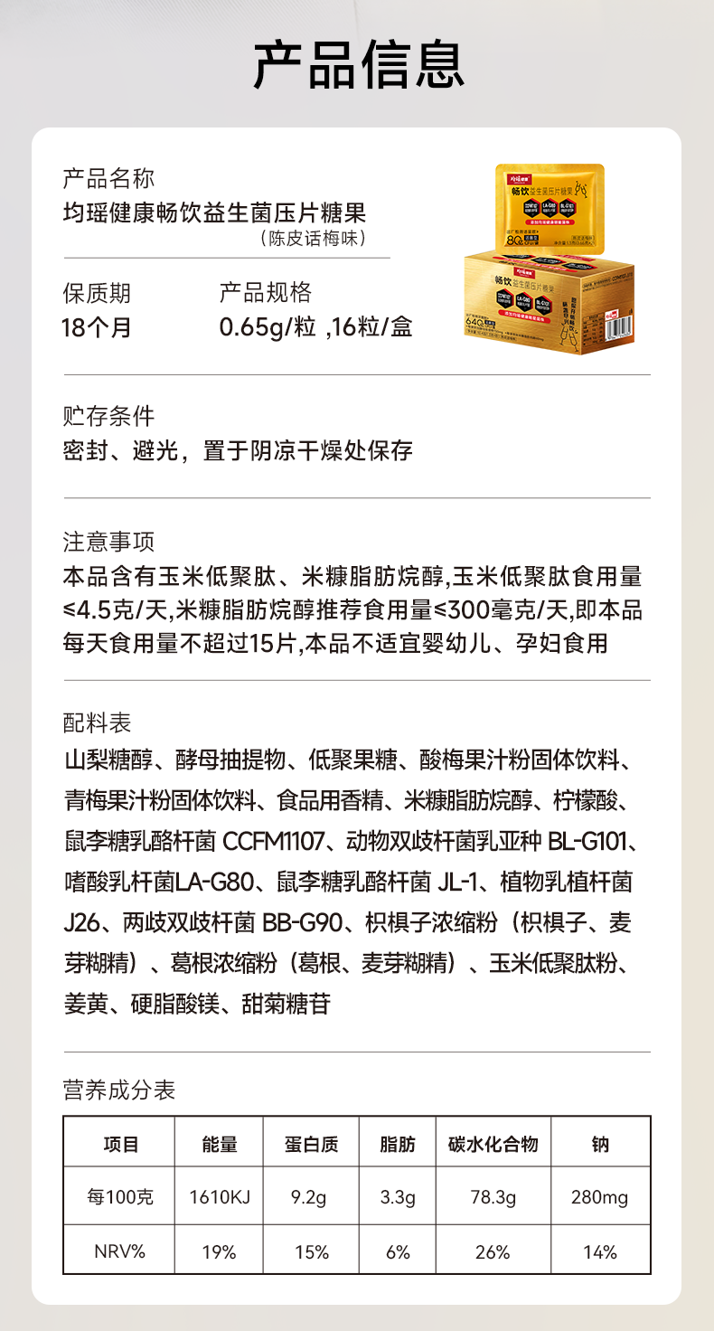 均瑶健康畅饮2.0益生菌压片糖果 1.3克*8包/盒