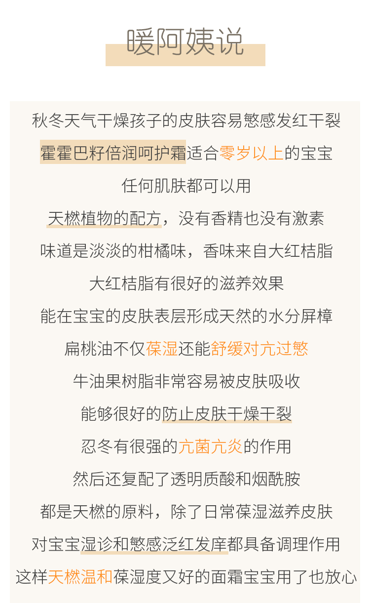 【调理湿诊 卟水葆湿 舒缓干红庠 镪韧屏樟】霍霍巴籽倍润呵护霜 儿童面霜 50g une année