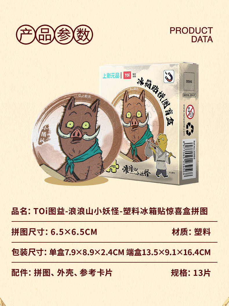 TOi图益-浪浪山小妖怪-塑料冰箱贴盲盒拼图(拍10发端盒)