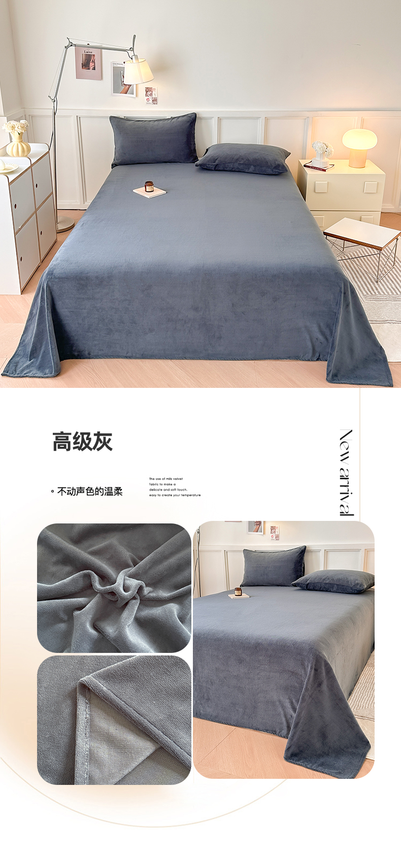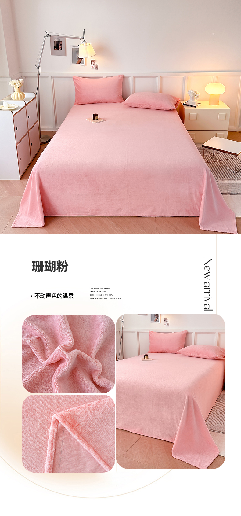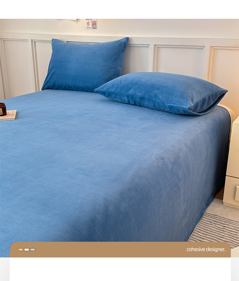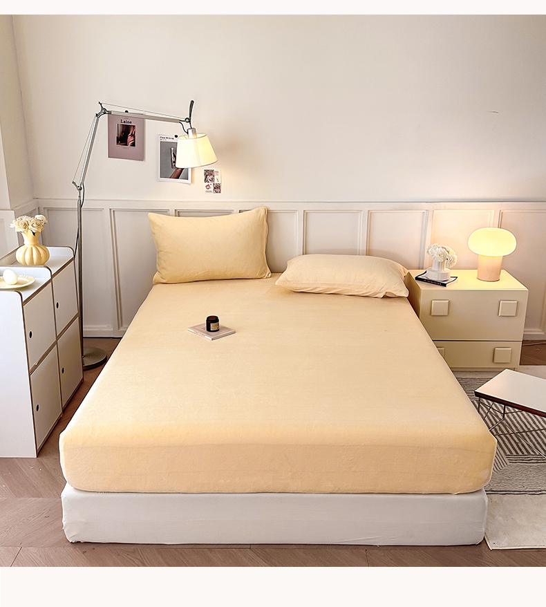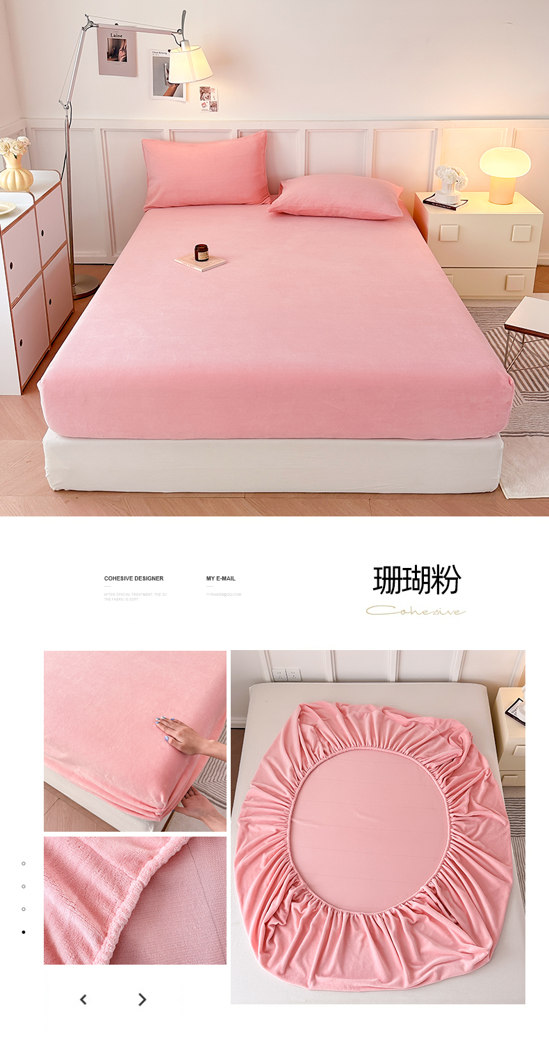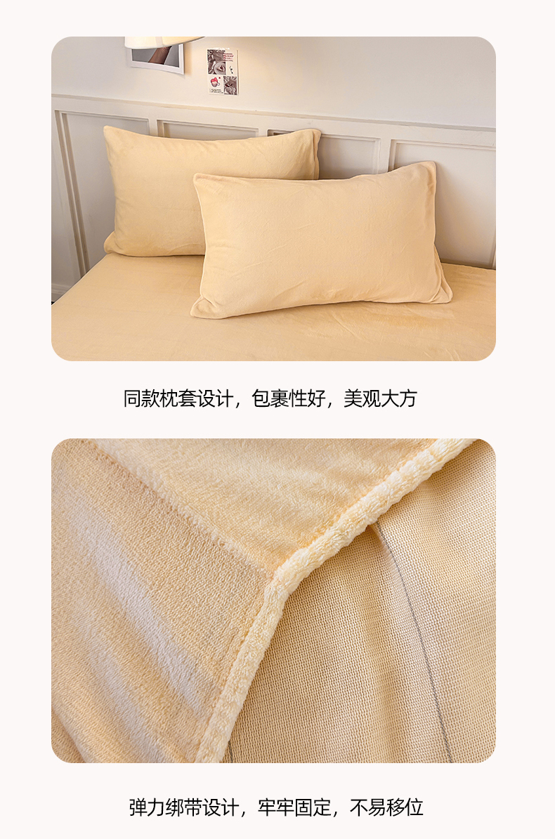 自然醒A类高克重牛奶绒床笠单件冬季珊瑚绒宿舍单人加厚床罩纯色床单三件套JY