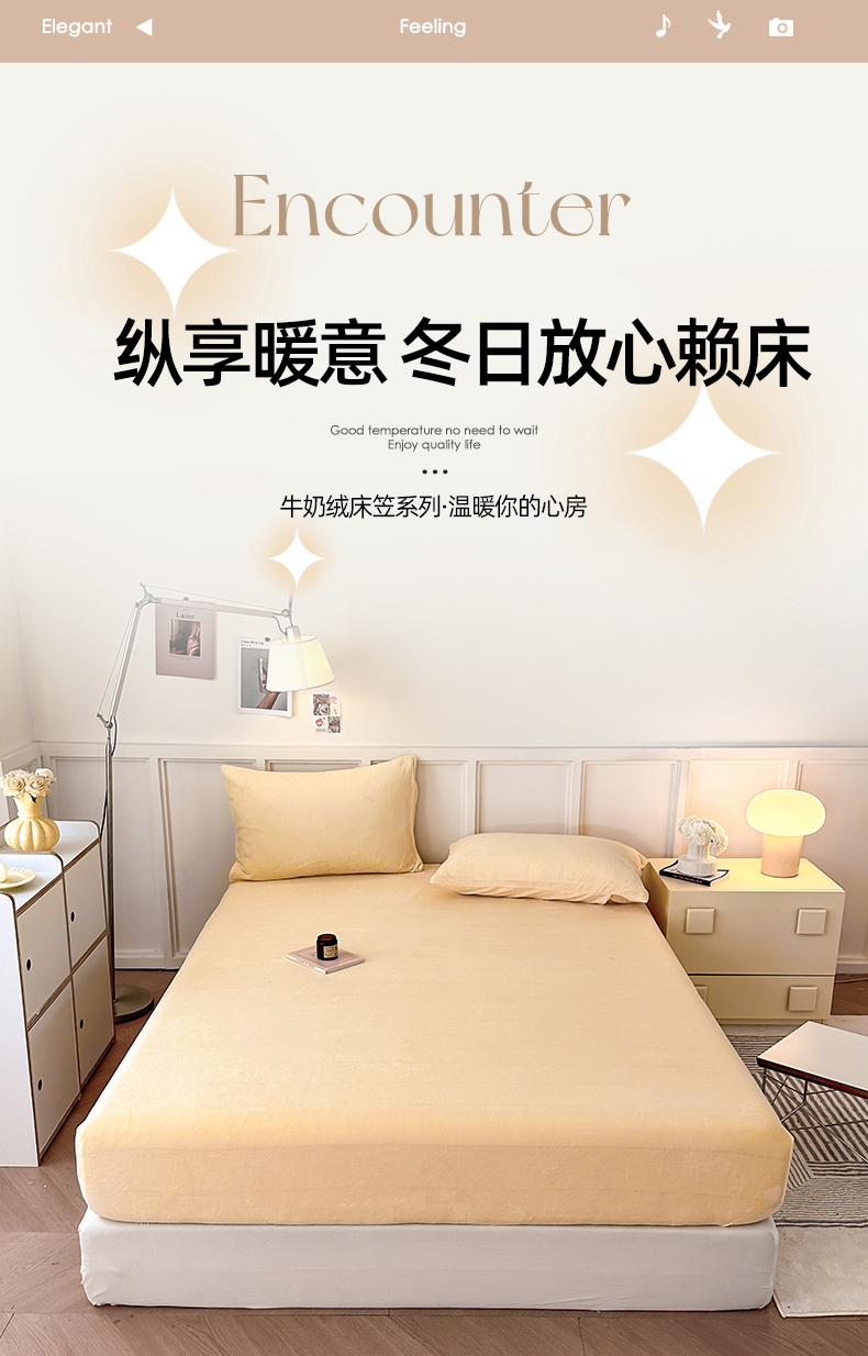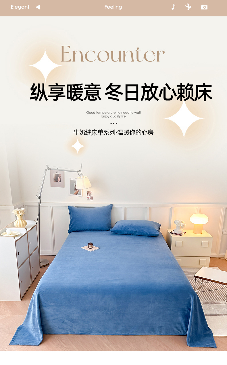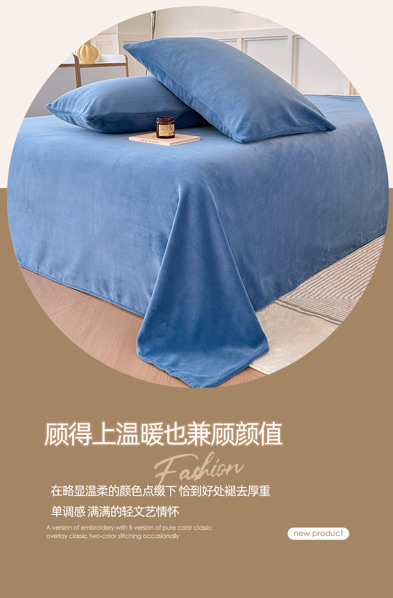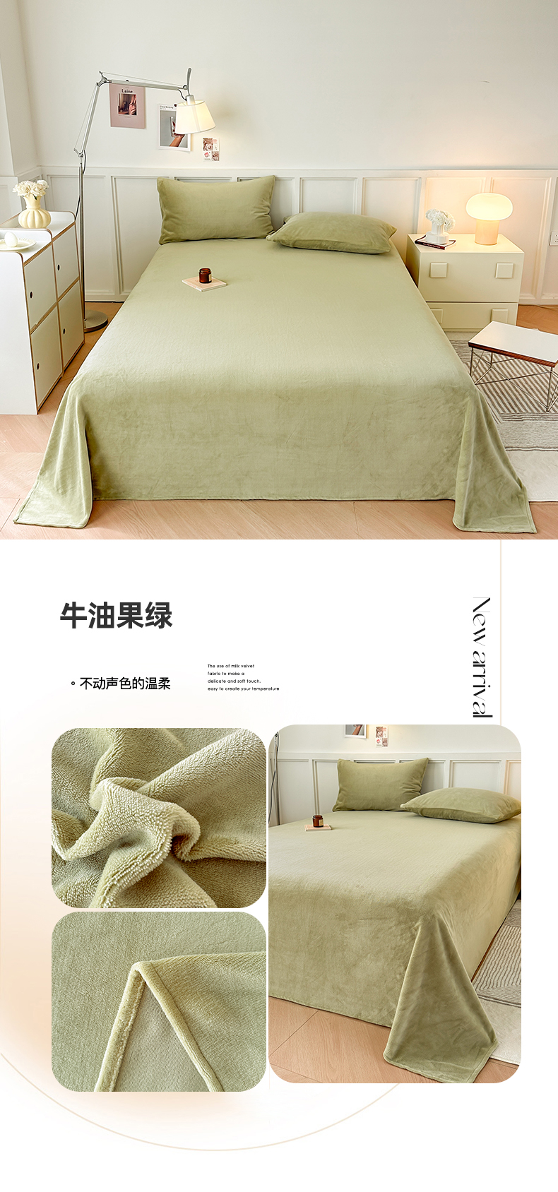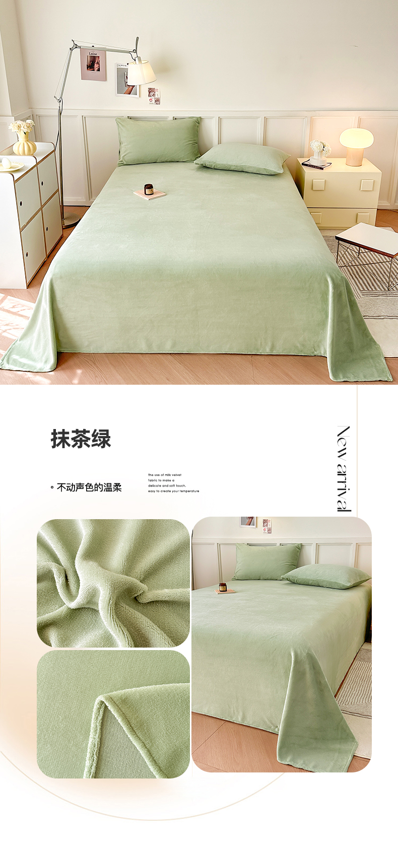 自然醒A类高克重牛奶绒床笠单件冬季珊瑚绒宿舍单人加厚床罩纯色床单三件套JY