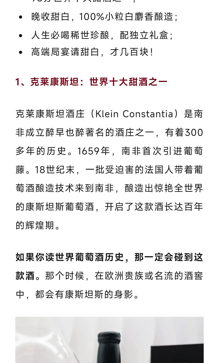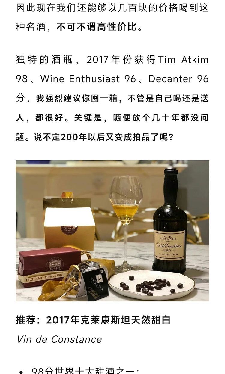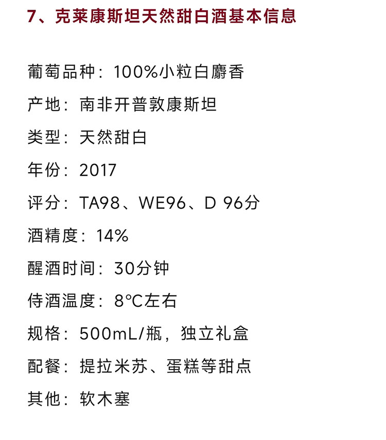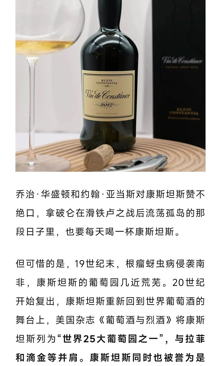 【售完无补】2017年南非开普敦克莱康斯坦斯小粒白麝香天然甜白酒