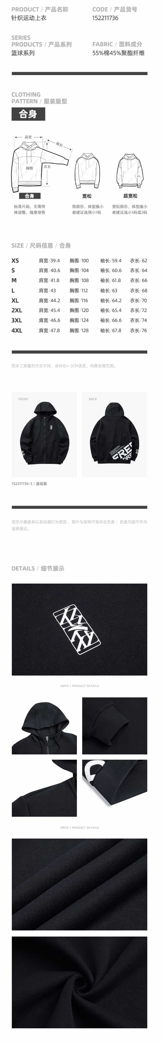 安踏外套男2022春季新款休闲开衫连帽上衣152211736-2
