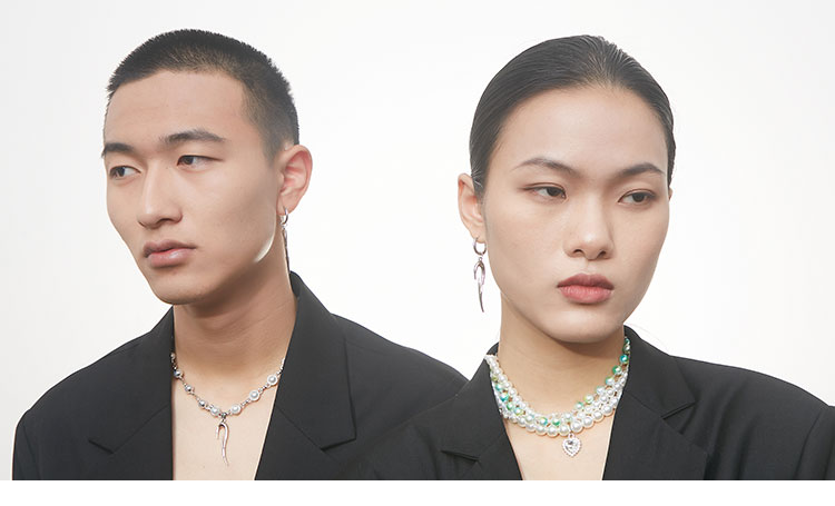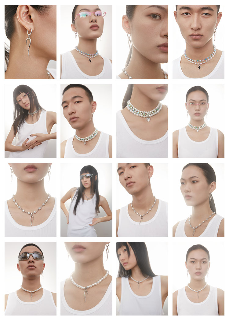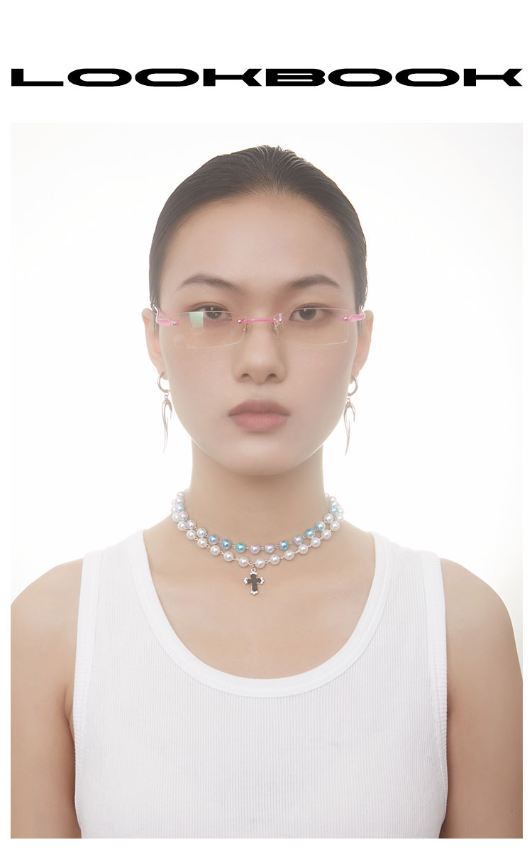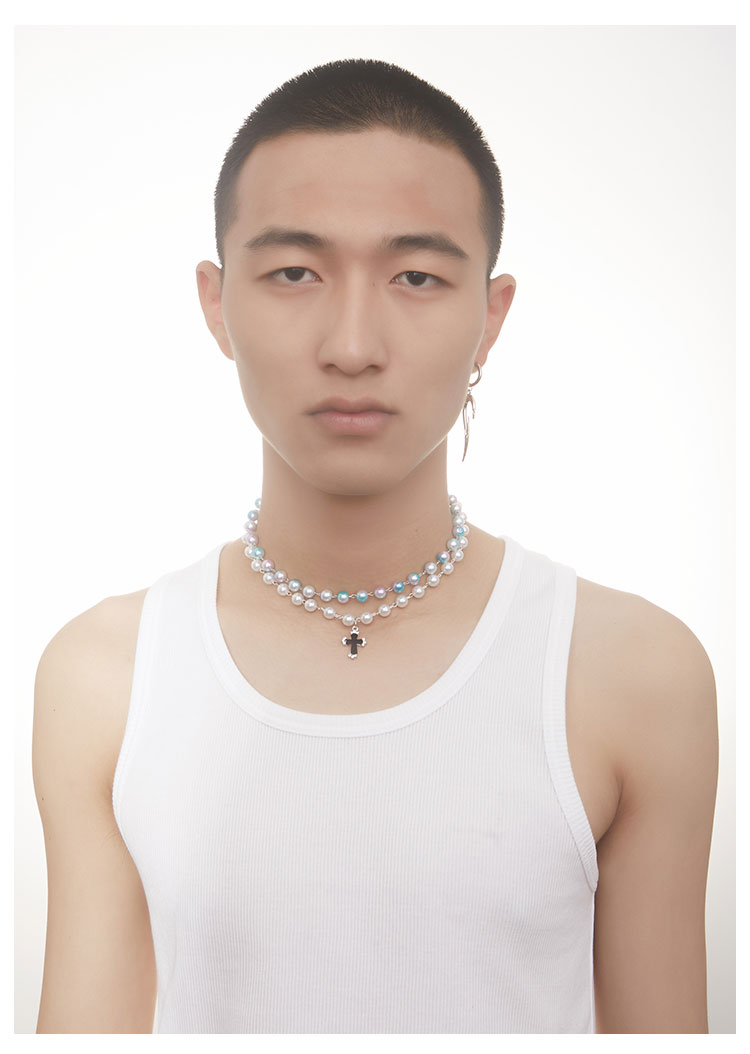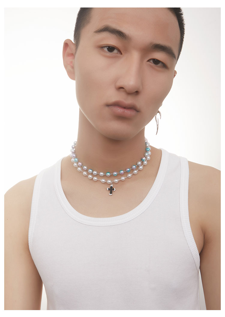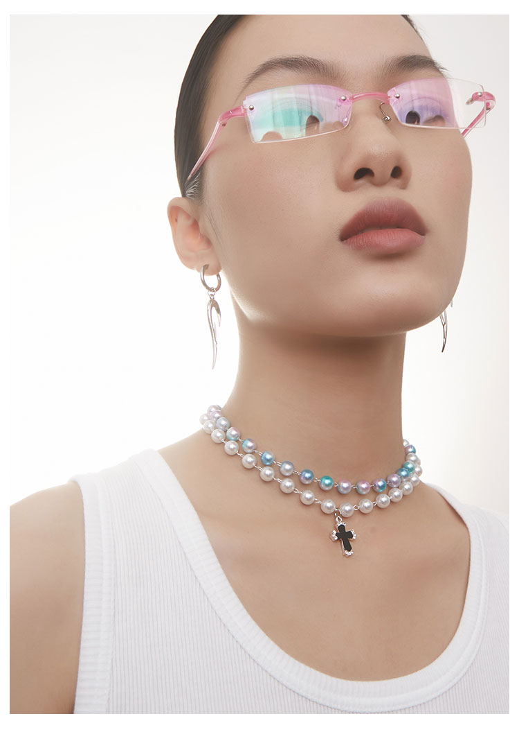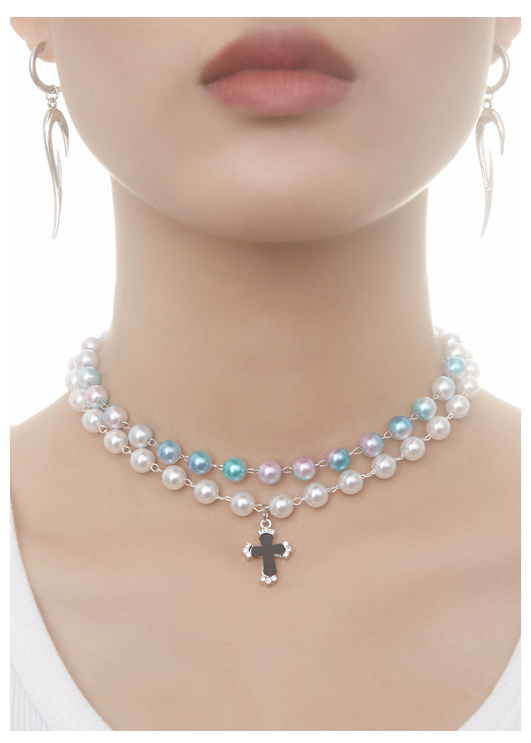 QZC2000 原创双层梦幻珍珠十字架边钻吊坠项链 小众设计