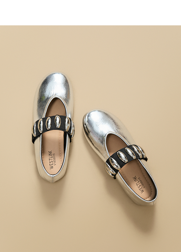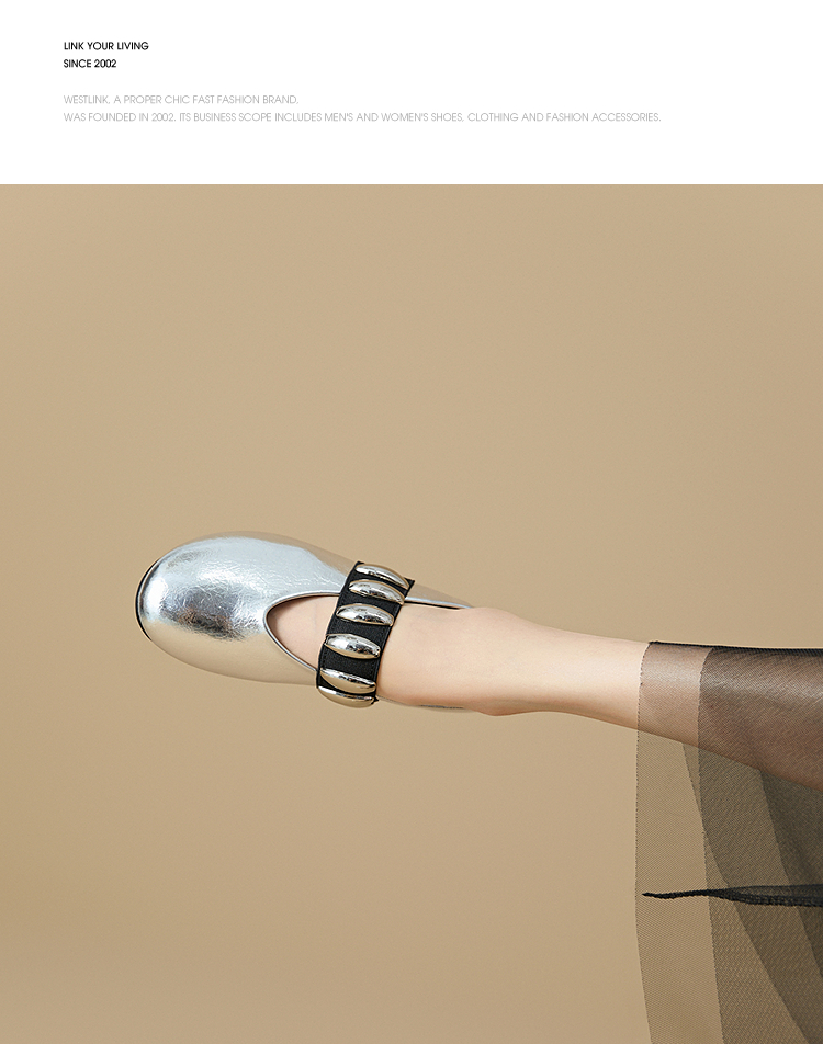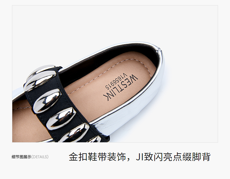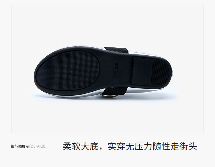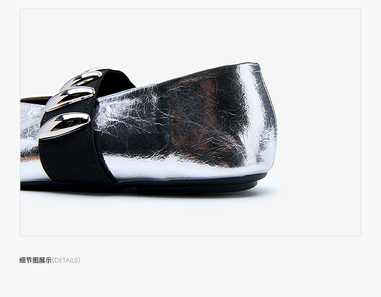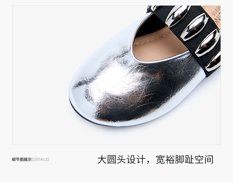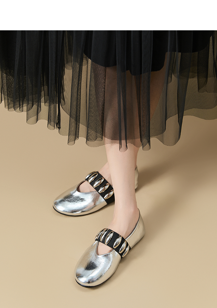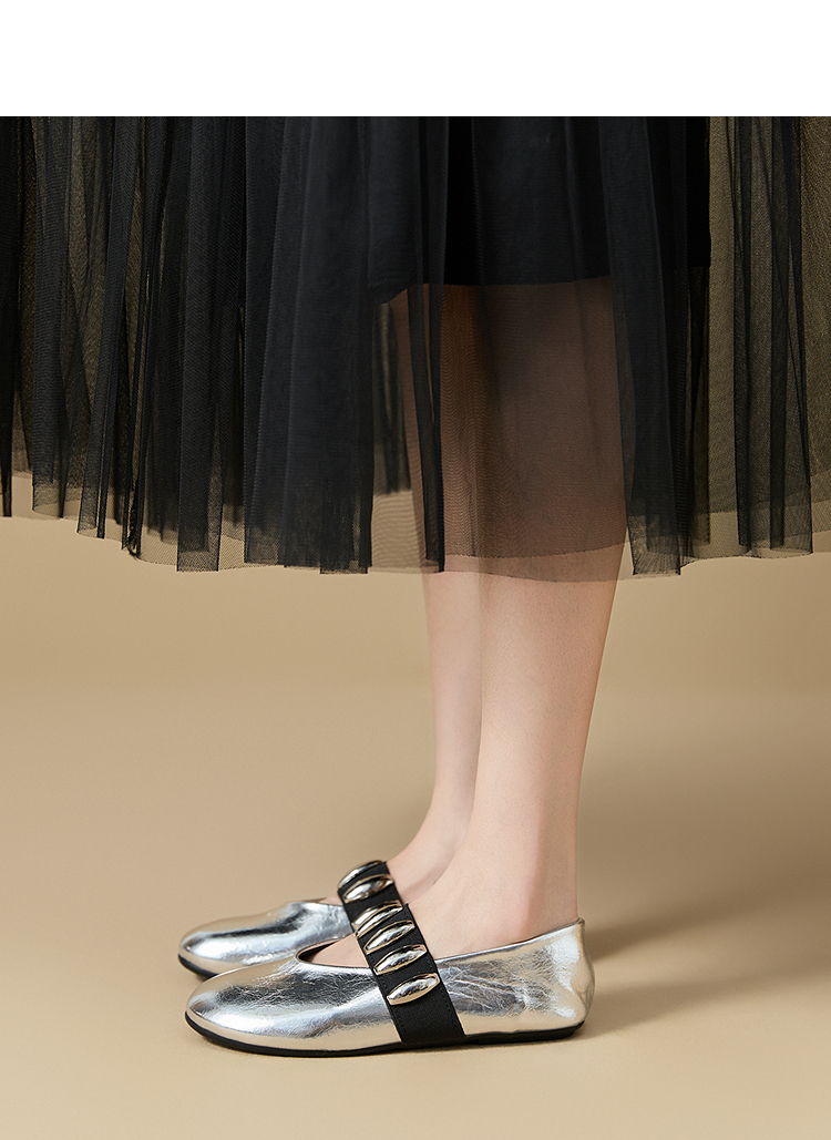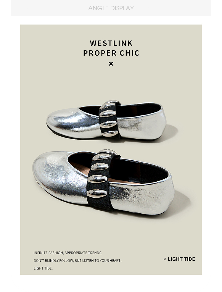 西遇平底单鞋女新款秋季小众设计感复古圆头软底银色玛丽珍鞋V1656915