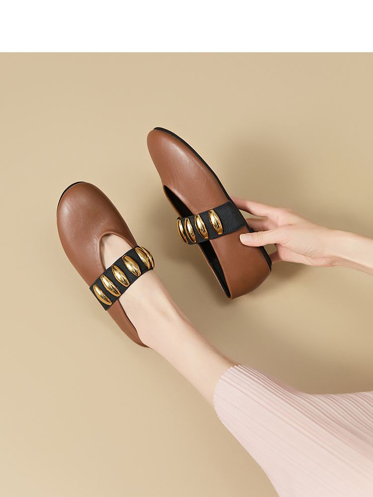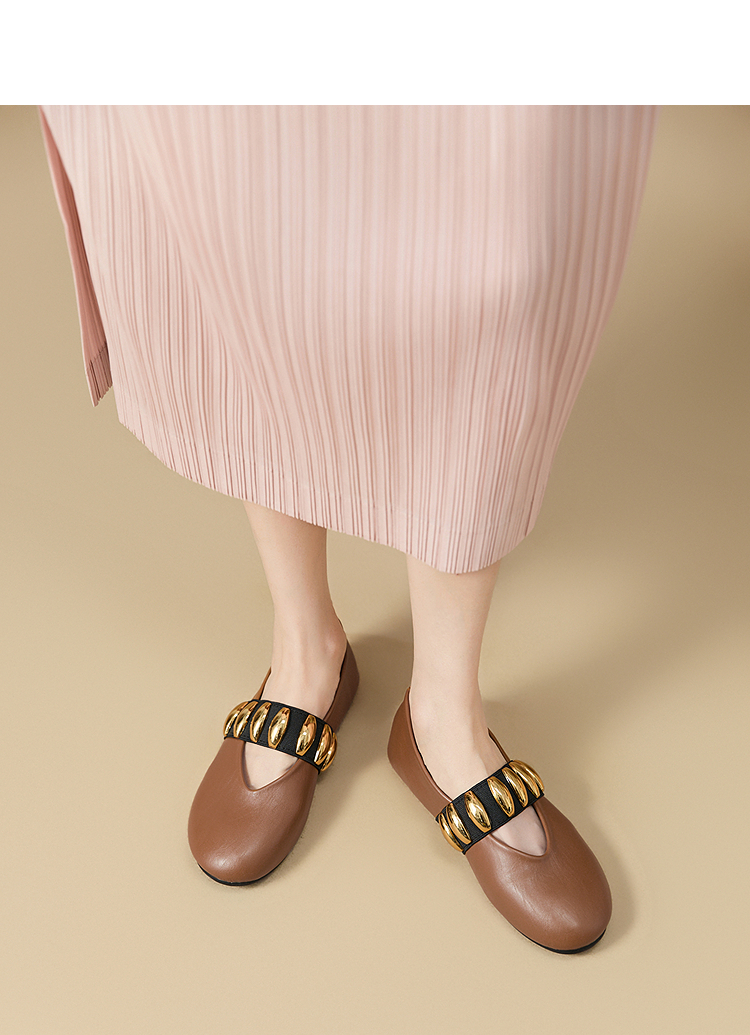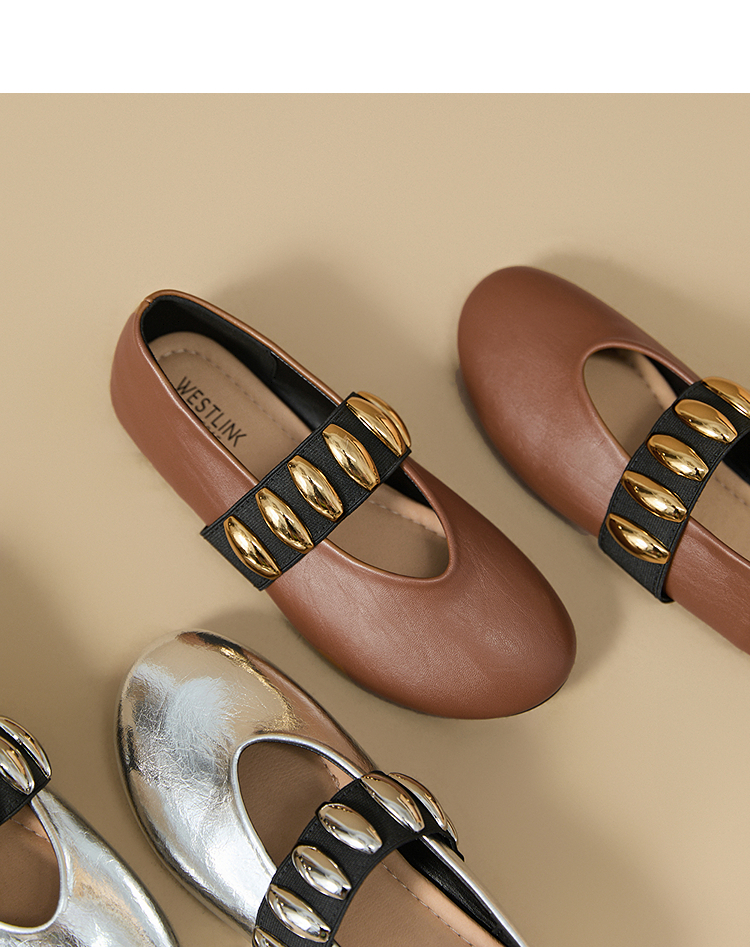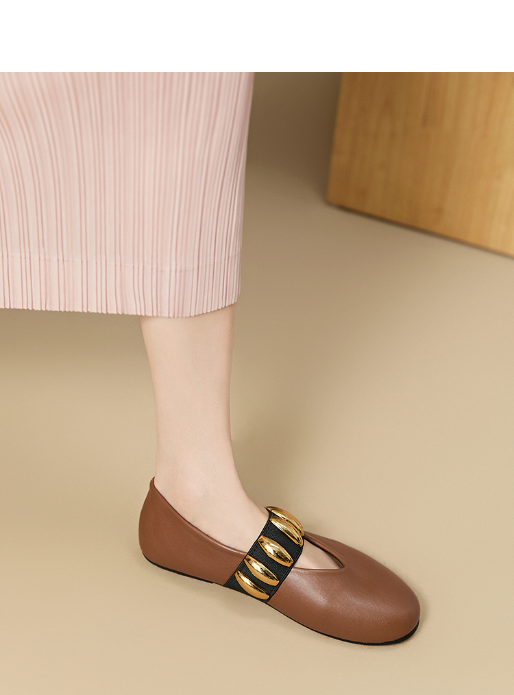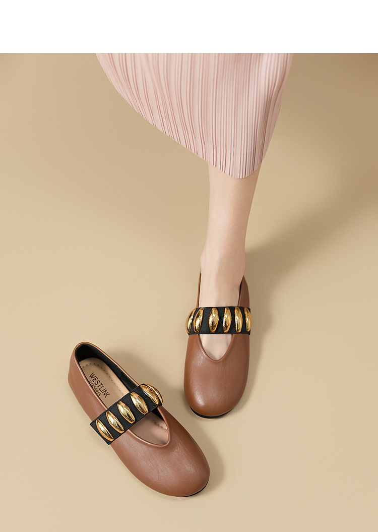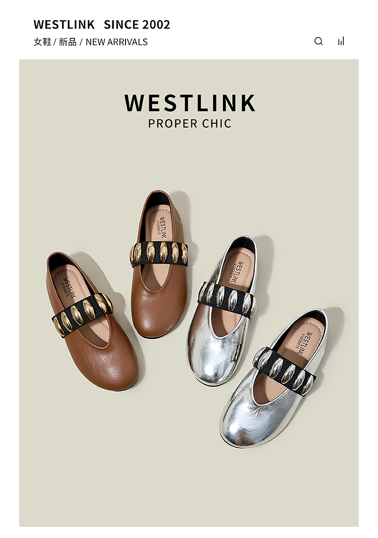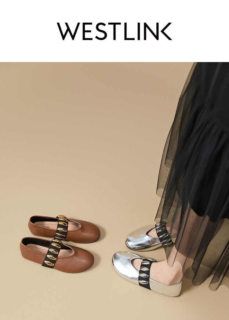 西遇平底单鞋女新款秋季小众设计感复古圆头软底银色玛丽珍鞋V1656915