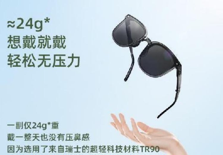 产品卖点: UV380、口袋里的“气垫墨镜”、一体式镜片 TPE防滑鼻托、Oversize 无边高光镜片 RayTurn光感科技高效防晒、镜面超疏水抗污 直径12cm圆形收纳包 产品材料: 镜架主体:TR90