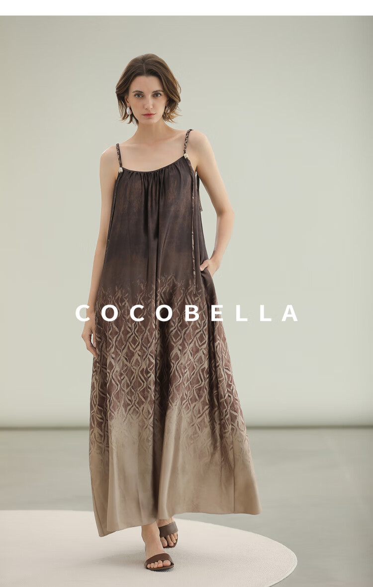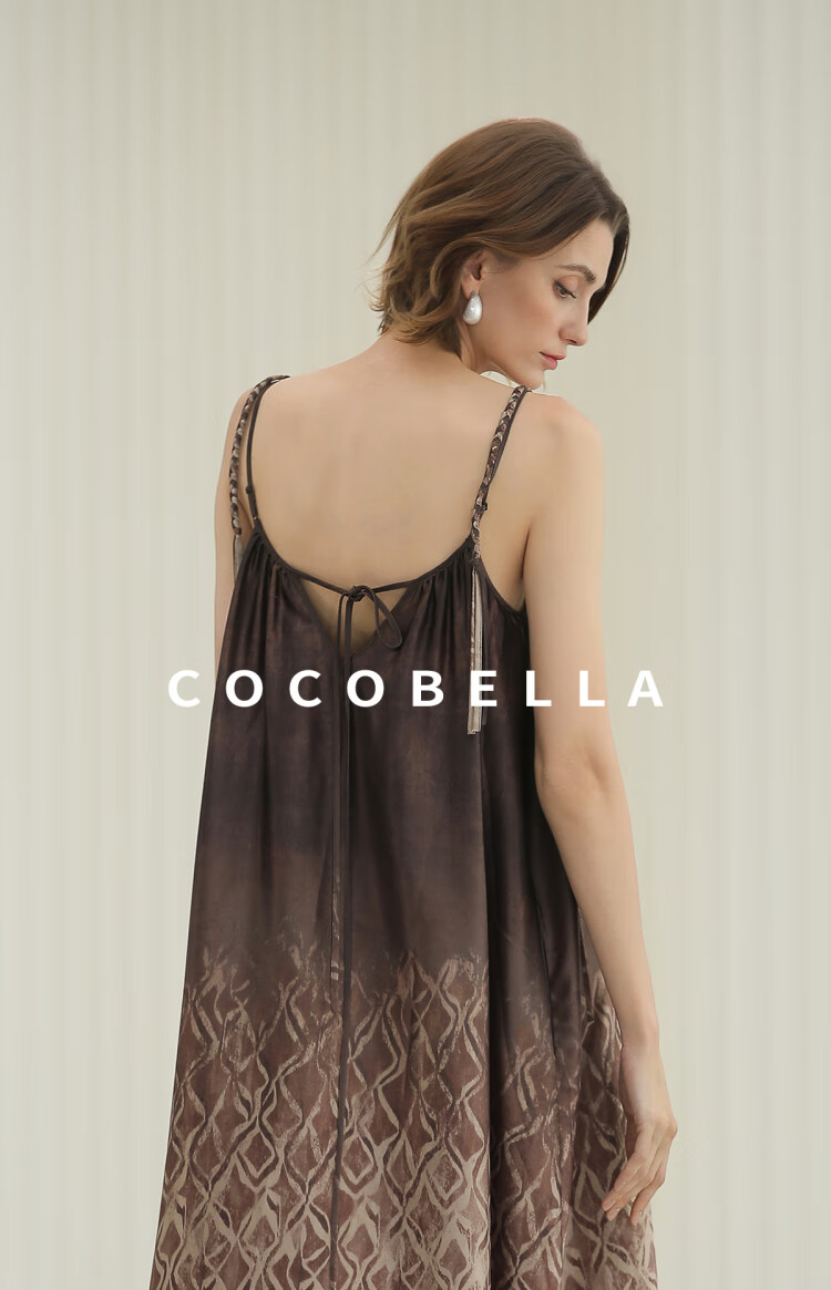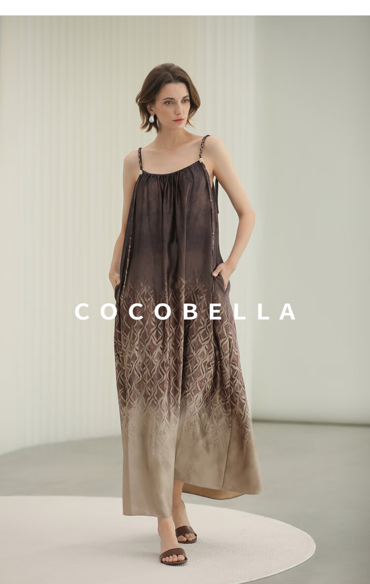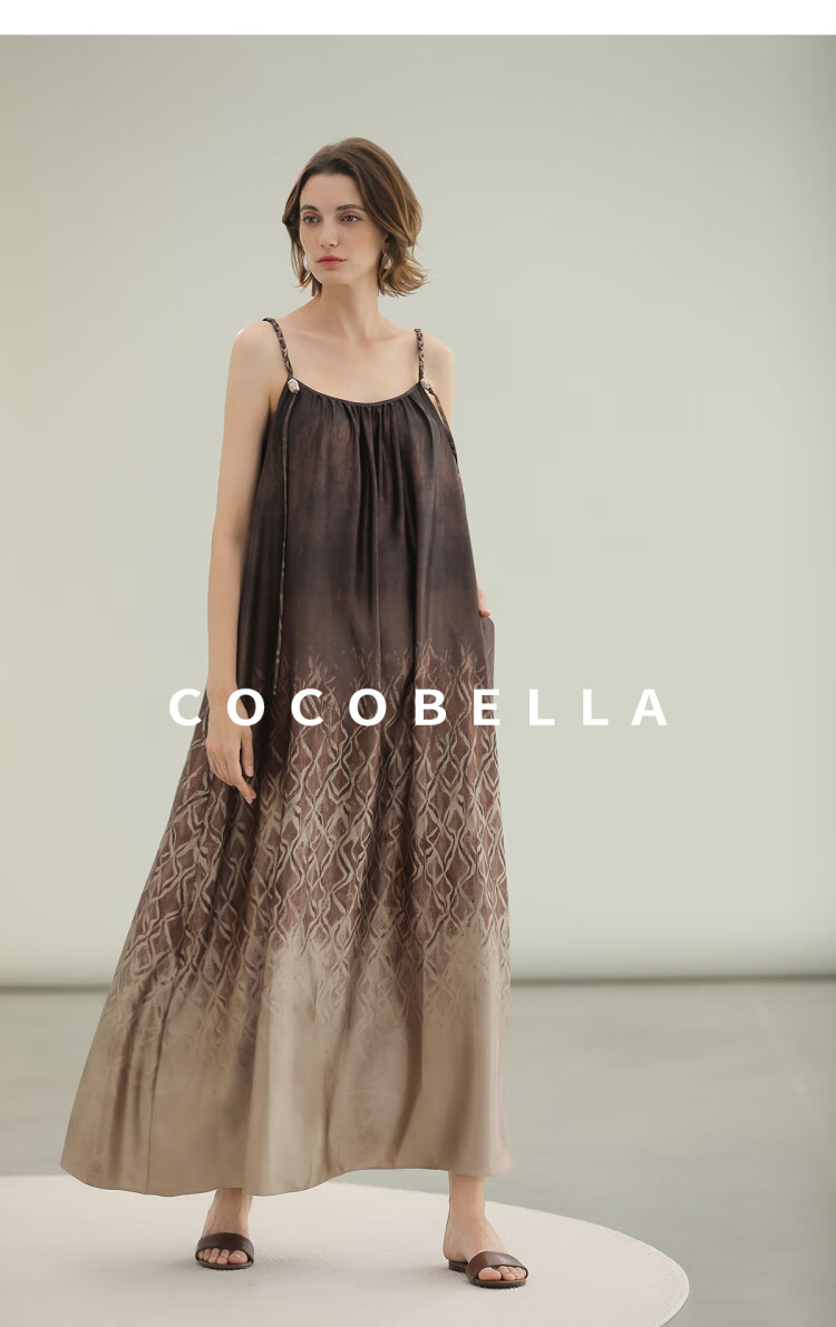 COCOBELLA清冷侘寂风渐变印花连衣裙夏丝滑缎感吊带裙FR3209
