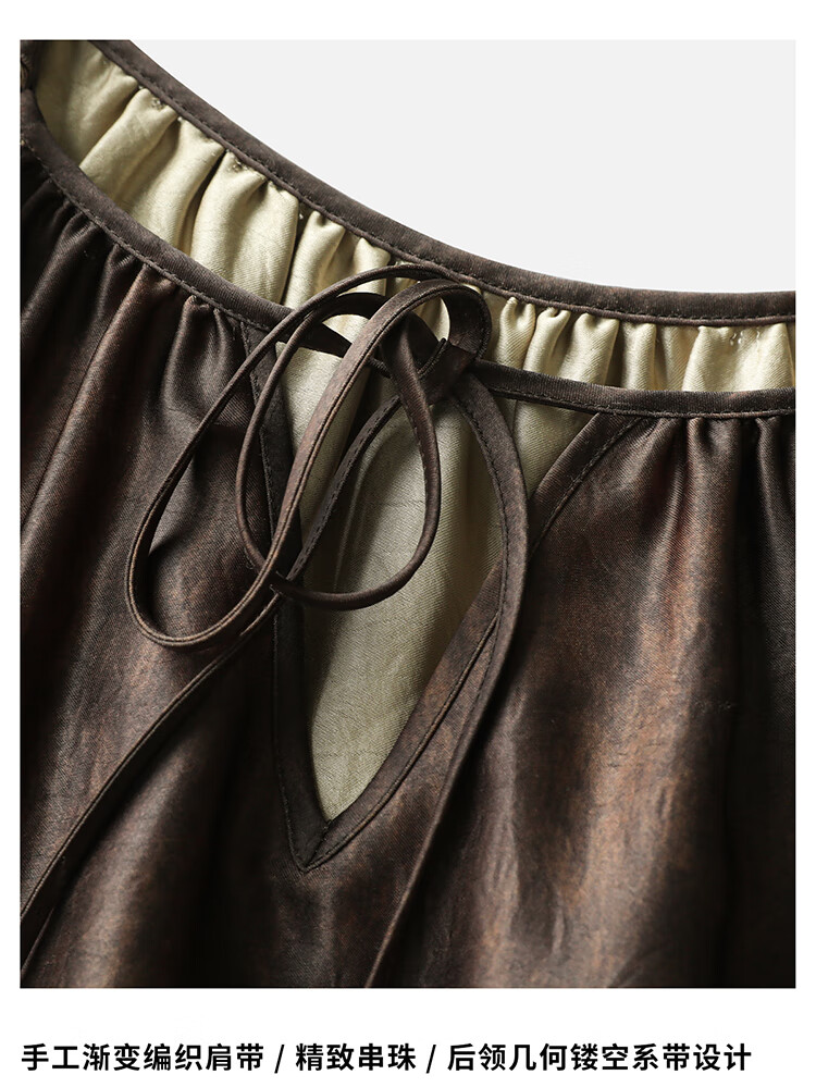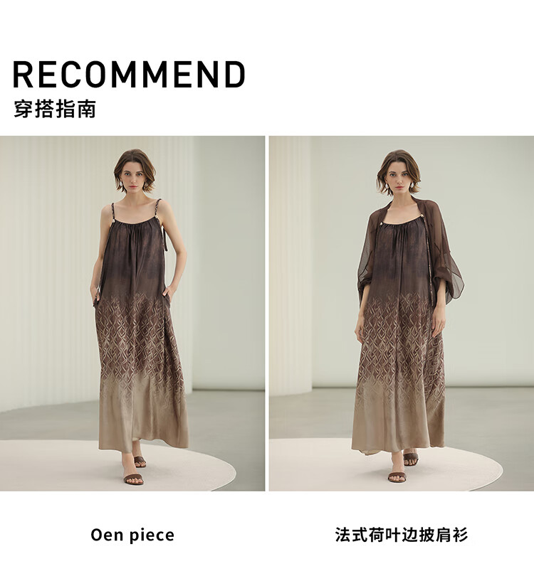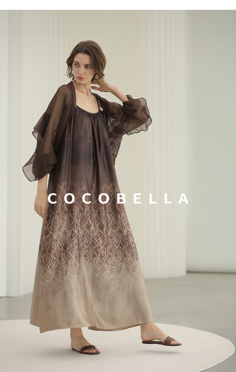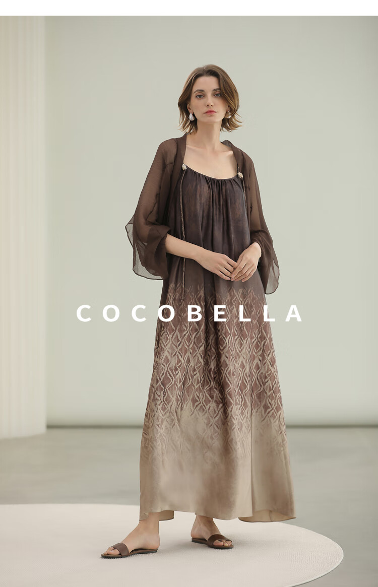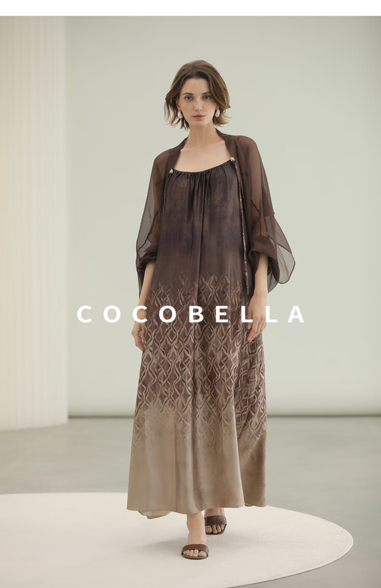 COCOBELLA清冷侘寂风渐变印花连衣裙夏丝滑缎感吊带裙FR3209
