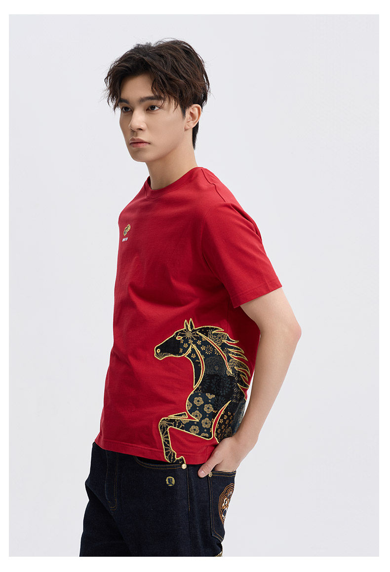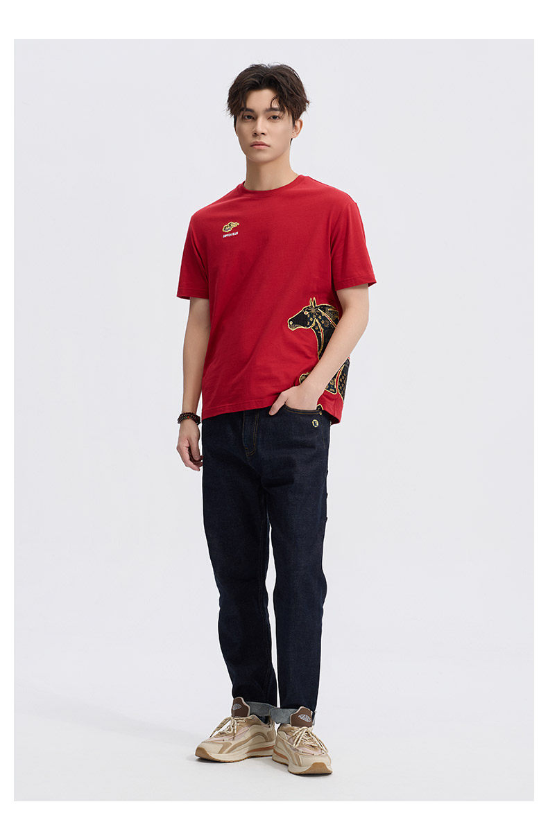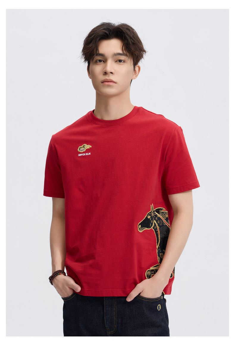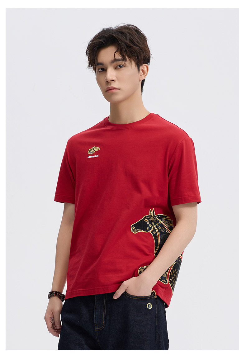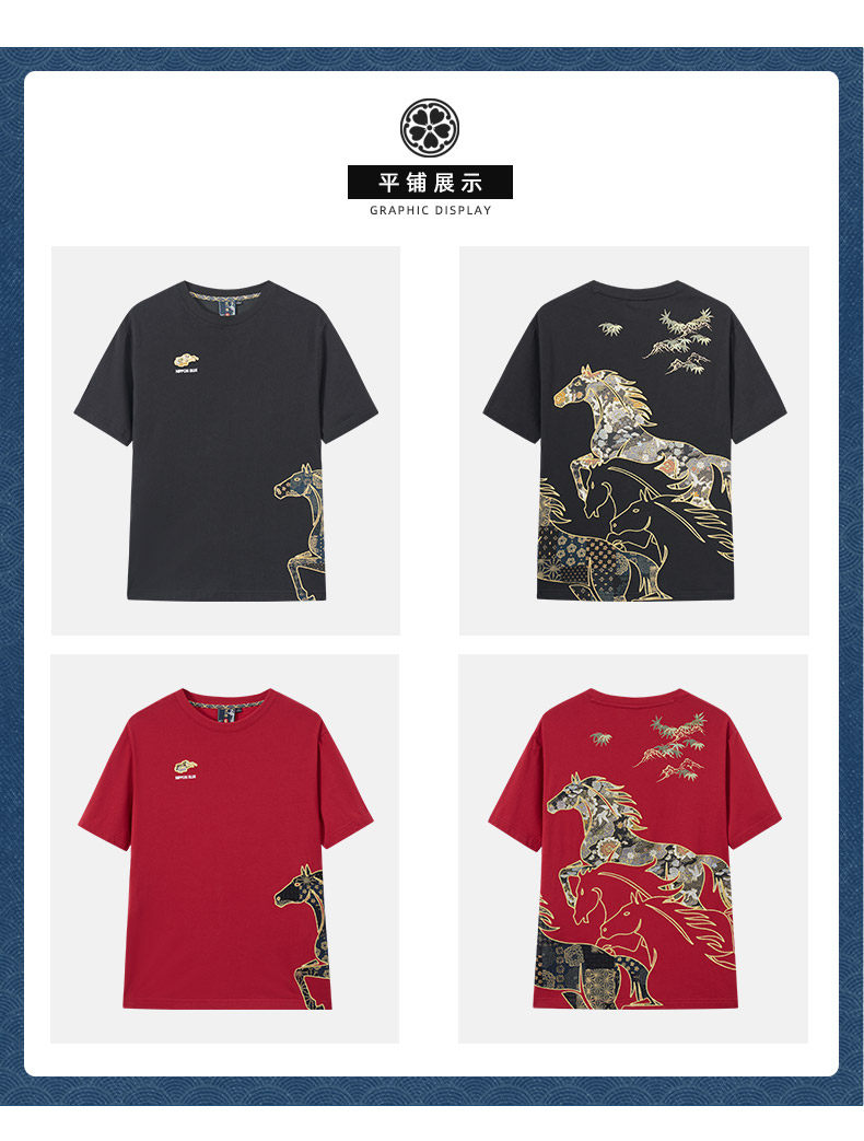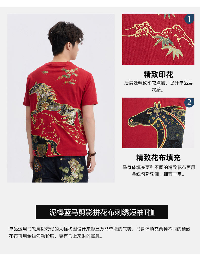 ONIARAI/鬼洗26春季新品泥棒蓝马剪影拼花布刺绣短袖T恤 26NOB30