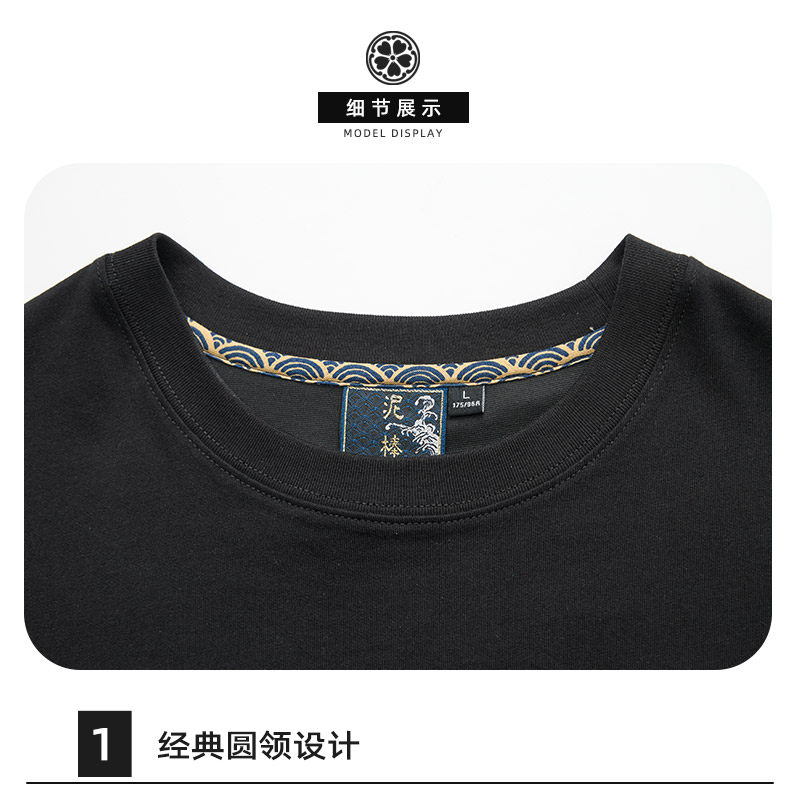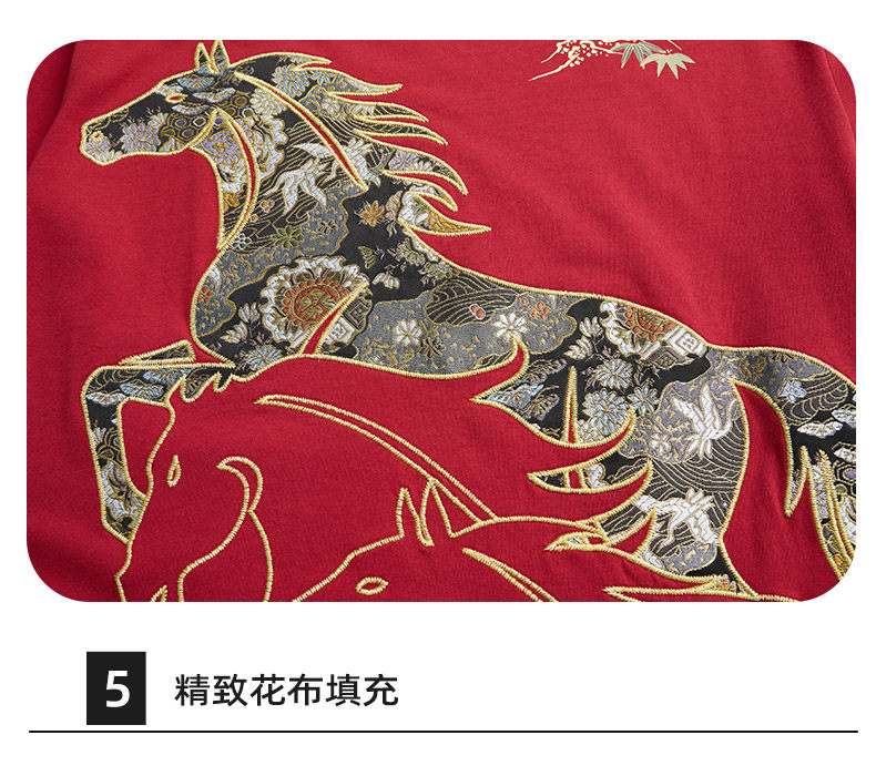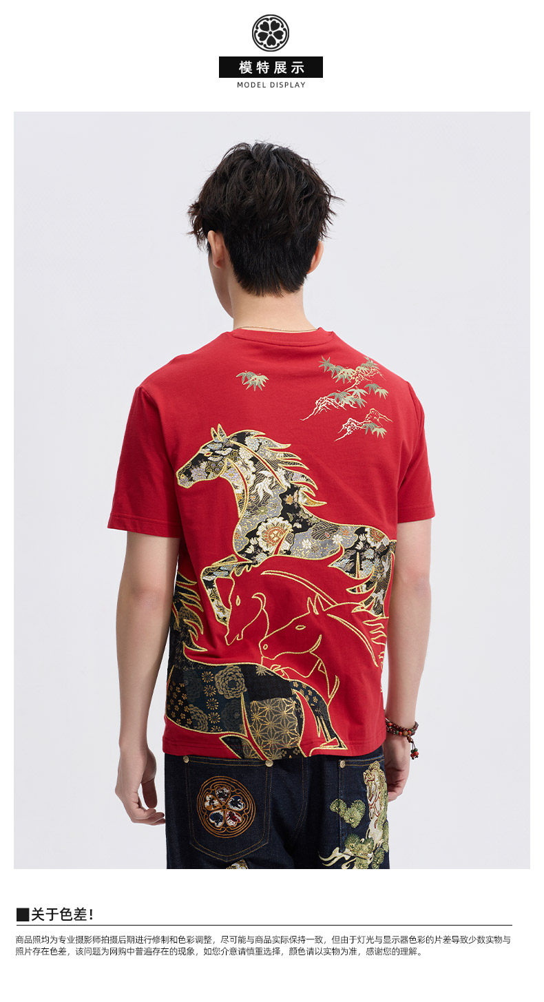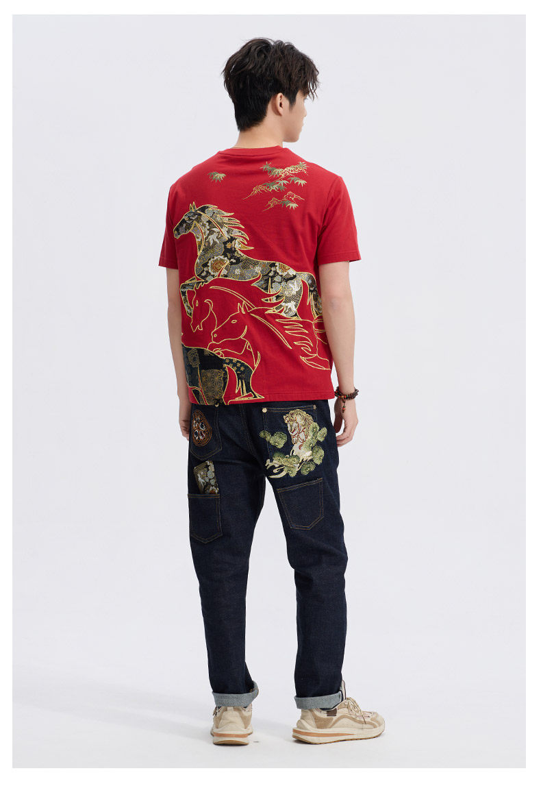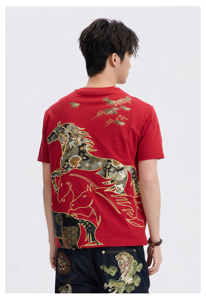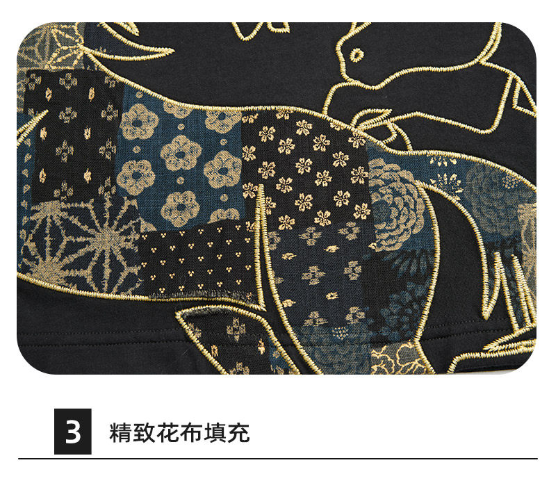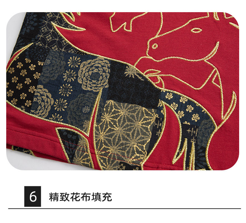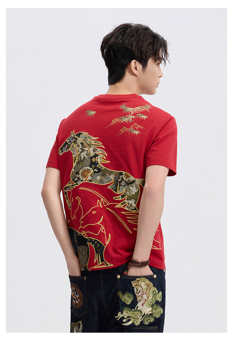 ONIARAI/鬼洗26春季新品泥棒蓝马剪影拼花布刺绣短袖T恤 26NOB30