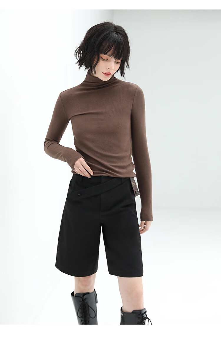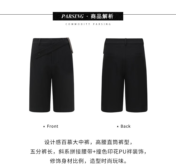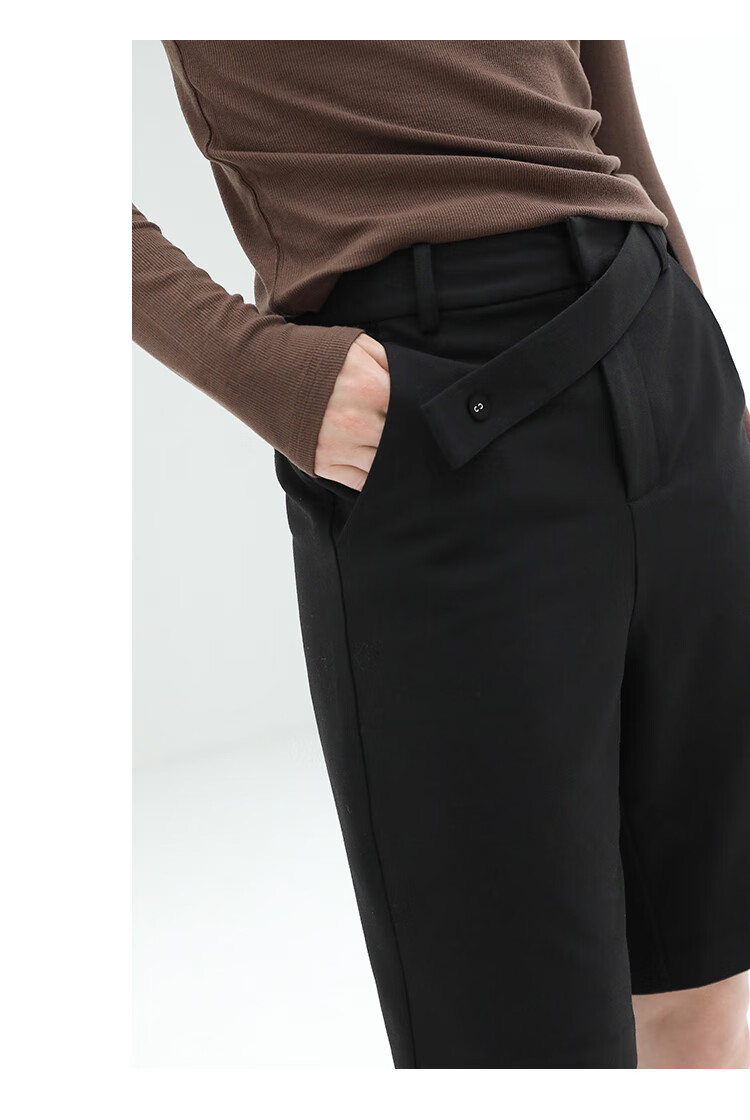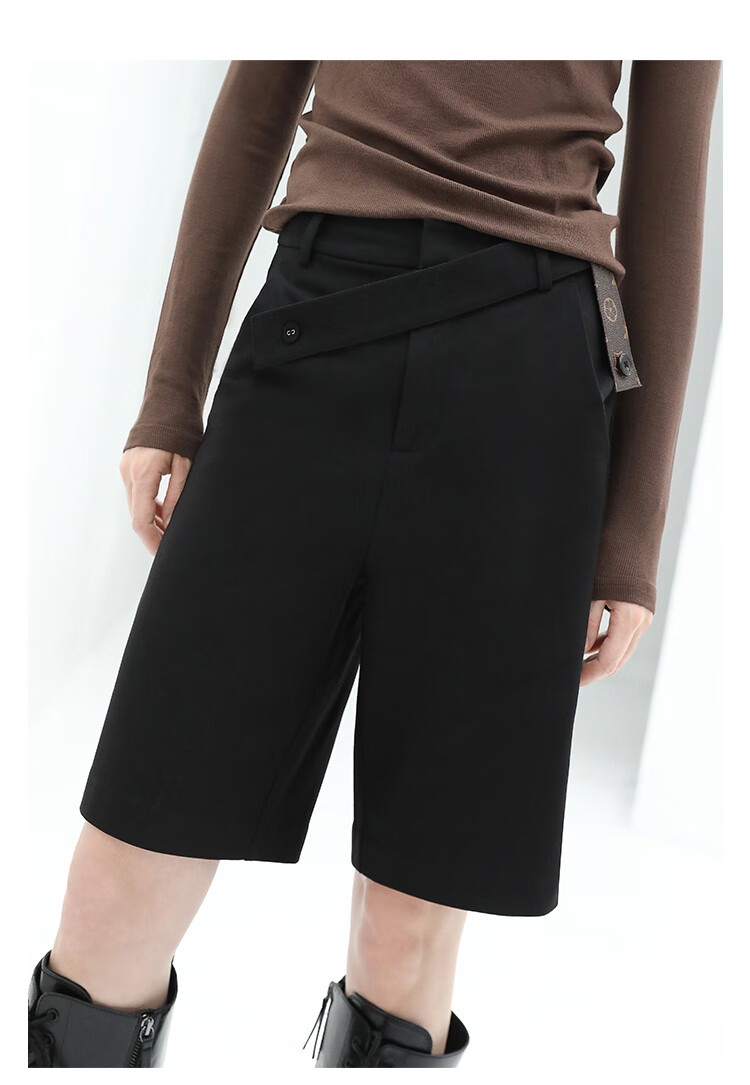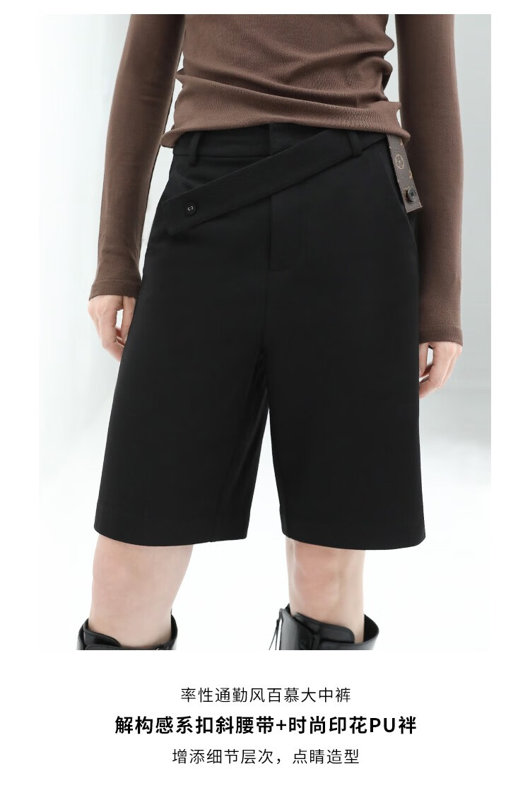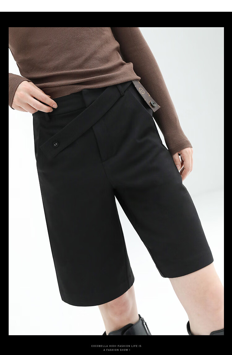 COCOBELLA设计感高腰西装短裤女时尚PU装饰百慕大五分裤SO606