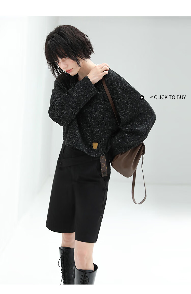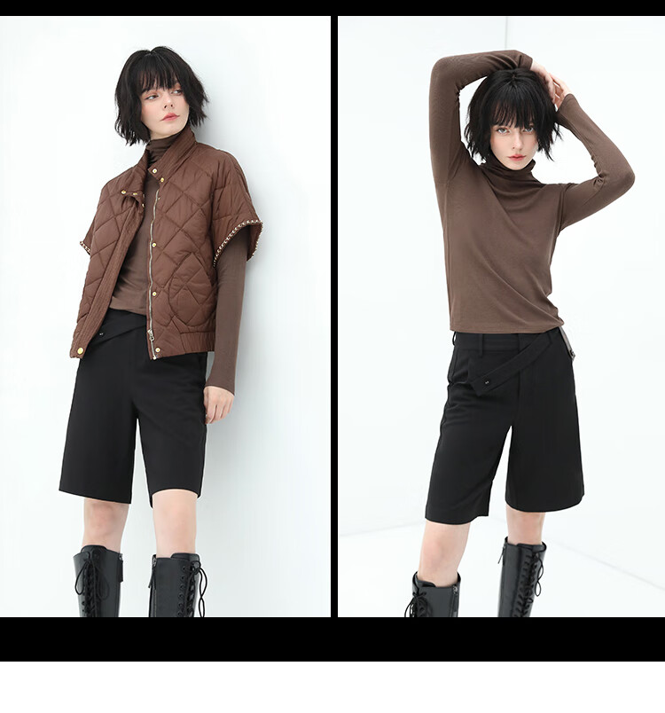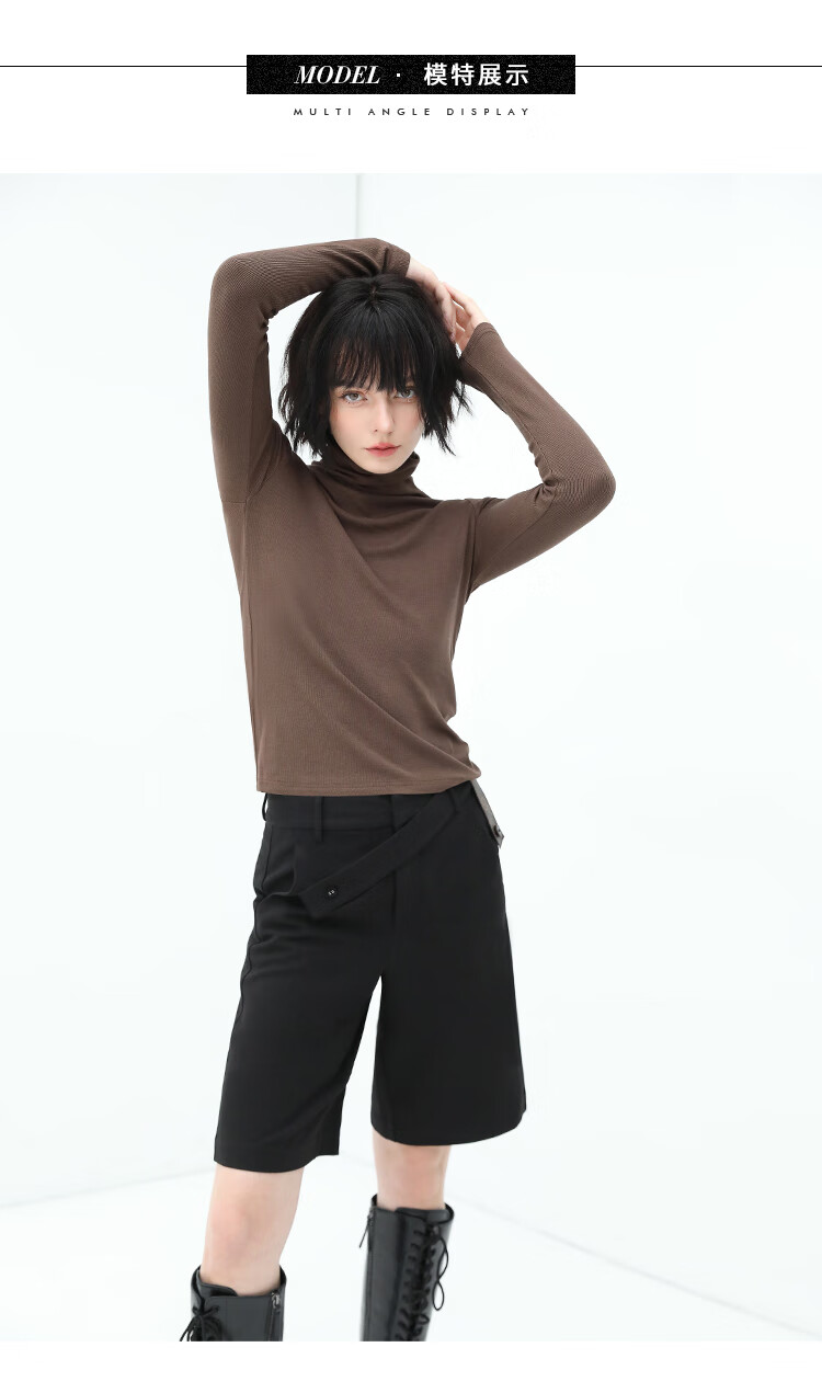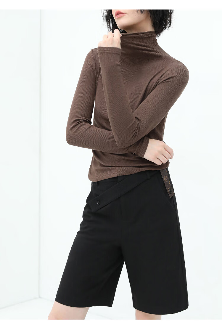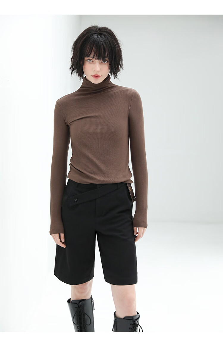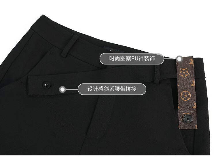 COCOBELLA设计感高腰西装短裤女时尚PU装饰百慕大五分裤SO606