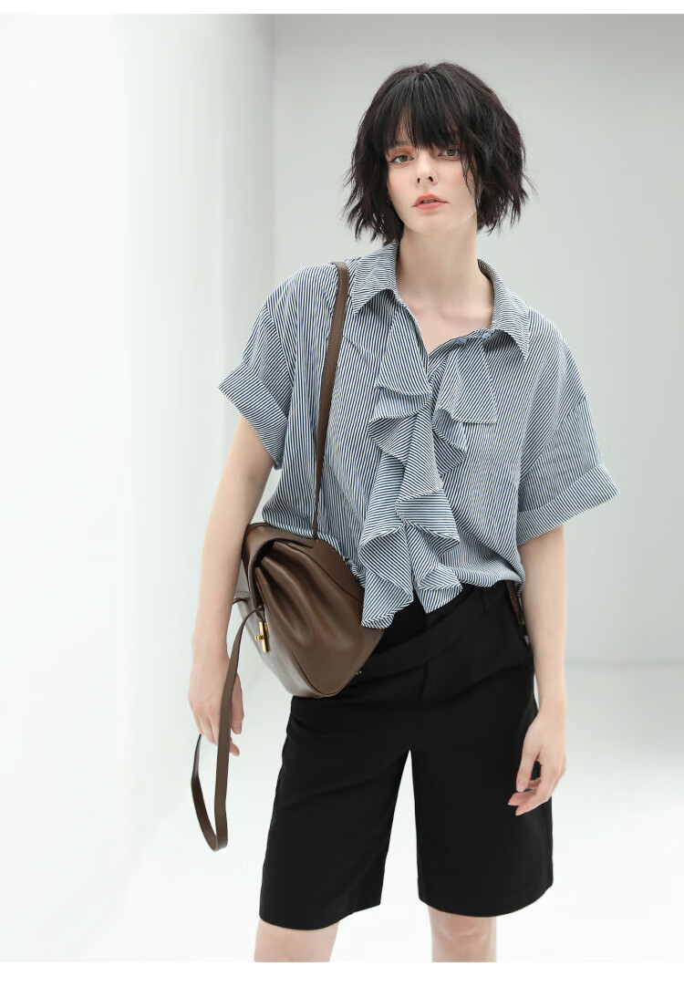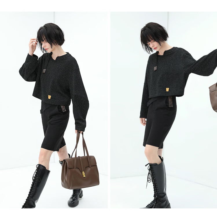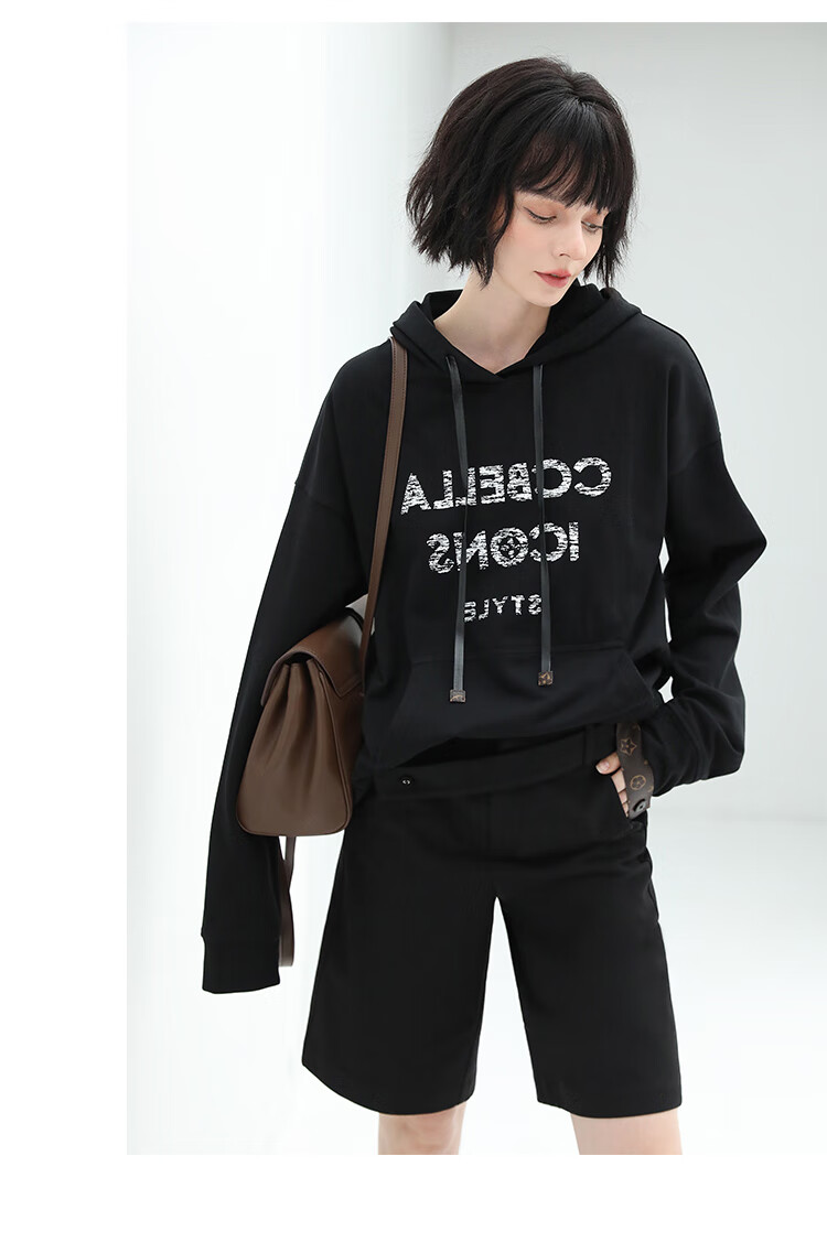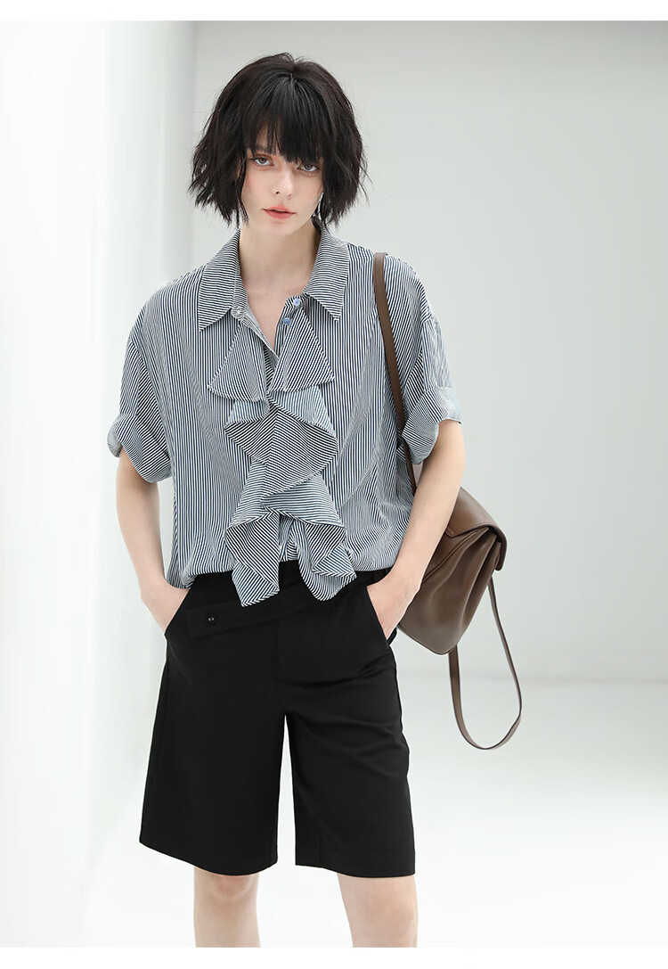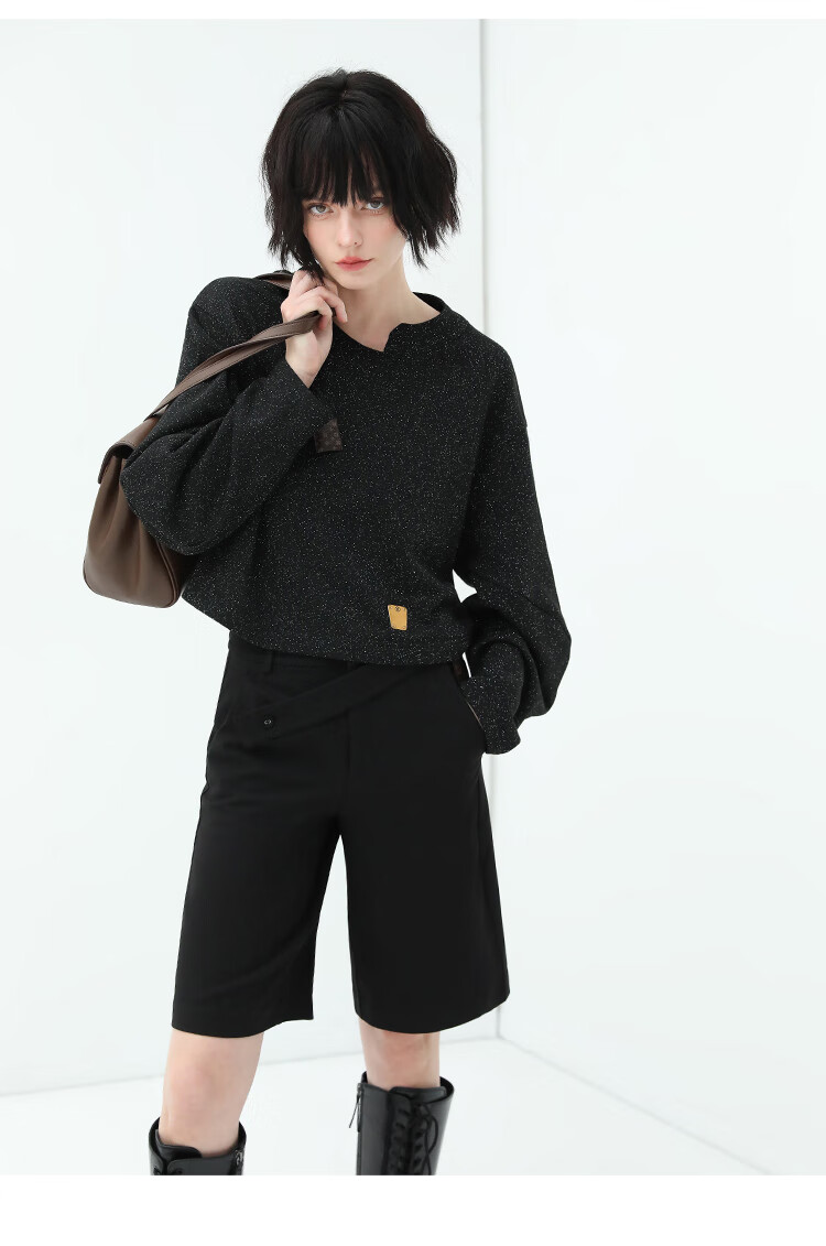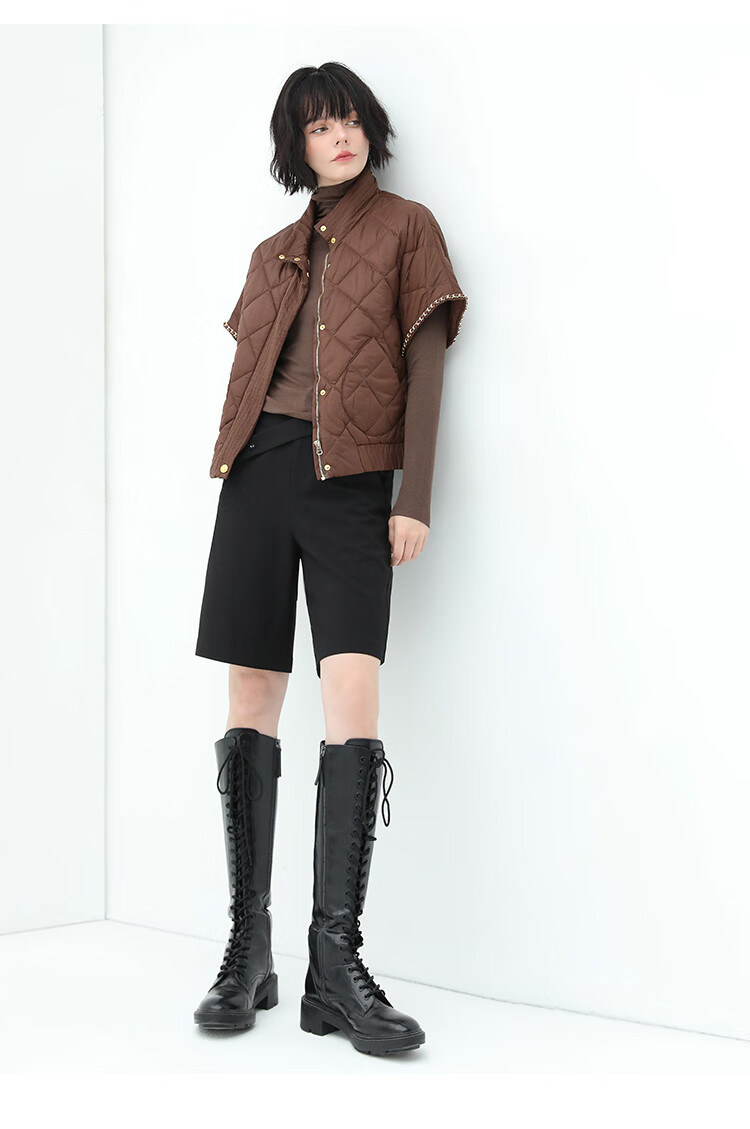 COCOBELLA设计感高腰西装短裤女时尚PU装饰百慕大五分裤SO606