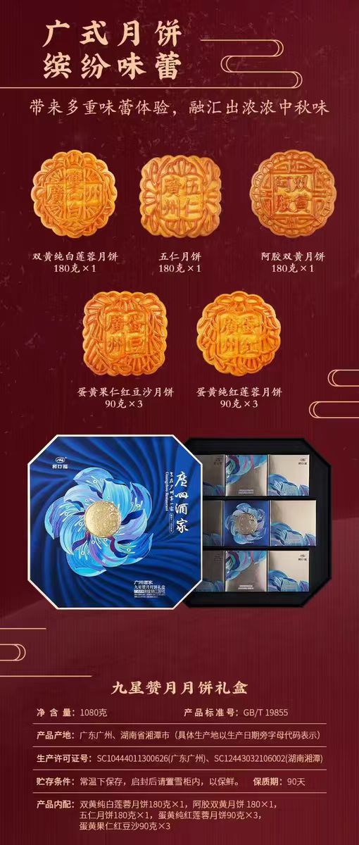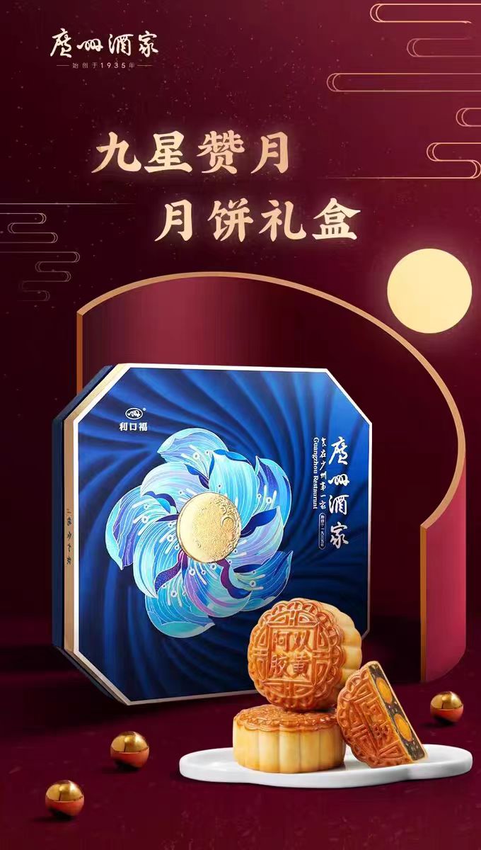 【包邮】广州酒家 | 九星赞月月饼礼盒1.08kg9粒装
