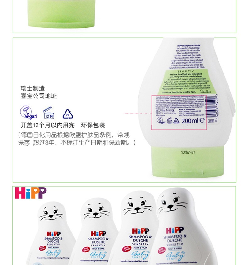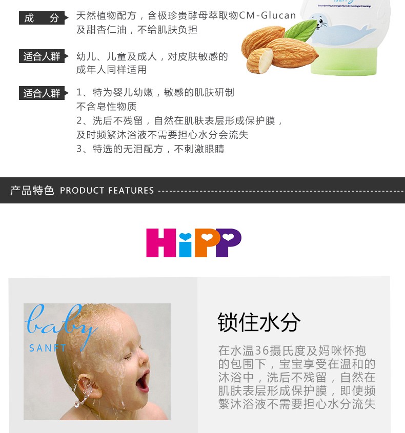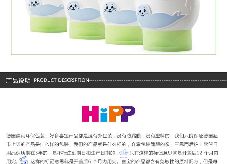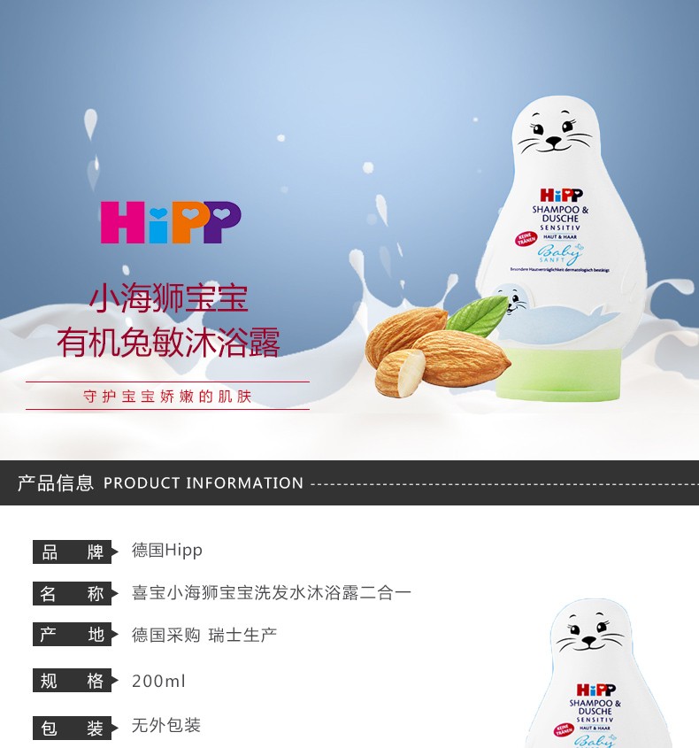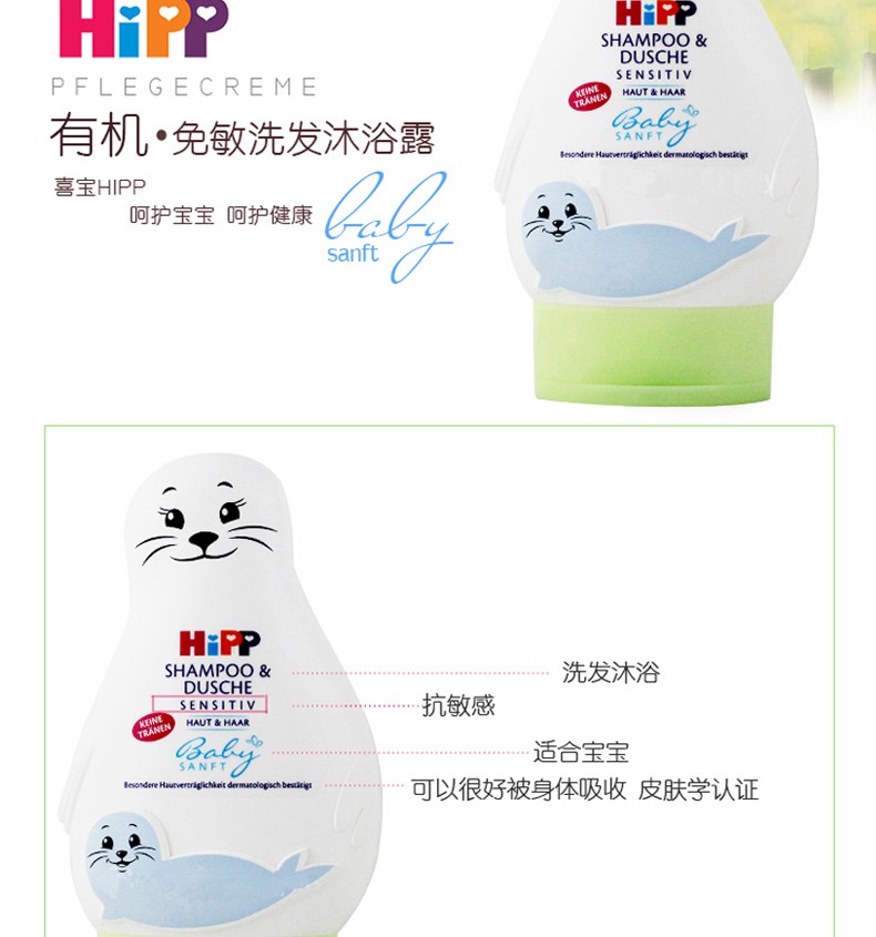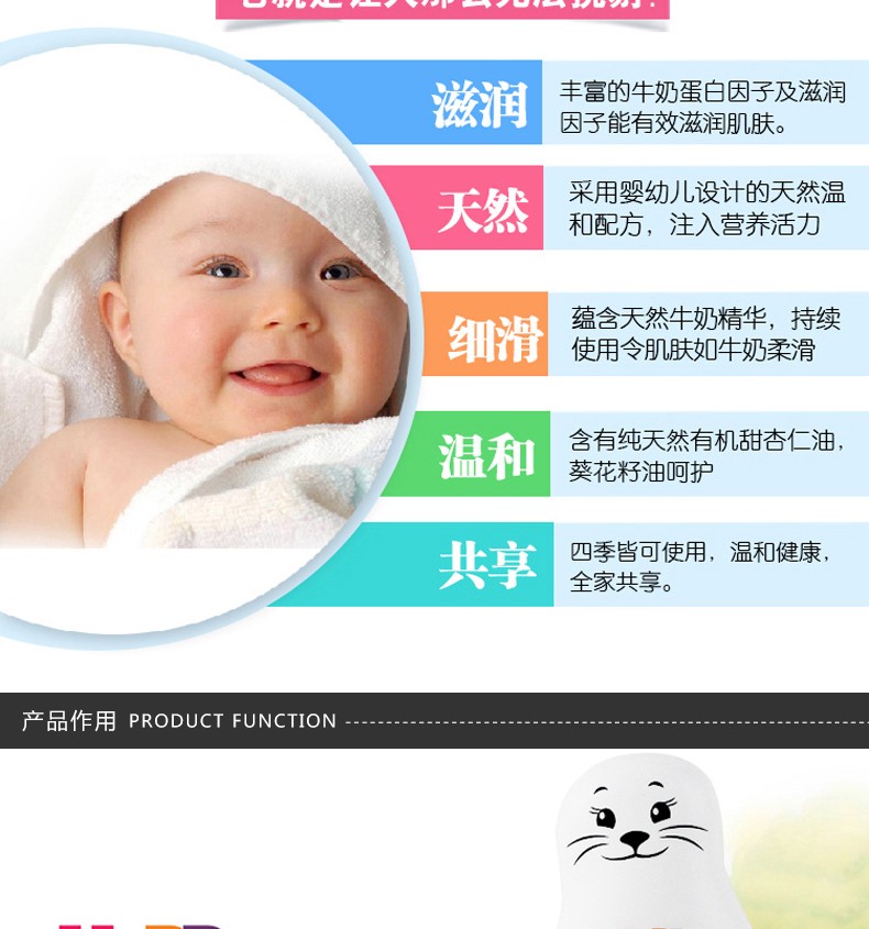 不残留,特有的润肤配方,萌萌的小海豹造型,让宝宝爱上洗澡洗发。