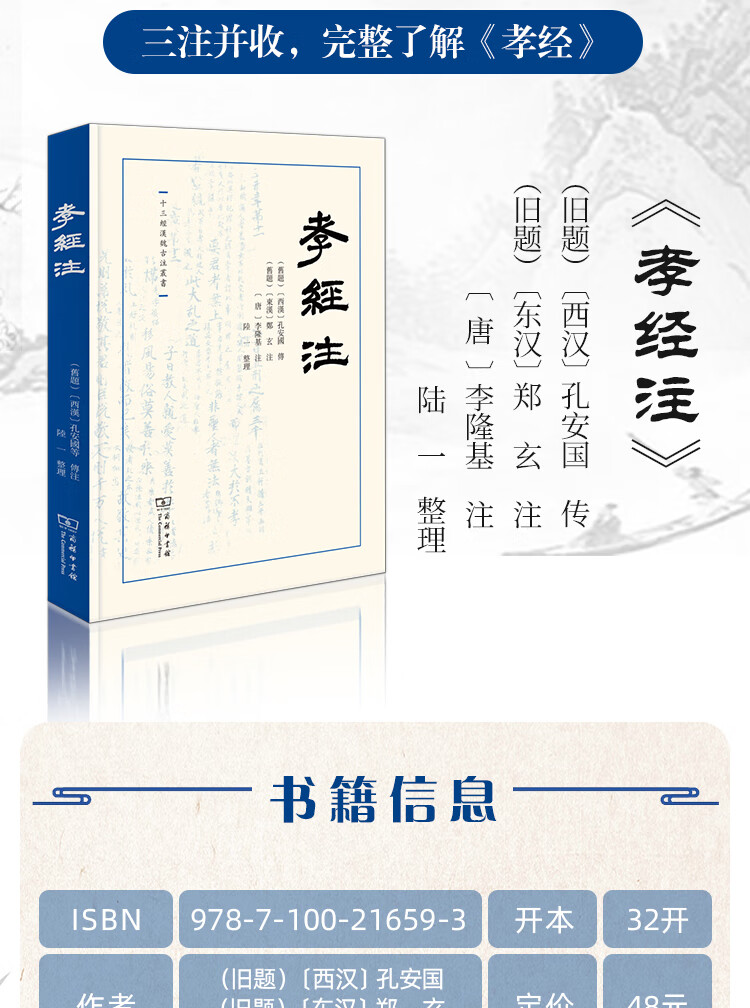 孝经注(十三经汉魏古注丛书)(繁体横排) (旧题)〔西汉〕孔安国传,(旧题)〔东汉〕郑玄,〔唐〕李隆基注,陆一整理 商务印书馆