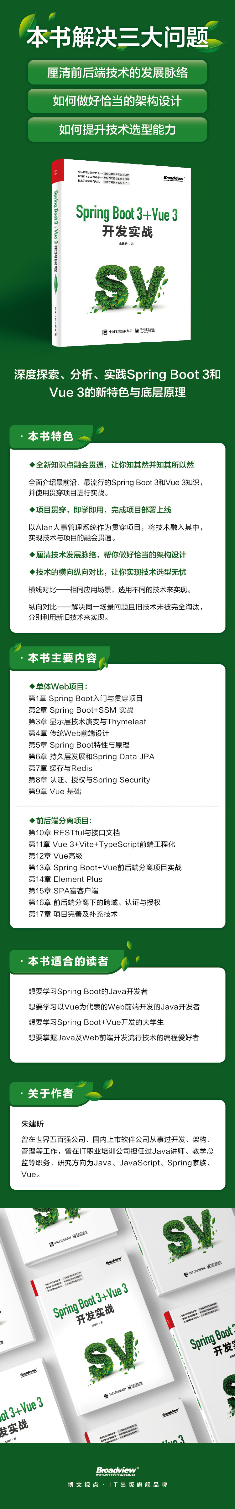 Spring Boot 3 +Vue 3开发实战 朱建昕 架构设计技术选型Spring Boot 3和Vue 3项目开发实战 电子工业出版社