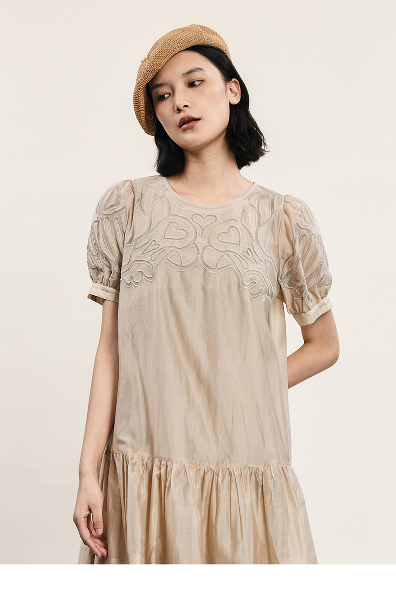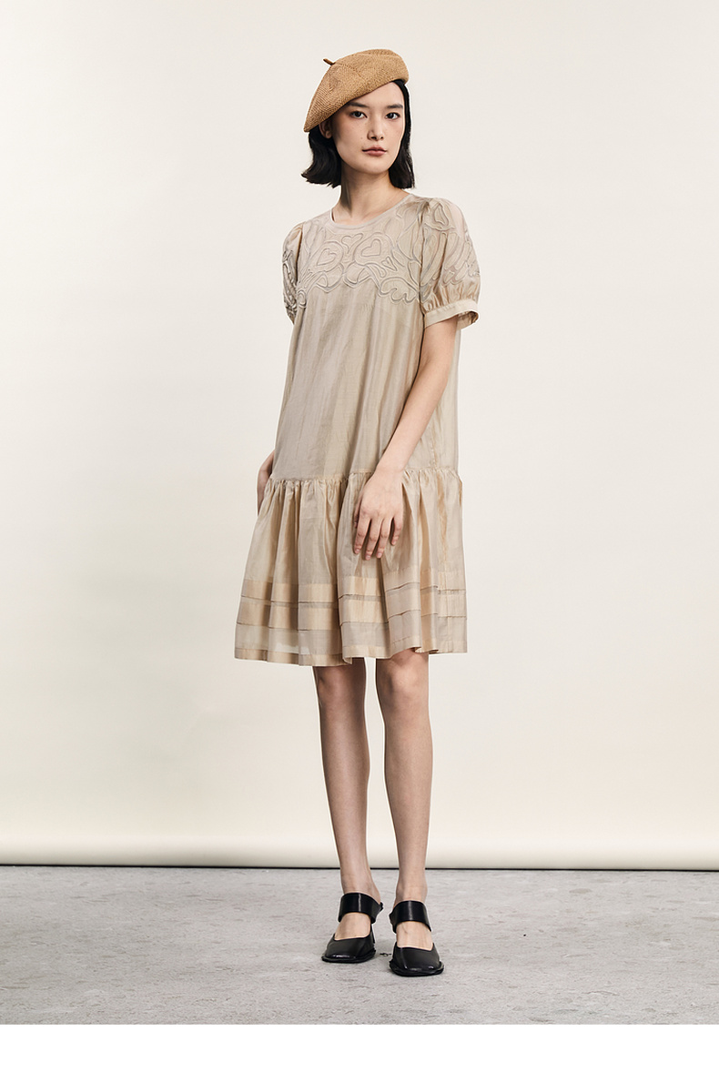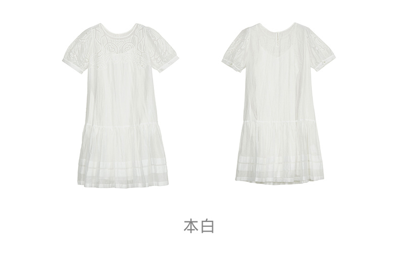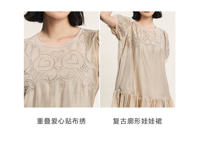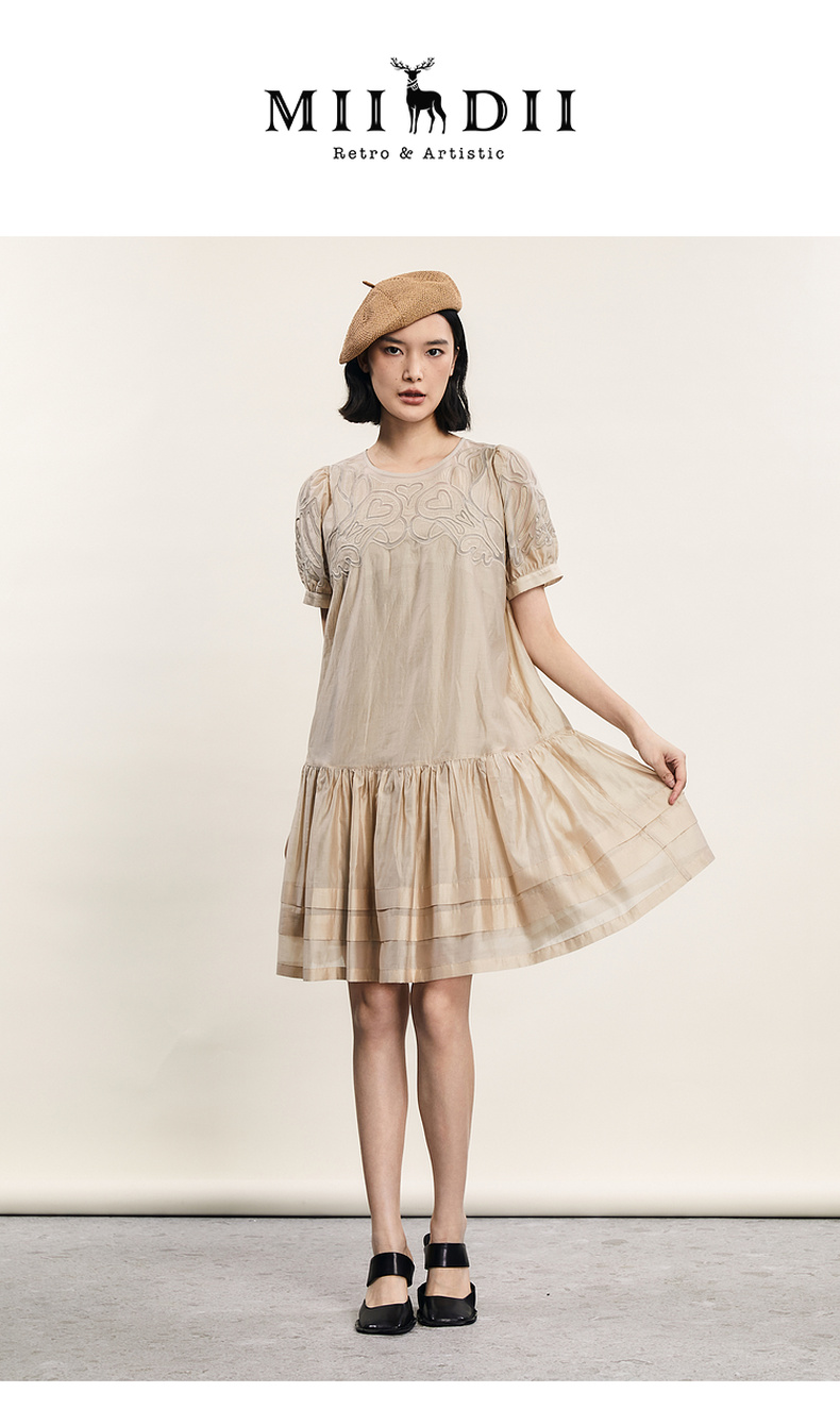 谜底两件套连衣裙短袖2024年夏季新品复古风圆领直筒裙242ML0541