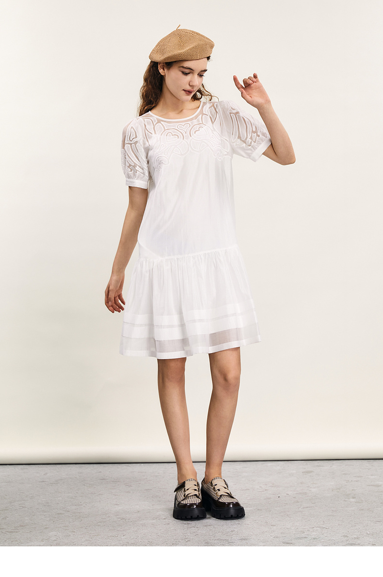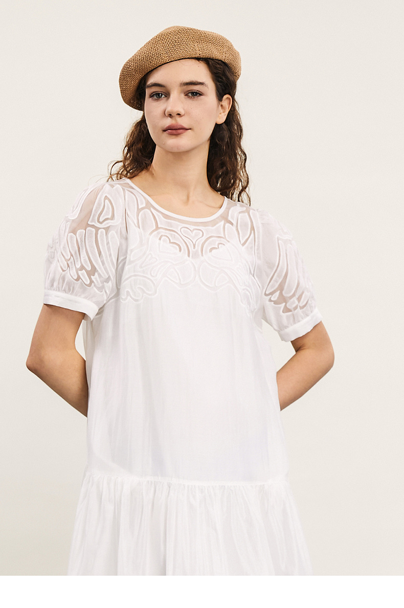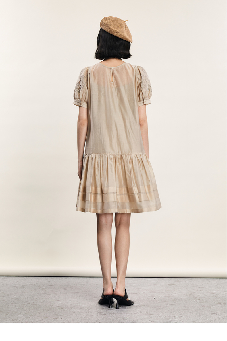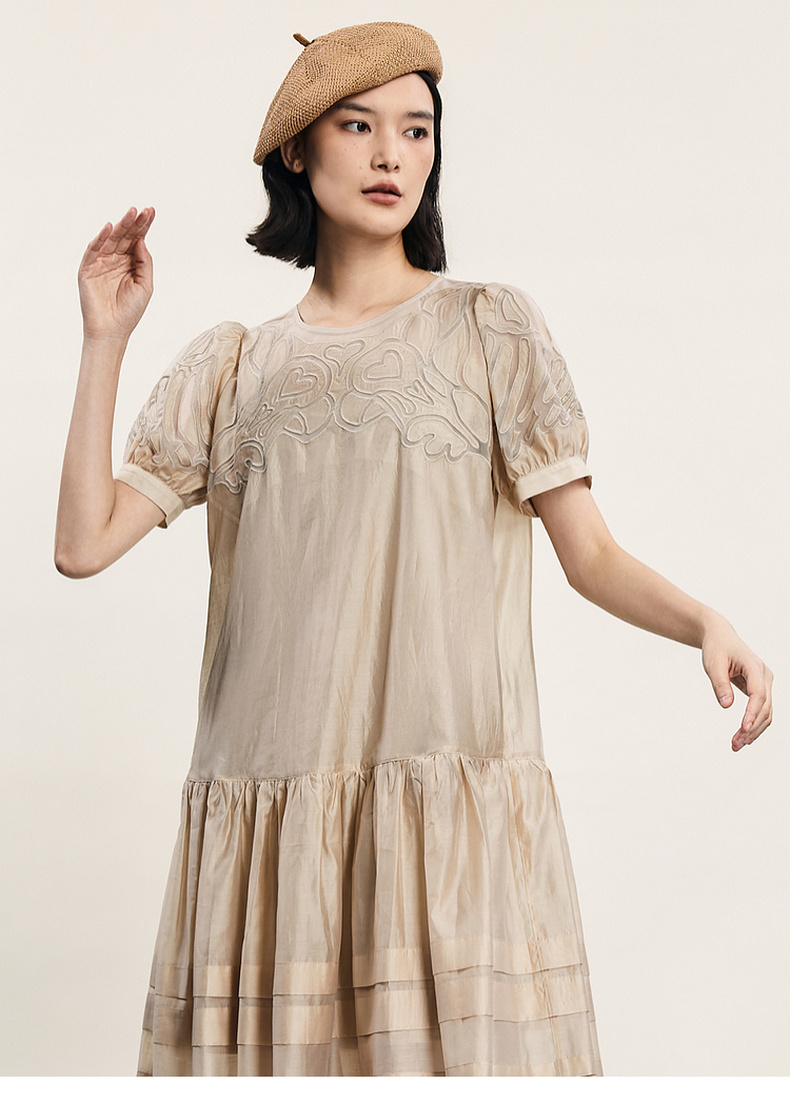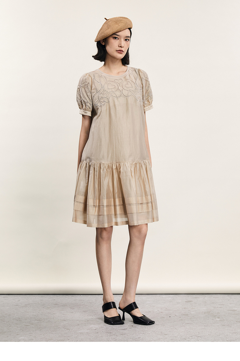 谜底两件套连衣裙短袖2024年夏季新品复古风圆领直筒裙242ML0541