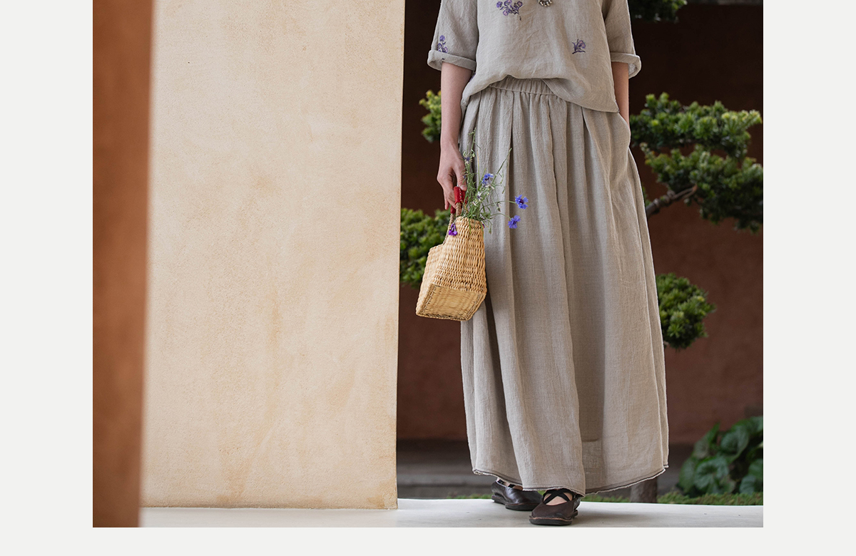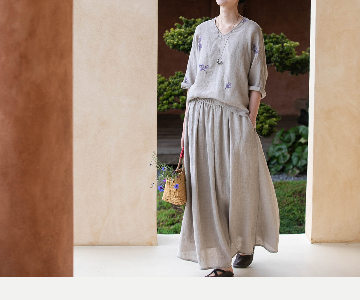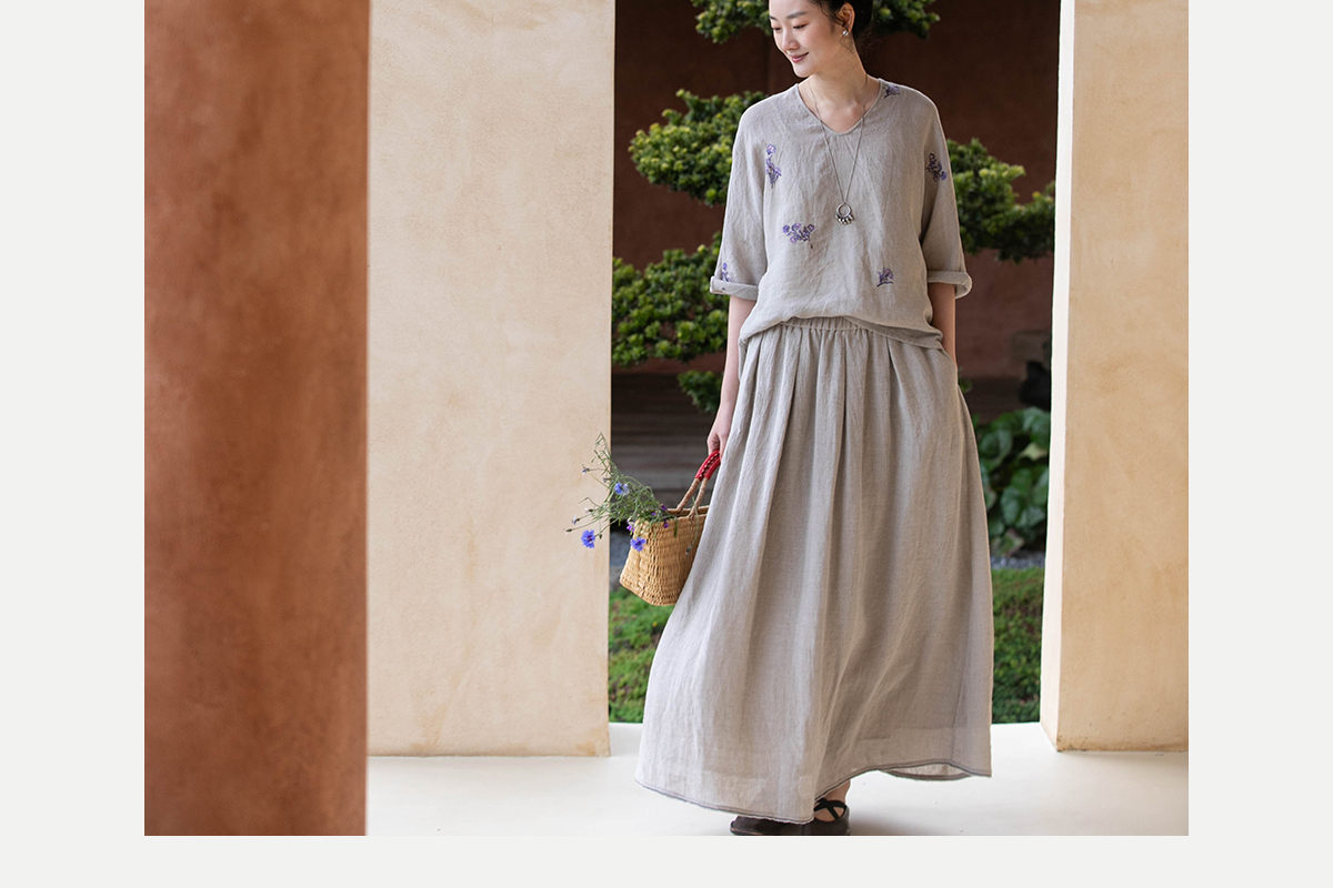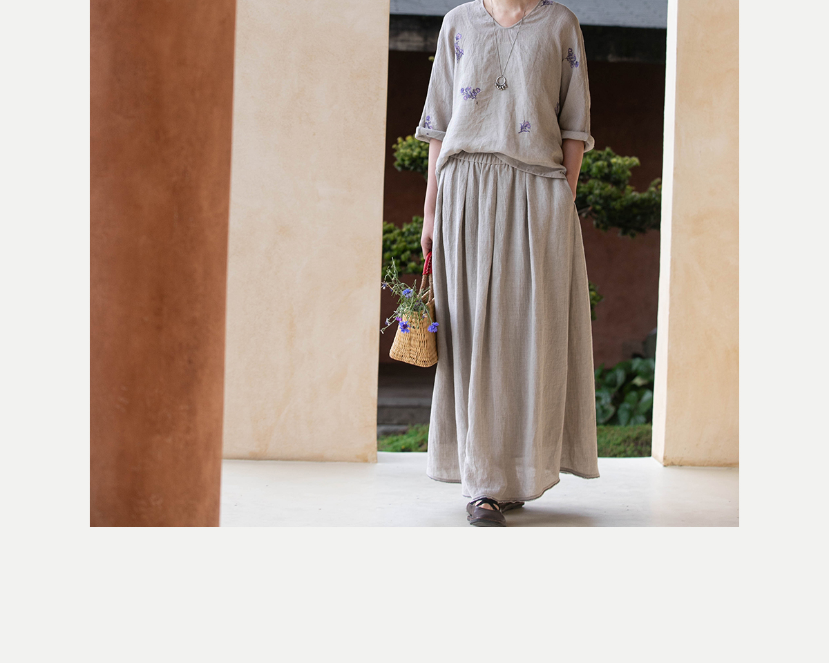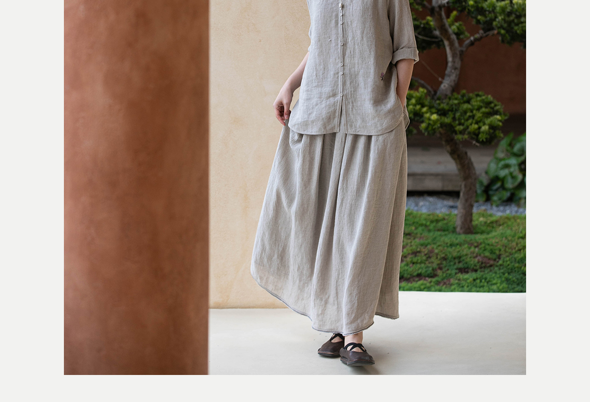 牧衣游原创 进口亚麻半身裙夏松紧腰宽松轻薄质朴百搭直筒裙 云起