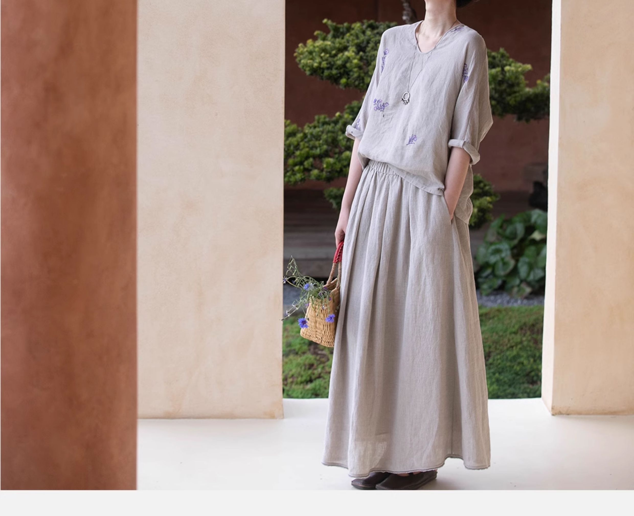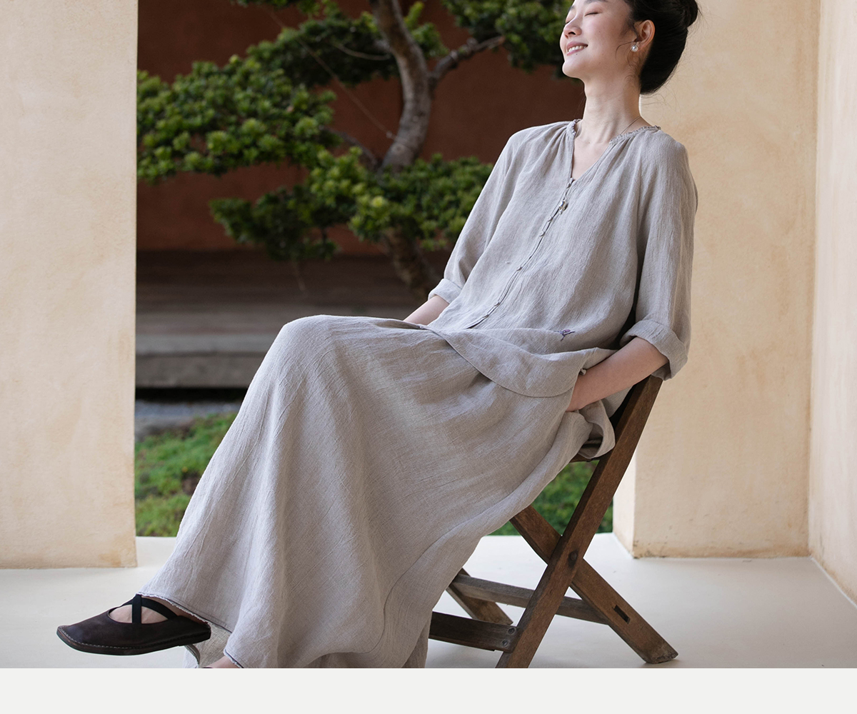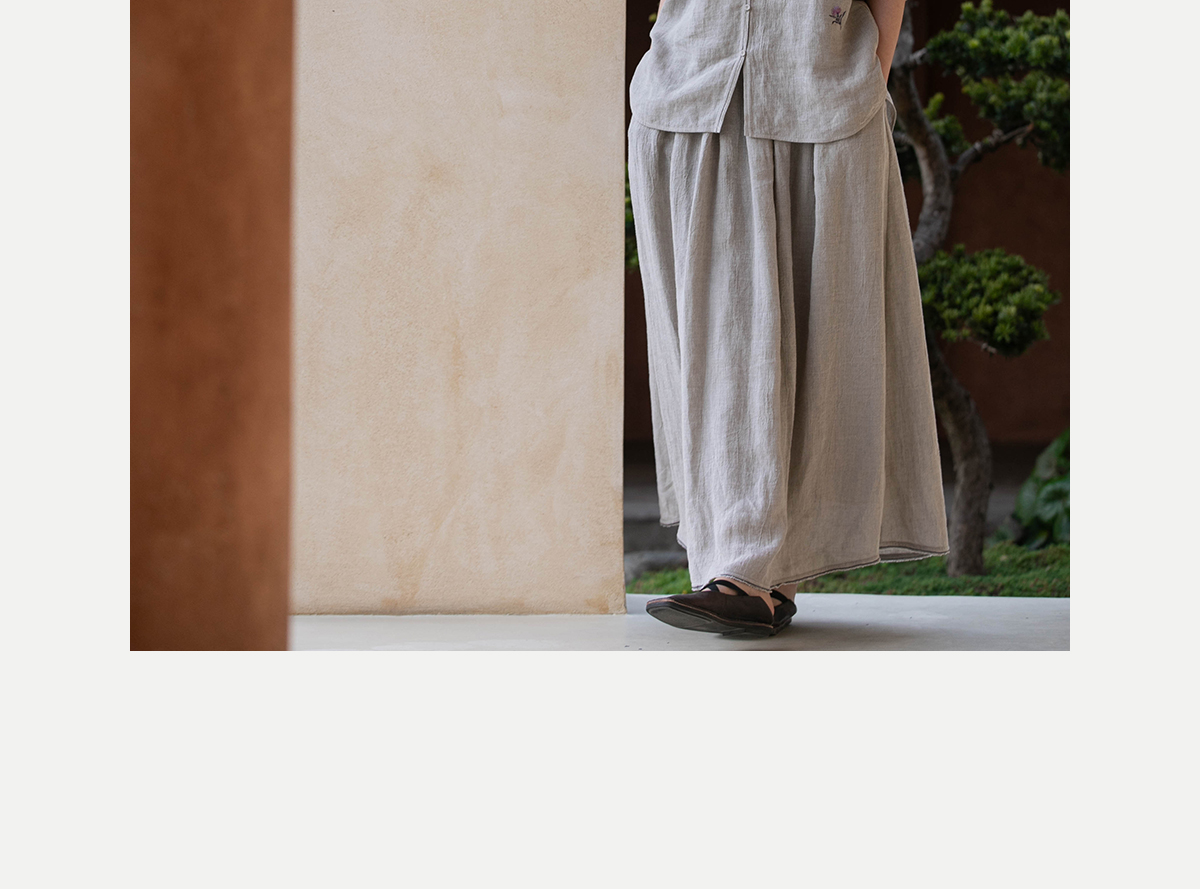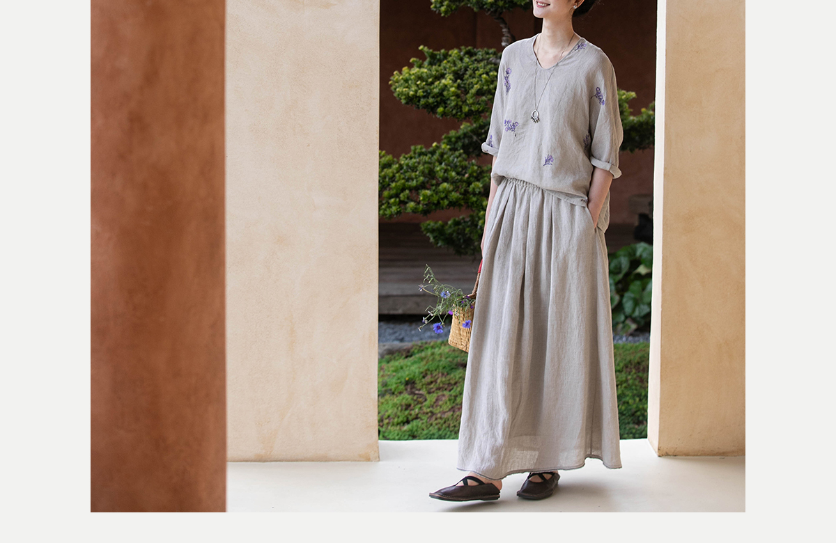 牧衣游原创 进口亚麻半身裙夏松紧腰宽松轻薄质朴百搭直筒裙 云起
