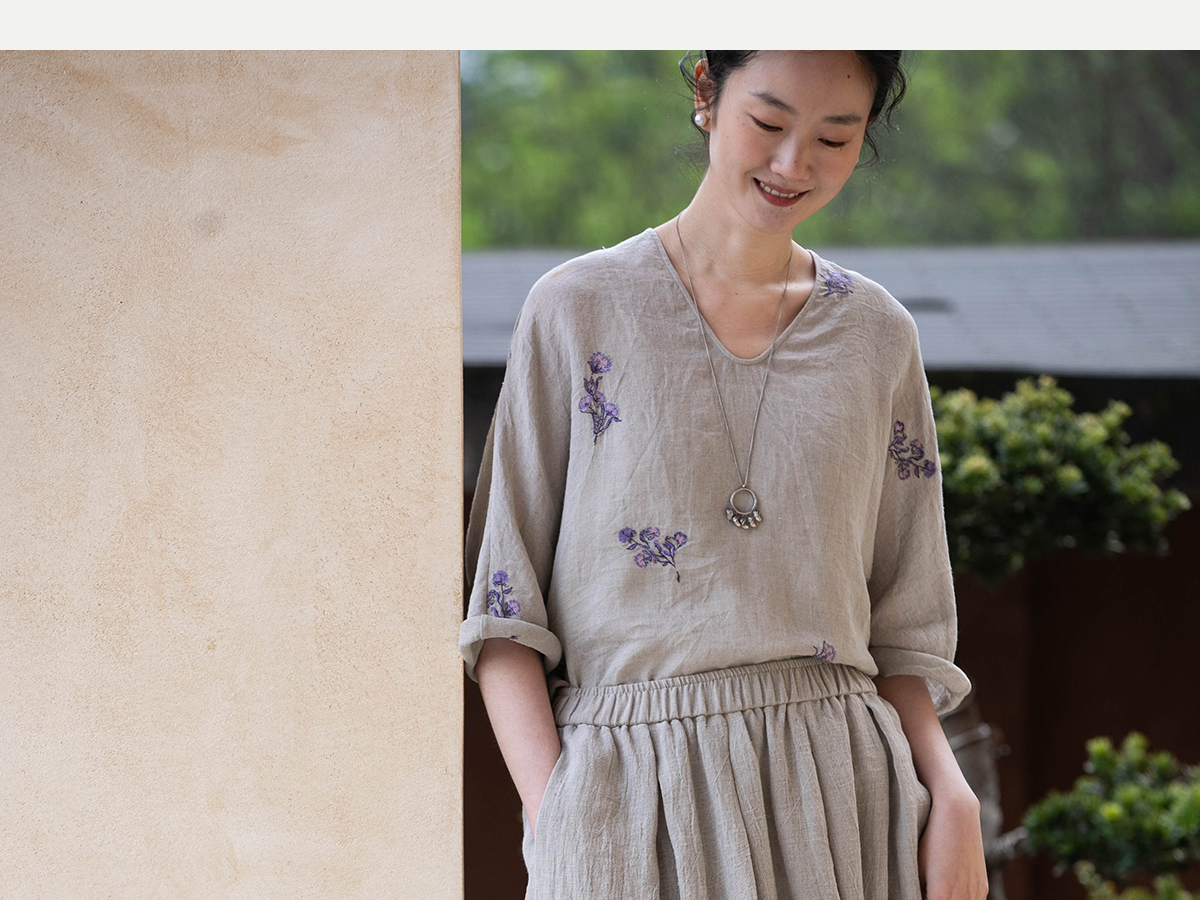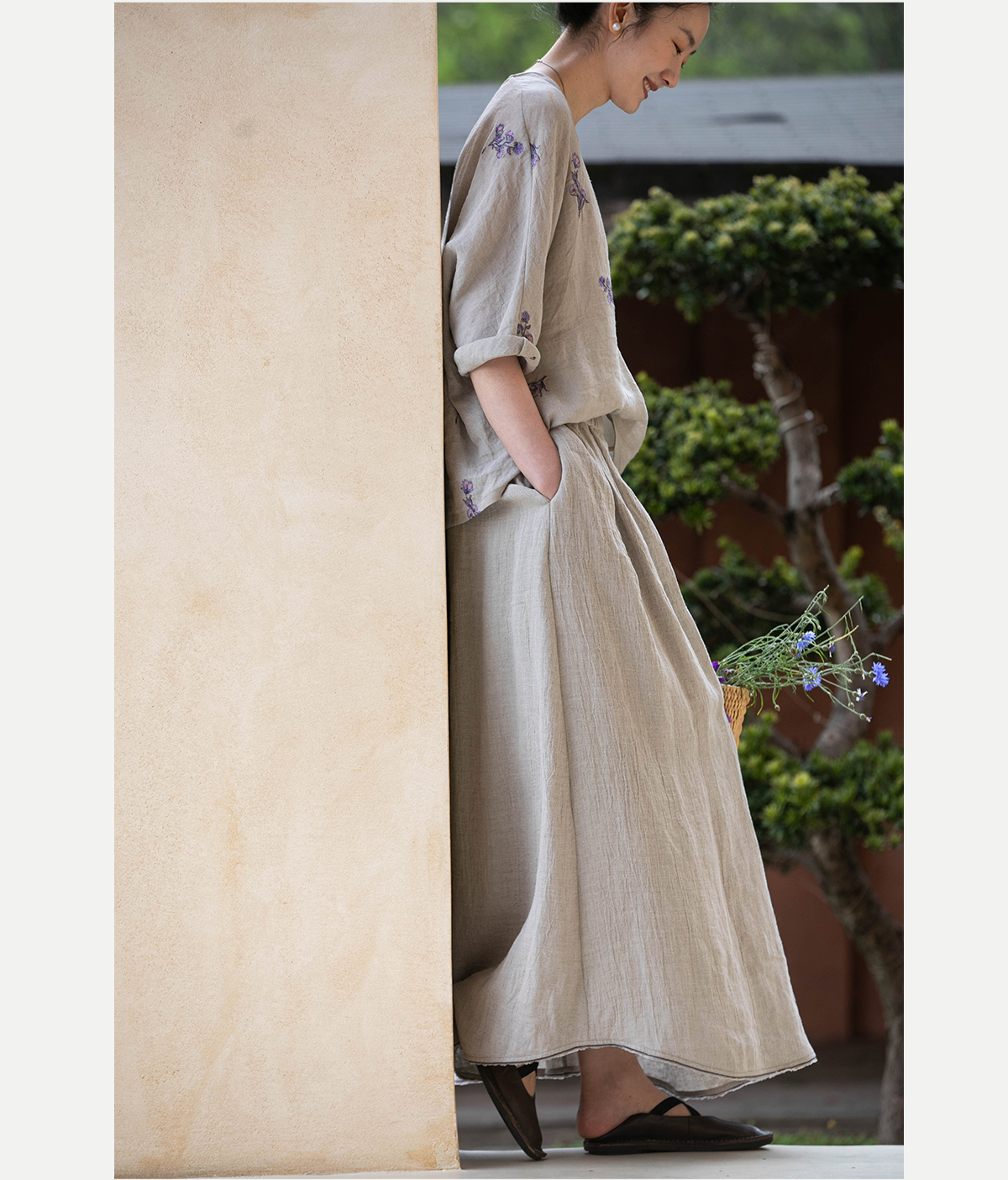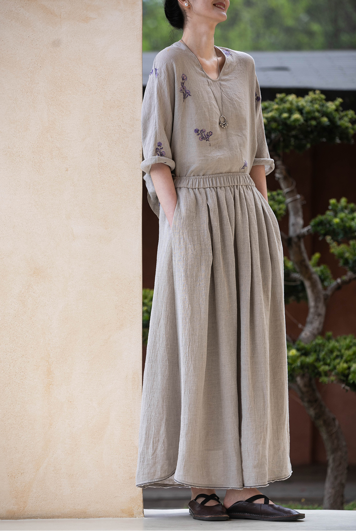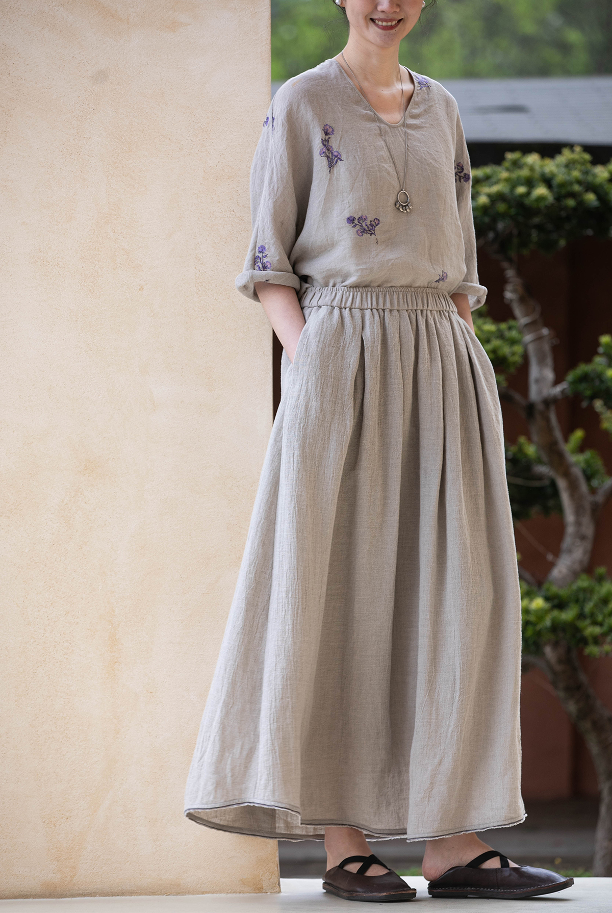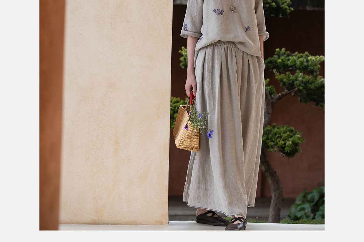 牧衣游原创 进口亚麻半身裙夏松紧腰宽松轻薄质朴百搭直筒裙 云起
