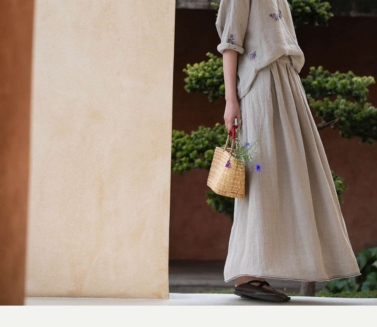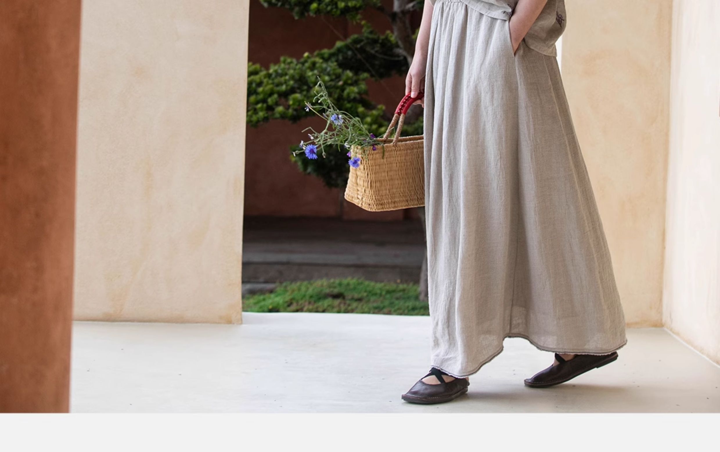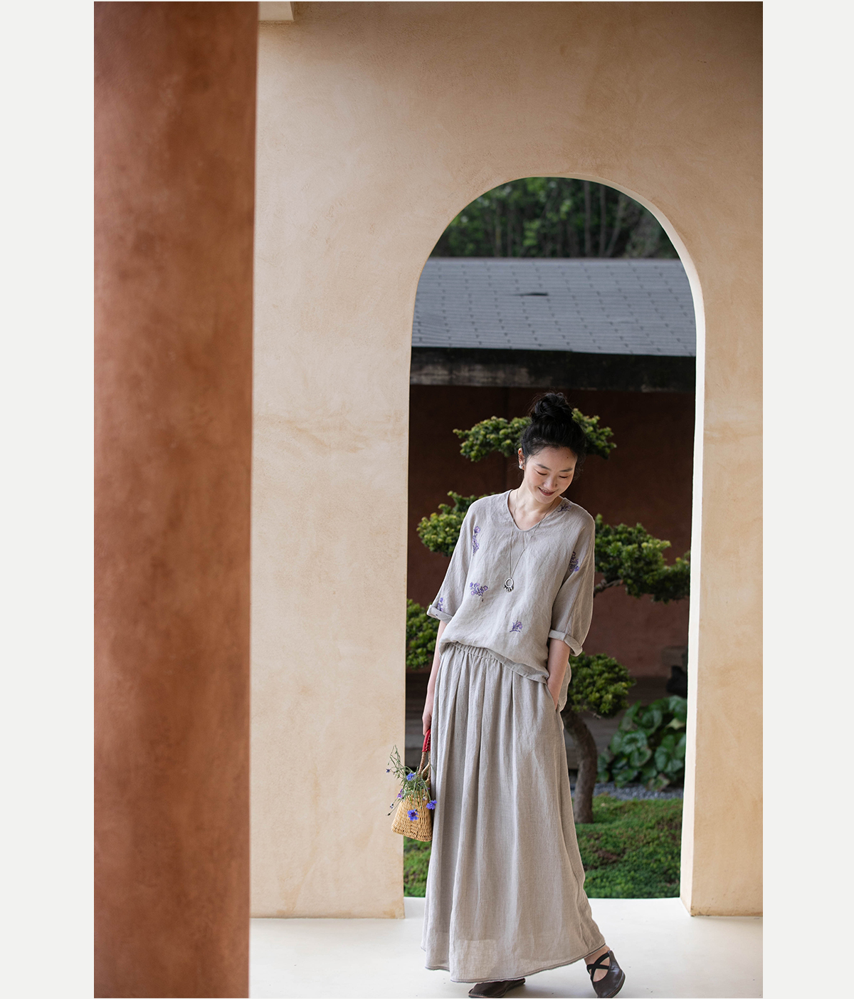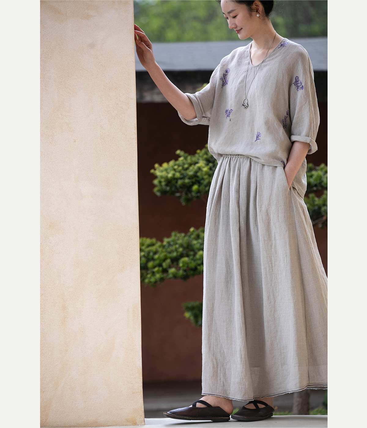 牧衣游原创 进口亚麻半身裙夏松紧腰宽松轻薄质朴百搭直筒裙 云起