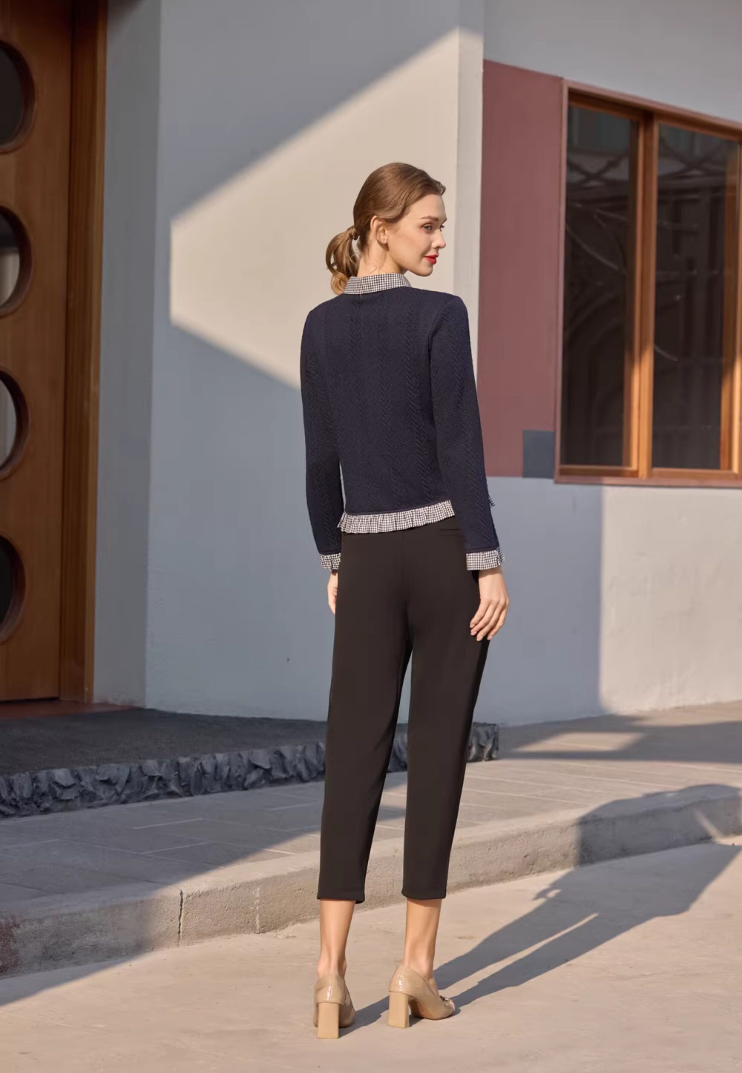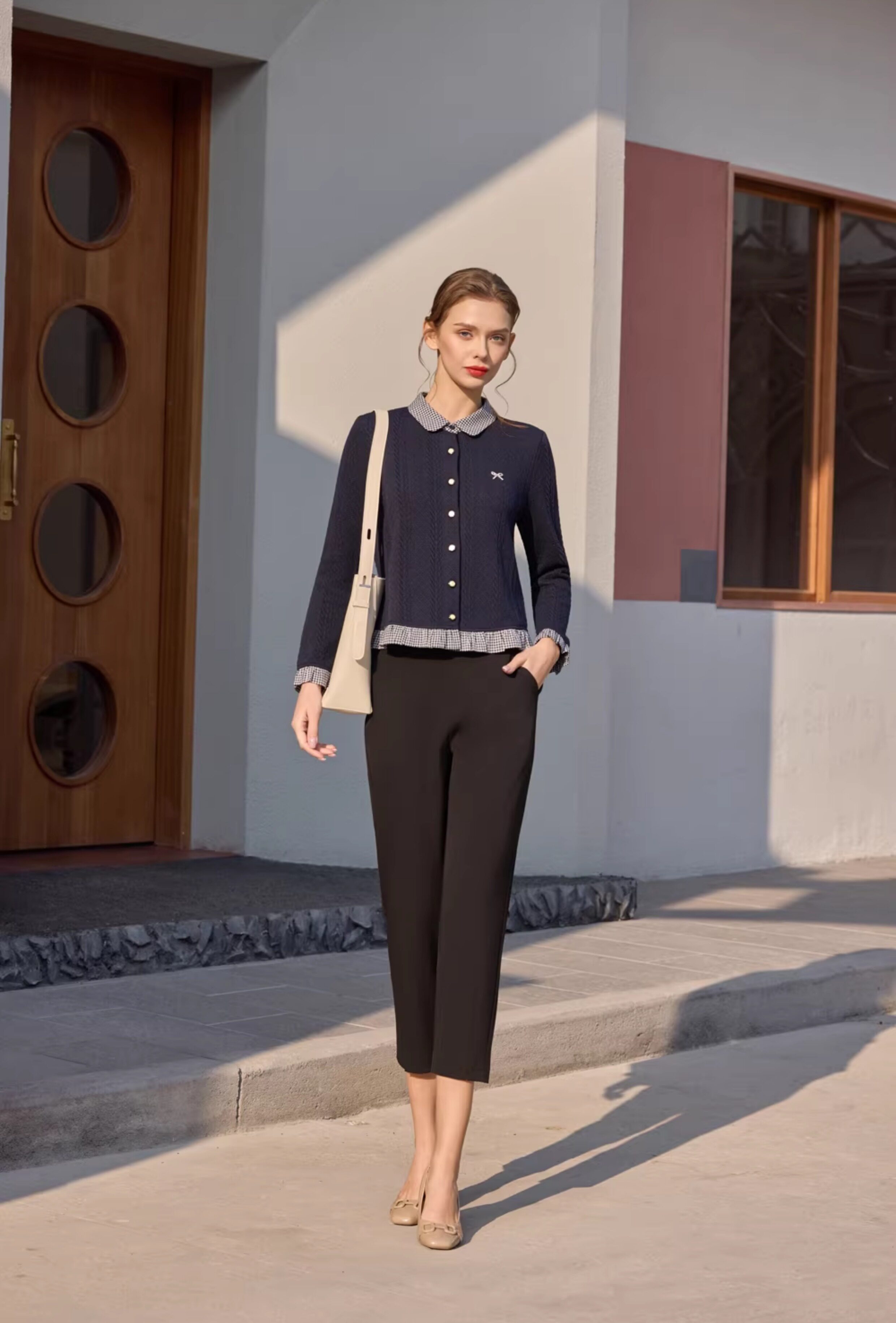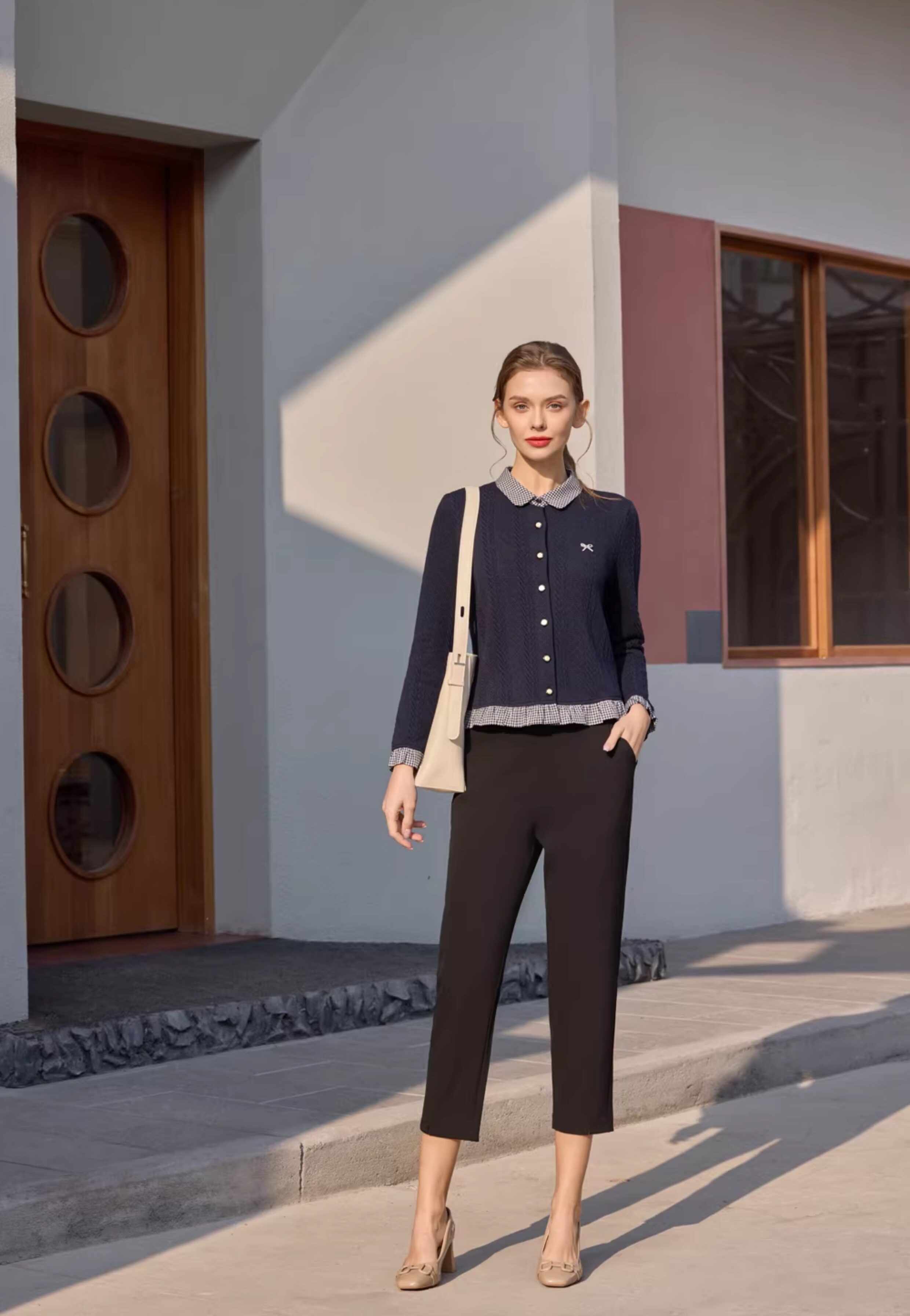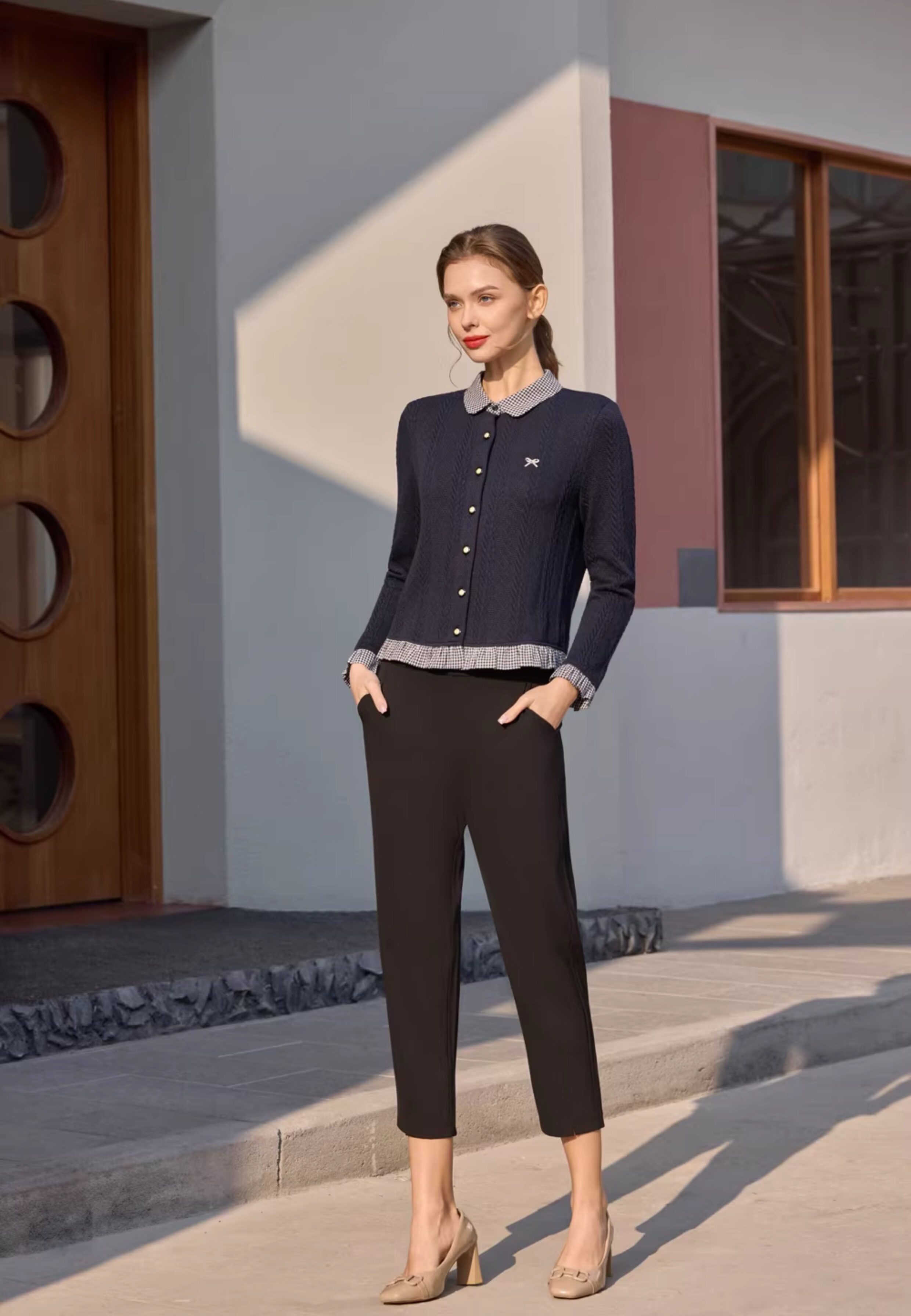 半身缘女装 春季V领扣子装饰内搭针织打底衫毛衣VL001