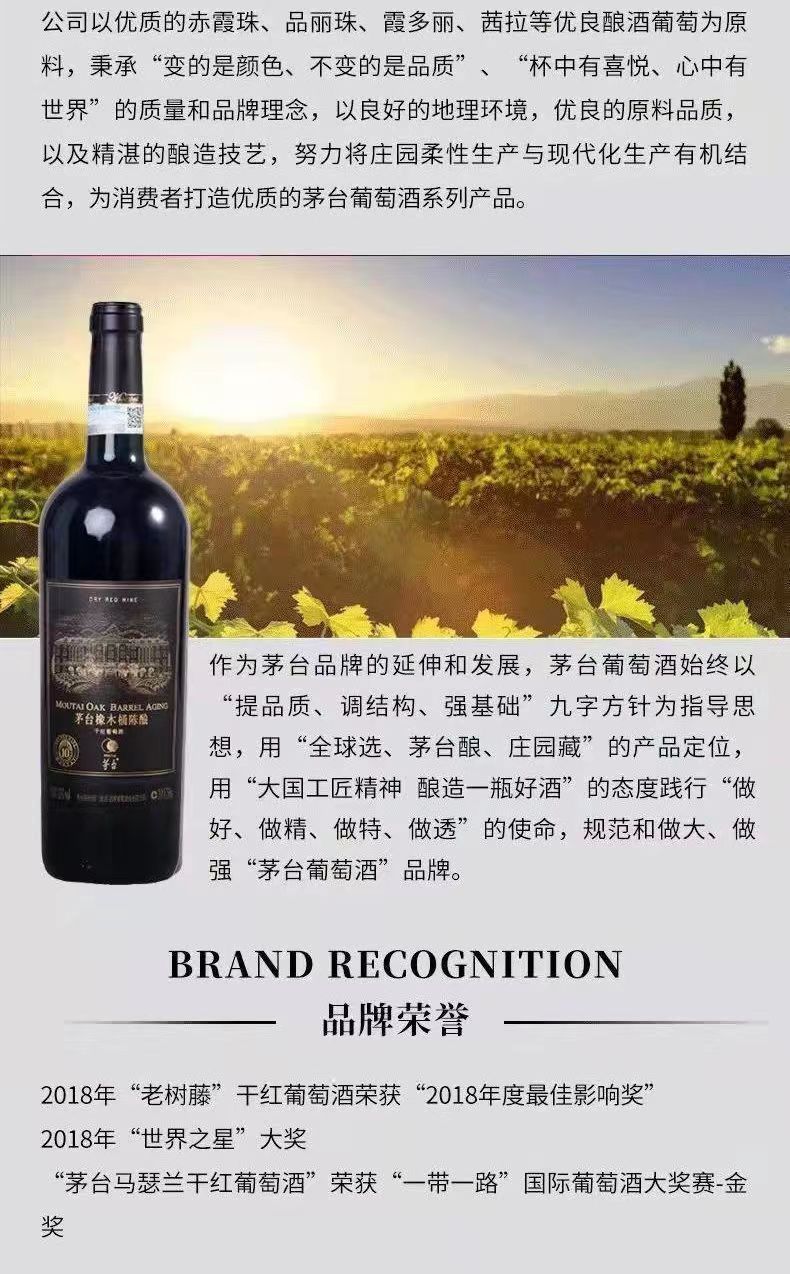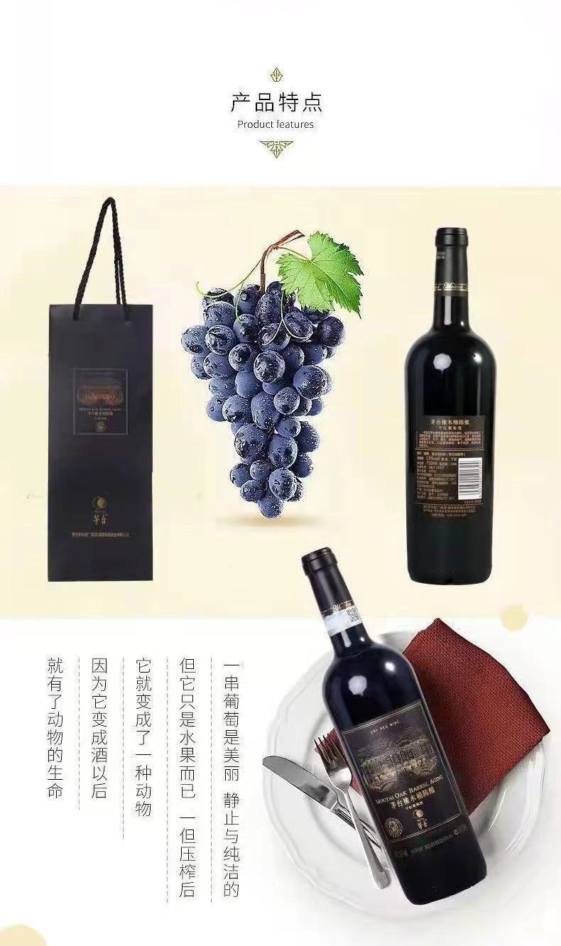 茅台红酒 橡木桶陈酿干红葡萄酒 整箱750ml*6瓶包邮
