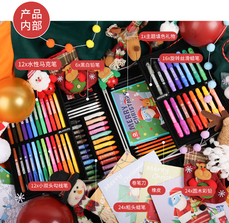 mobee儿童圣诞绘画画笔礼盒[福利品]