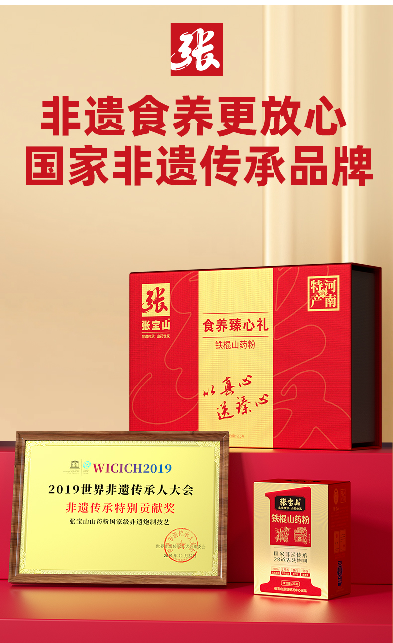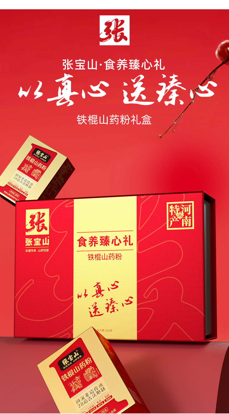 张宝山铁棍山药粉食养臻心礼盒510g 配料干净 营养美味 礼赠佳品