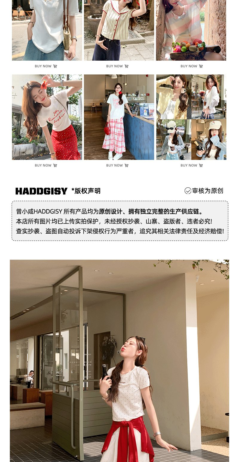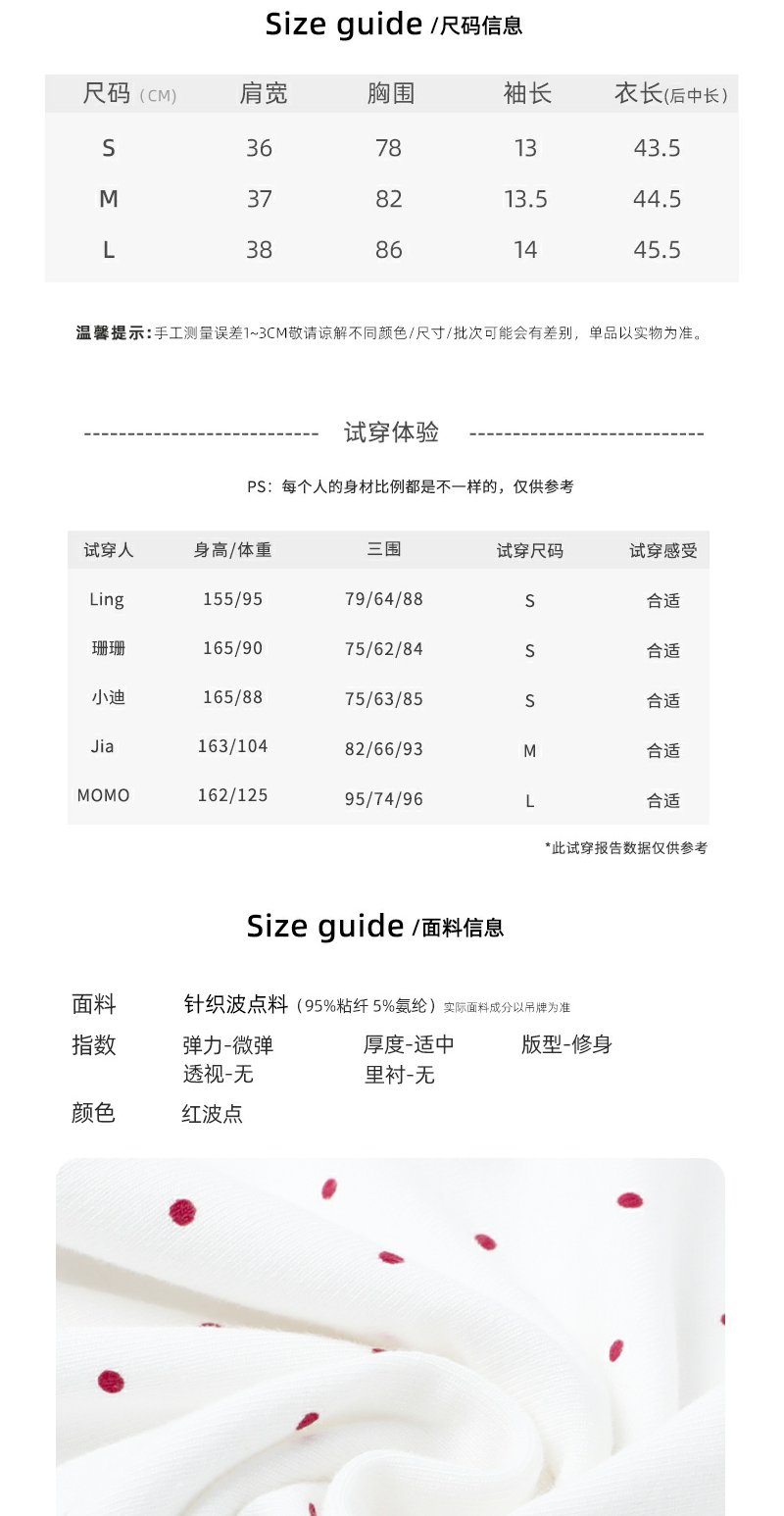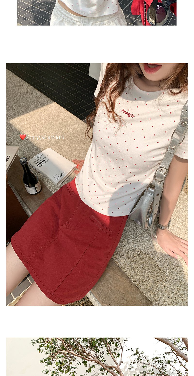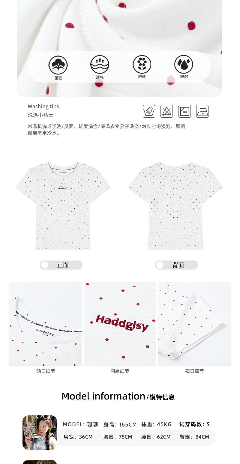 <曾小咸推荐>韩系撞色波点短袖T恤
